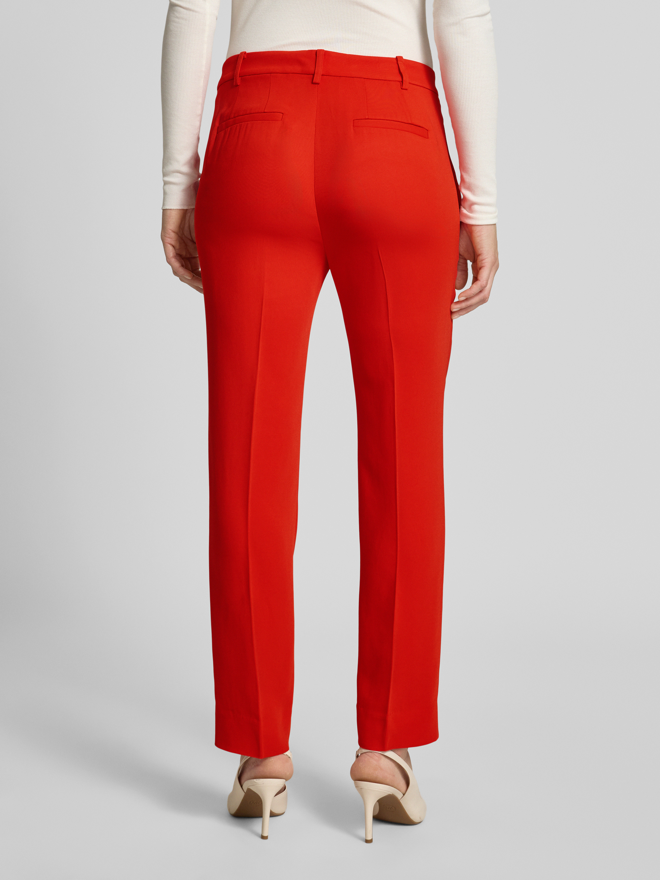 Broek van een mix van viscose en elastaan met persplooien in rood
