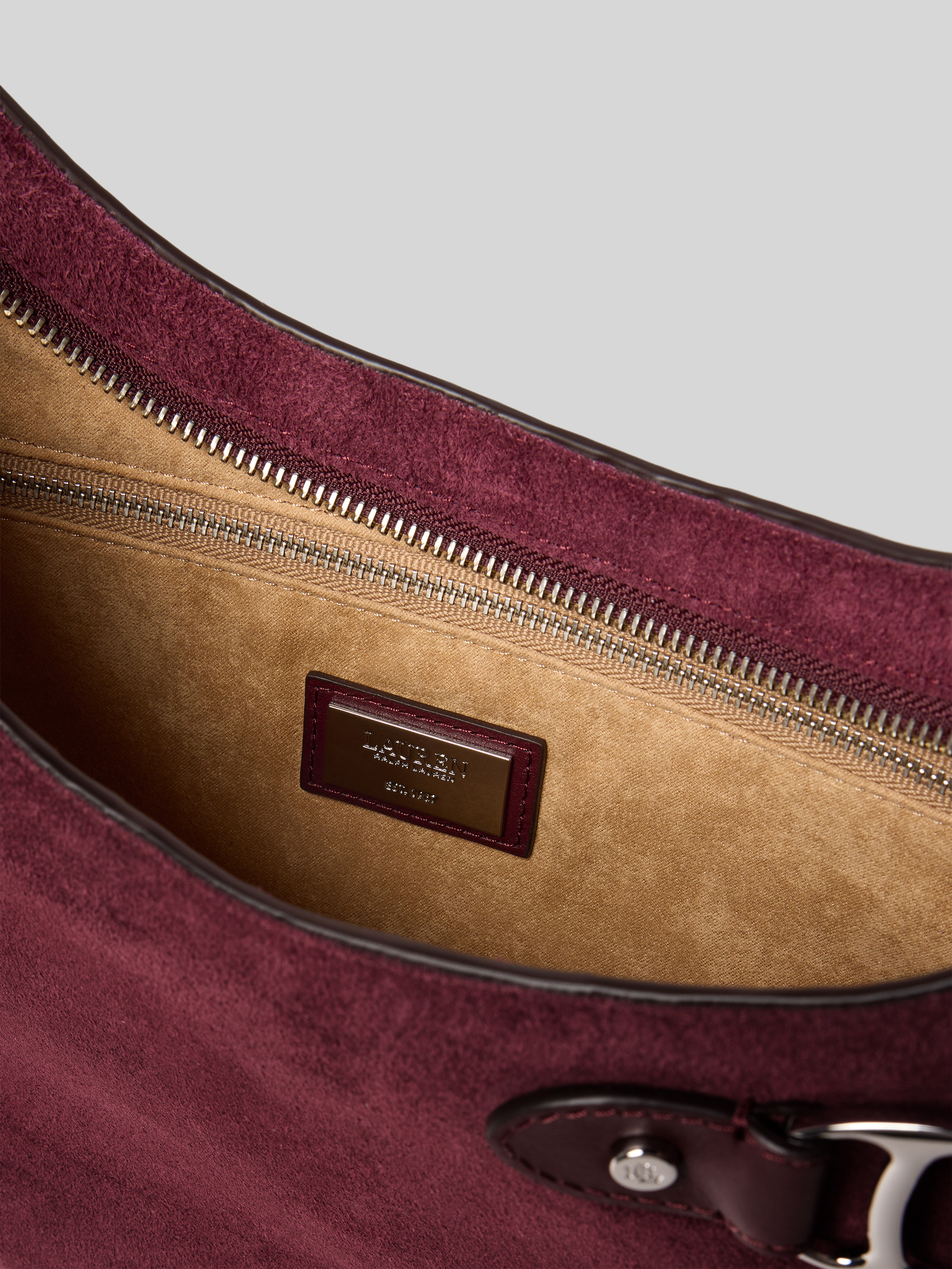 Handtas van echt runderleer met sierapplicatie in bordeaux