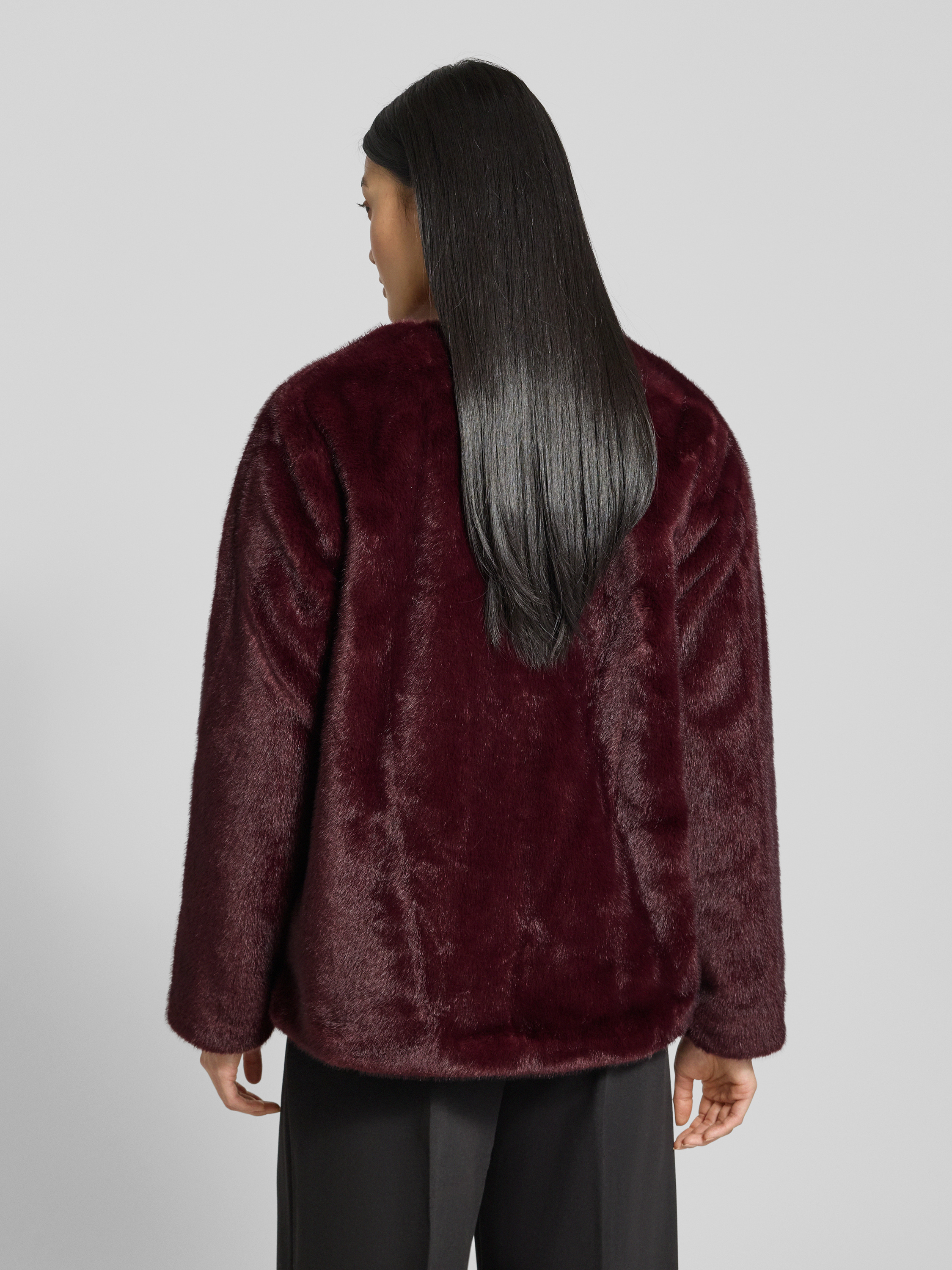 Jack van imitatiebont met klepzakken in bordeaux