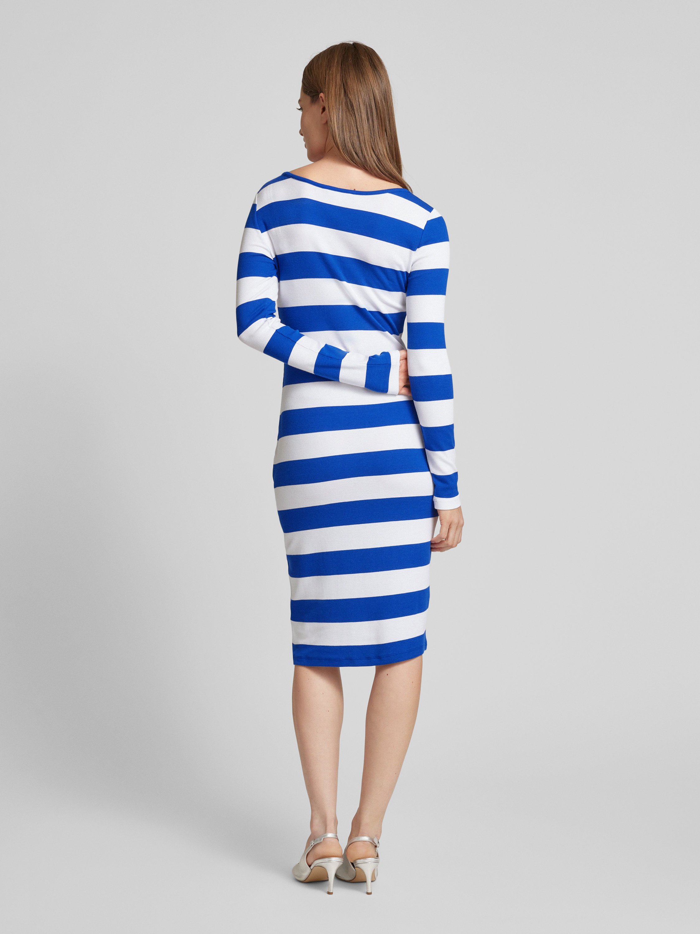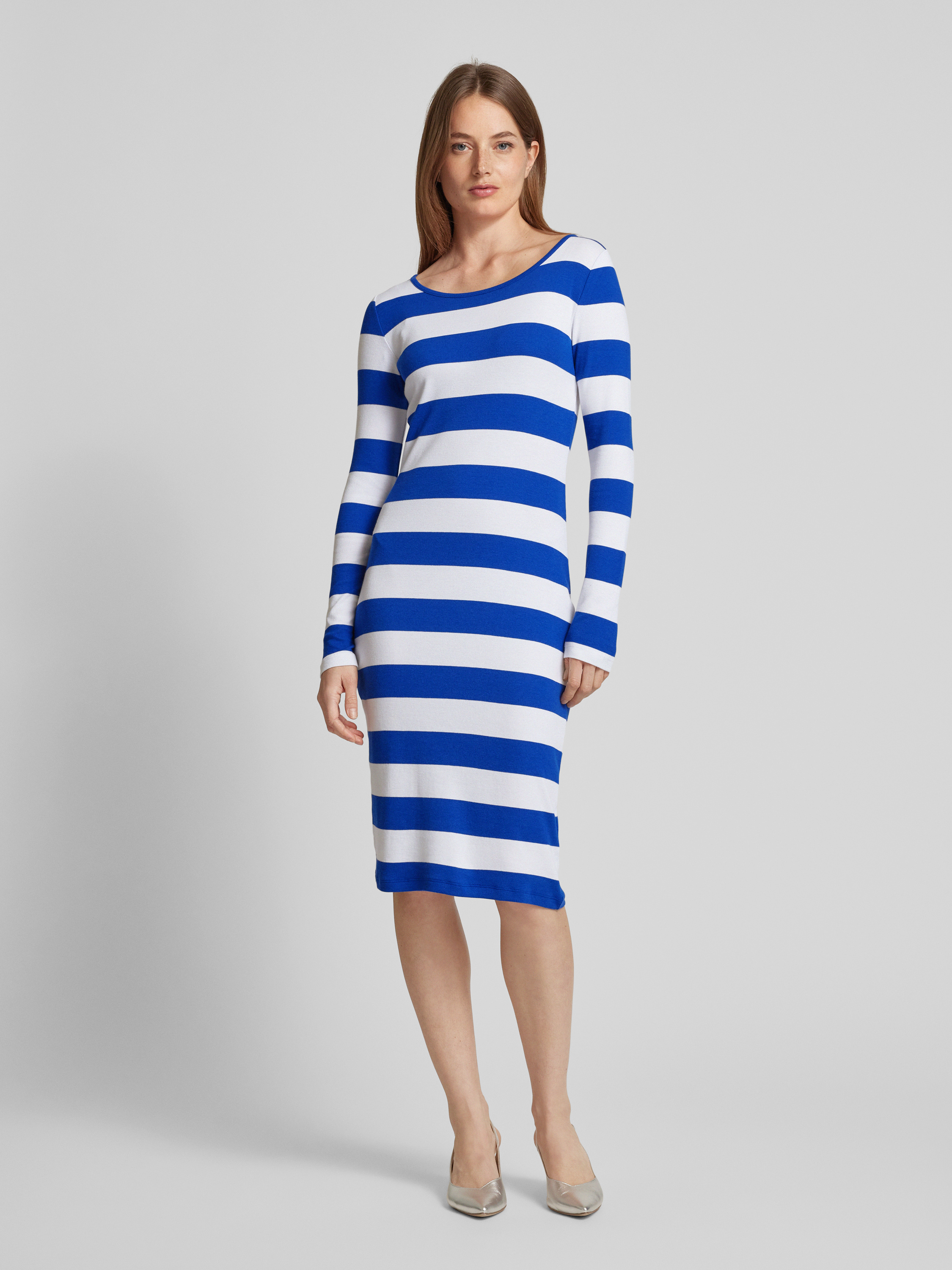 Knielange jurk met geribde ronde hals, model 'LILEAH' in koningsblauw