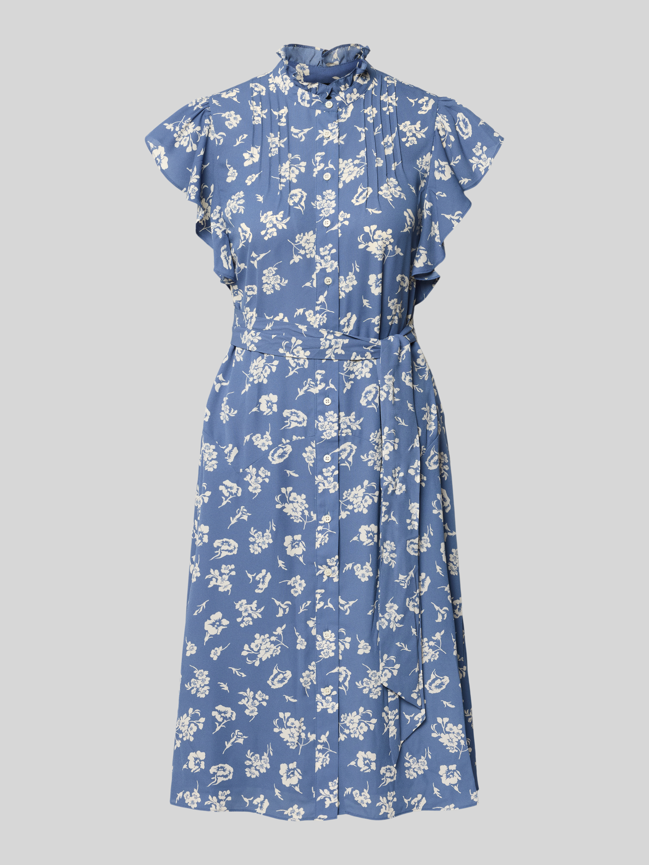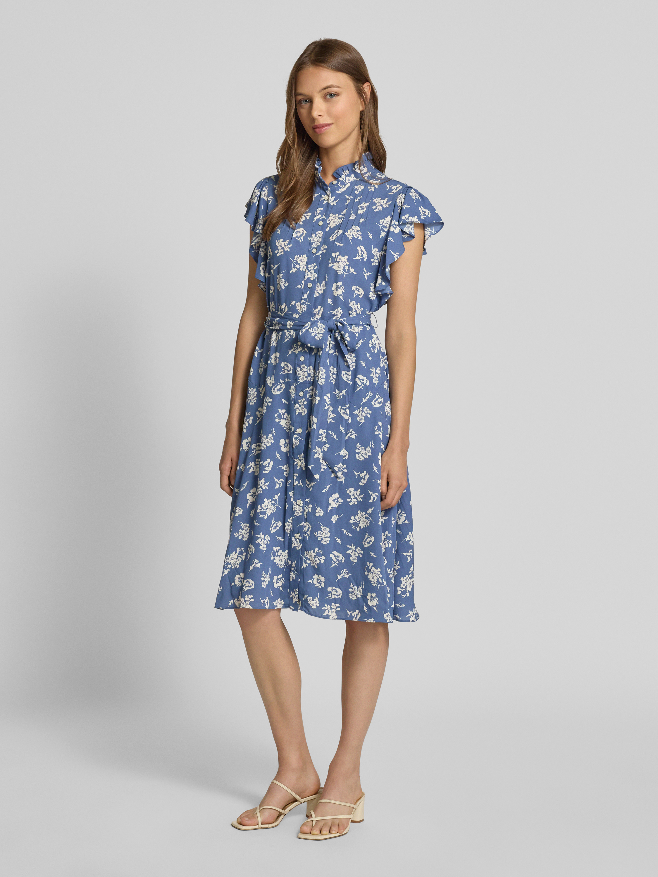 Knielange jurk met strikceintuur, model 'PRATIKA' in lichtblauw