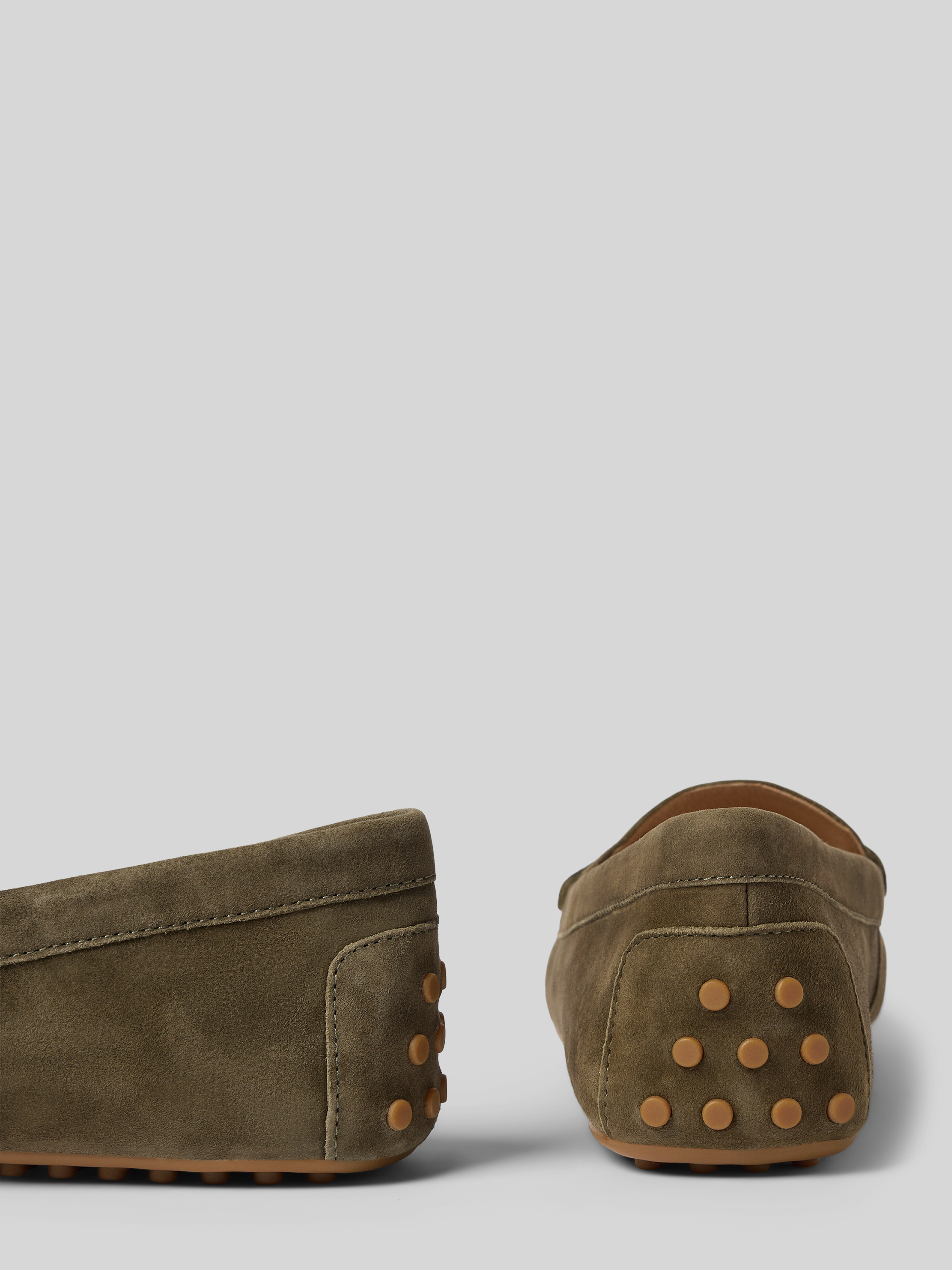 Leren instappers met labelapplicatie, model 'BARNSBURY' in olijfgroen