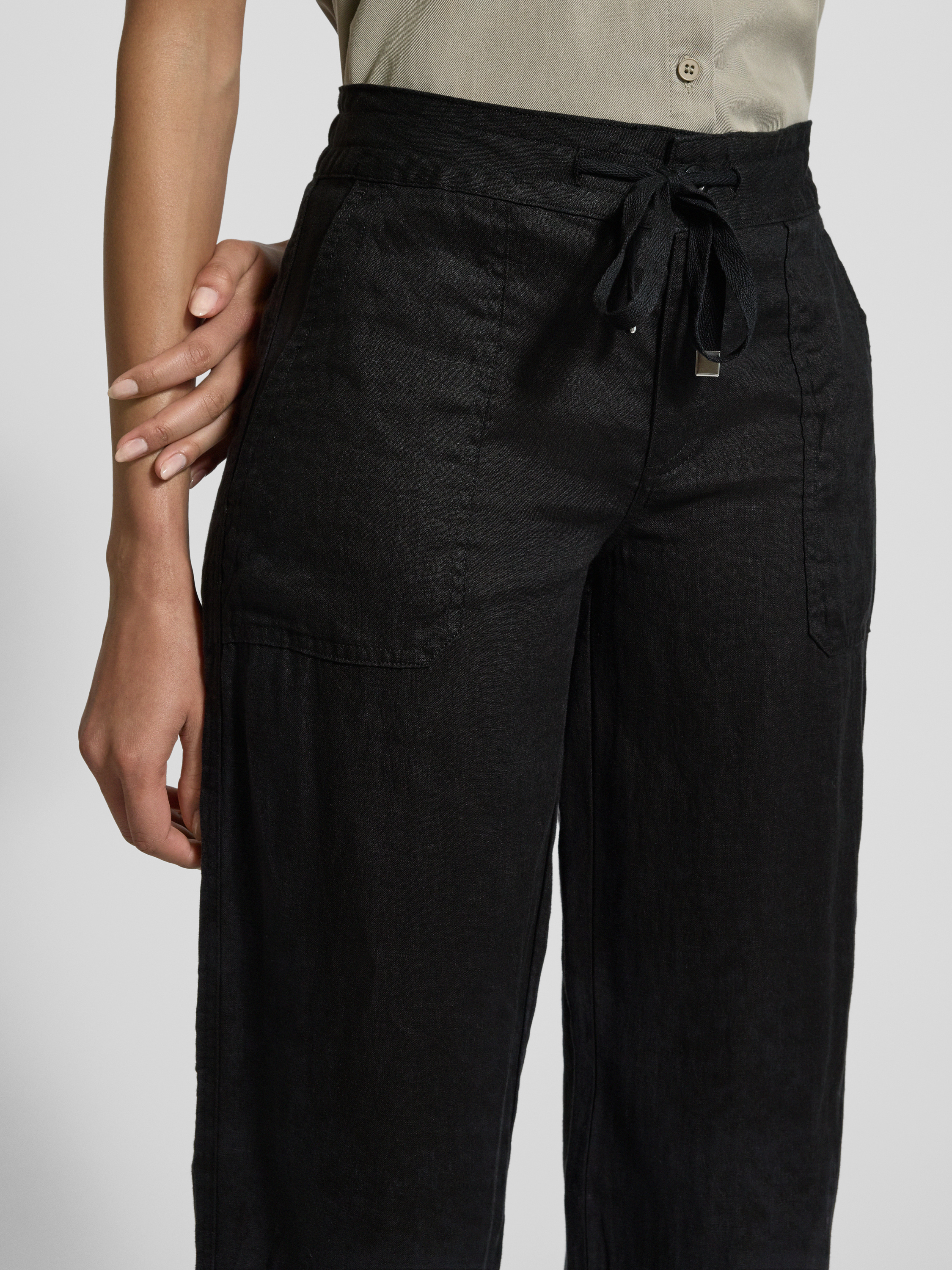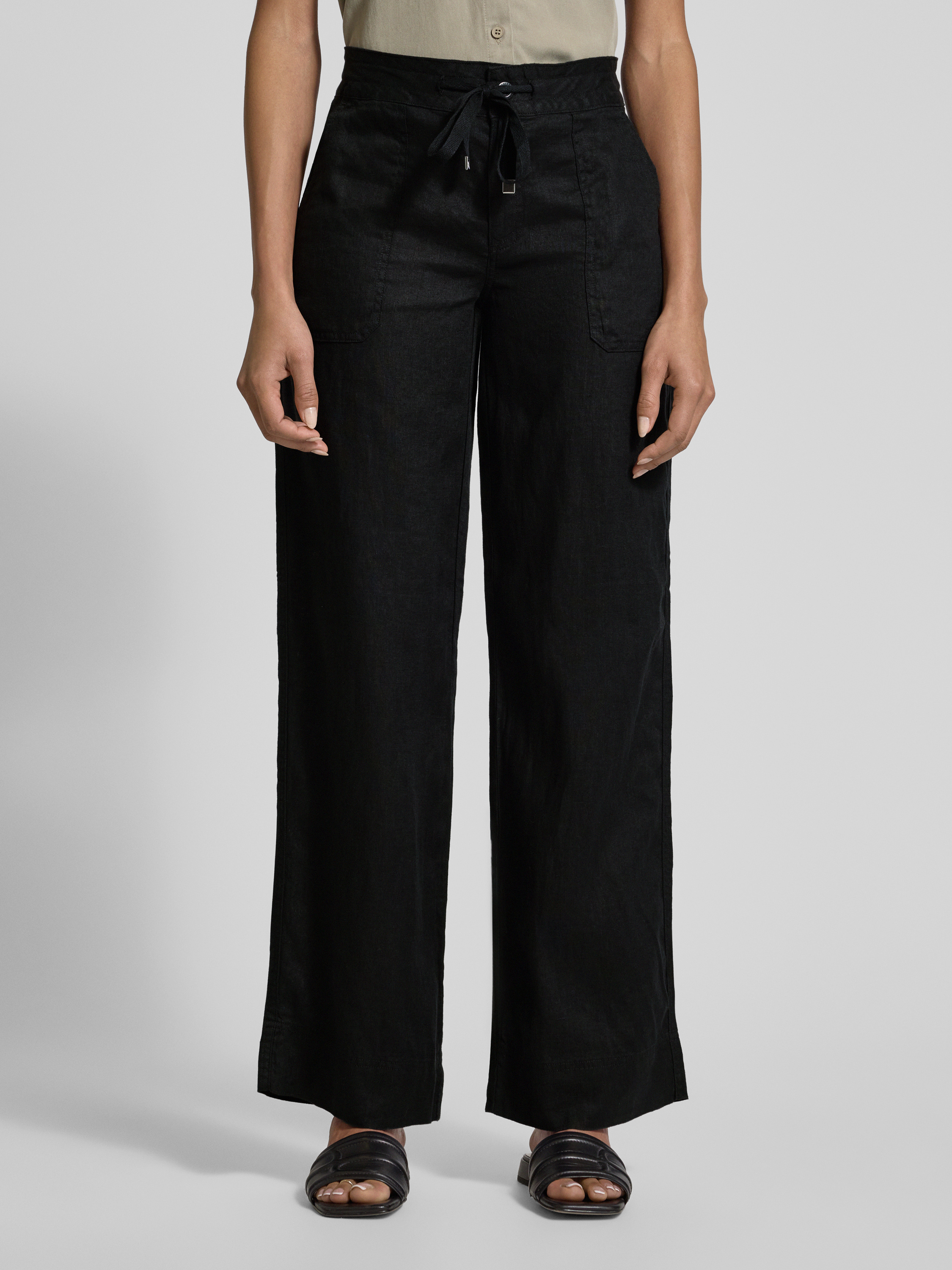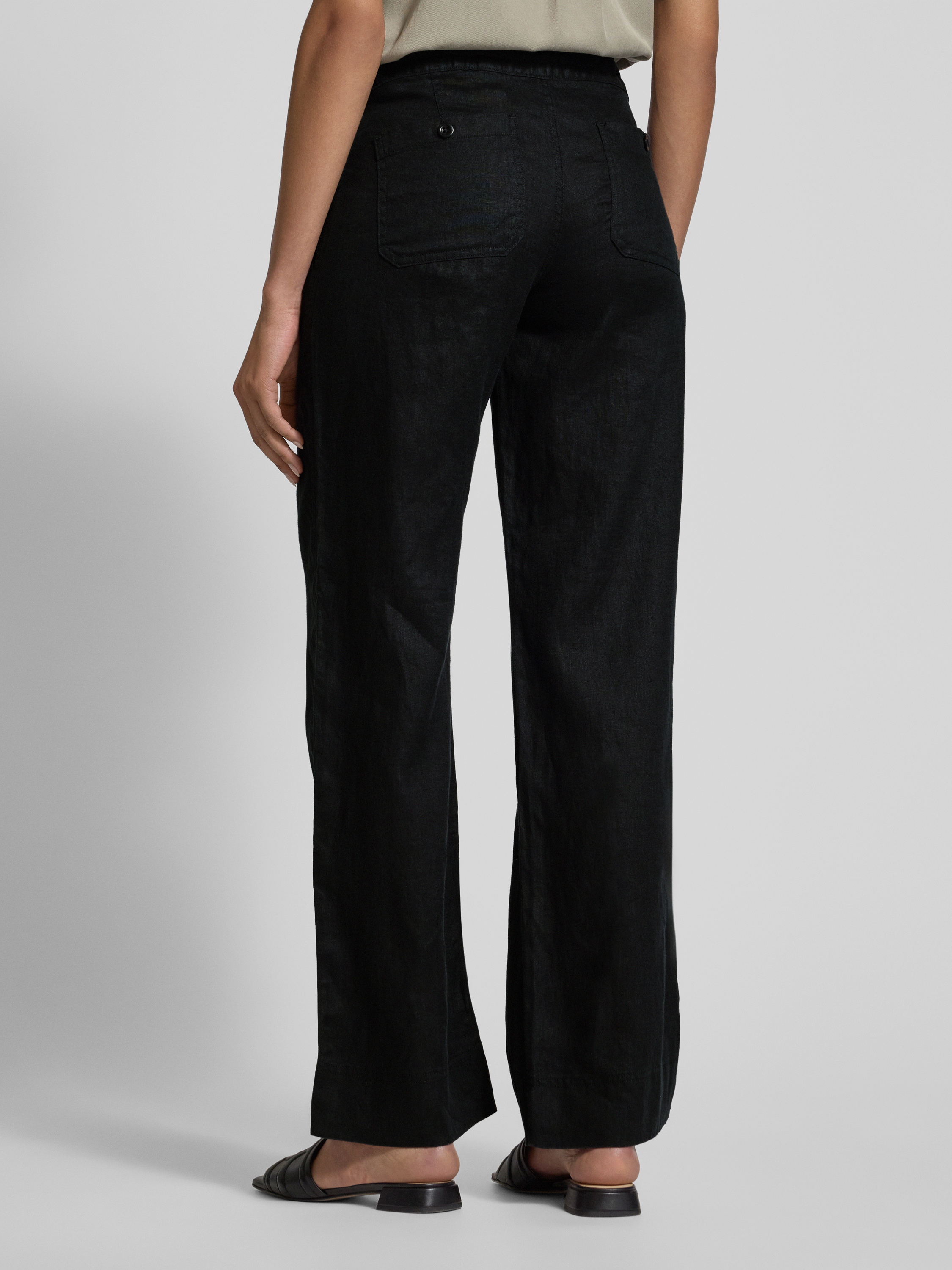Loose fit linnen broek met elastische band, model 'JOVONIE' in zwart