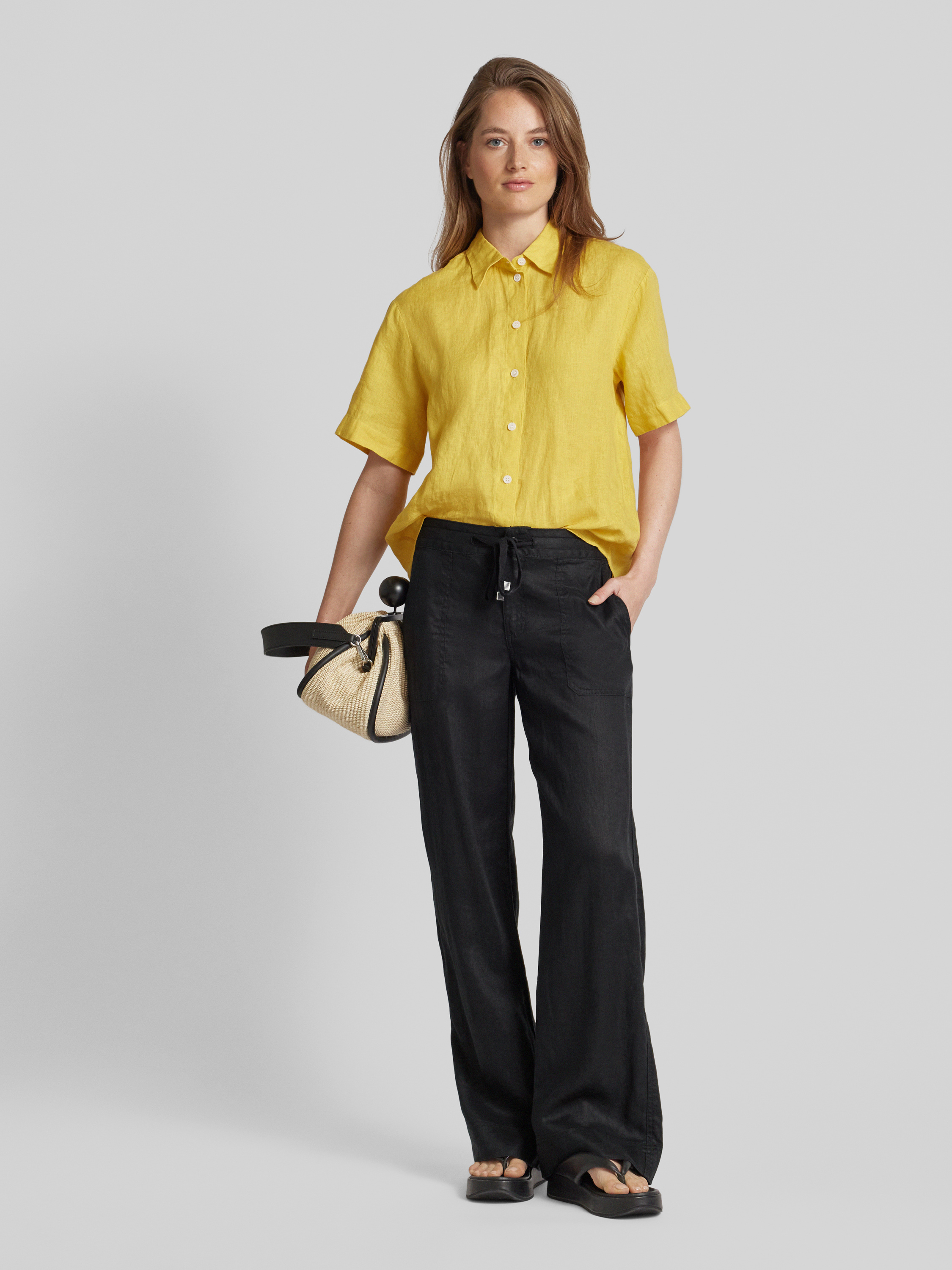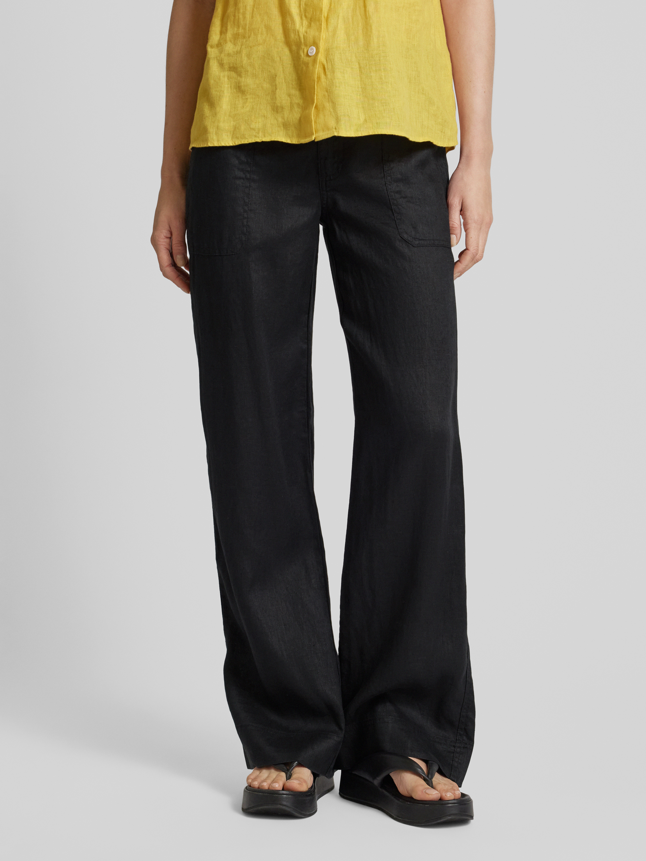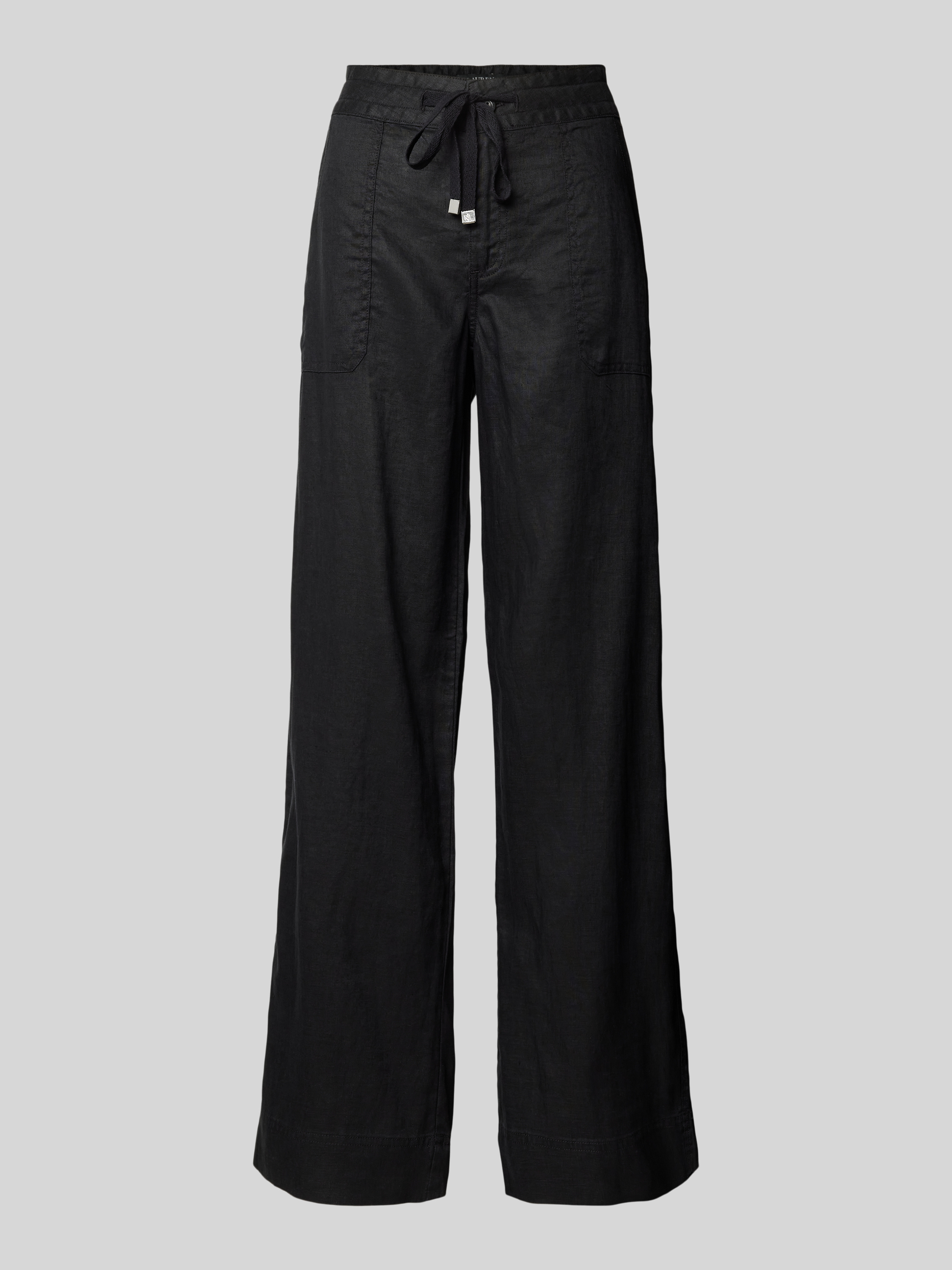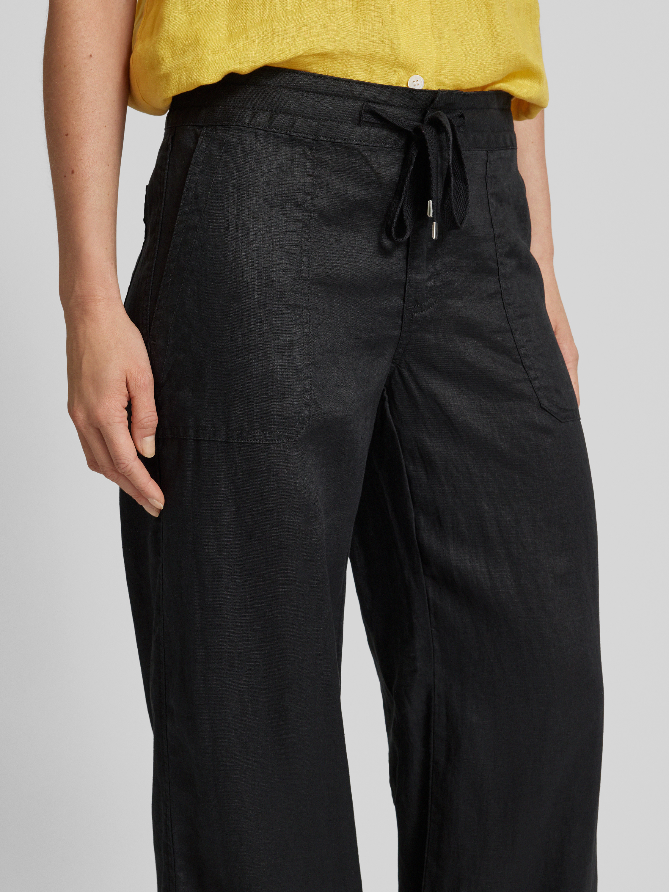 Loose fit linnen broek met tunnelkoord, model 'JOVONIE' in zwart