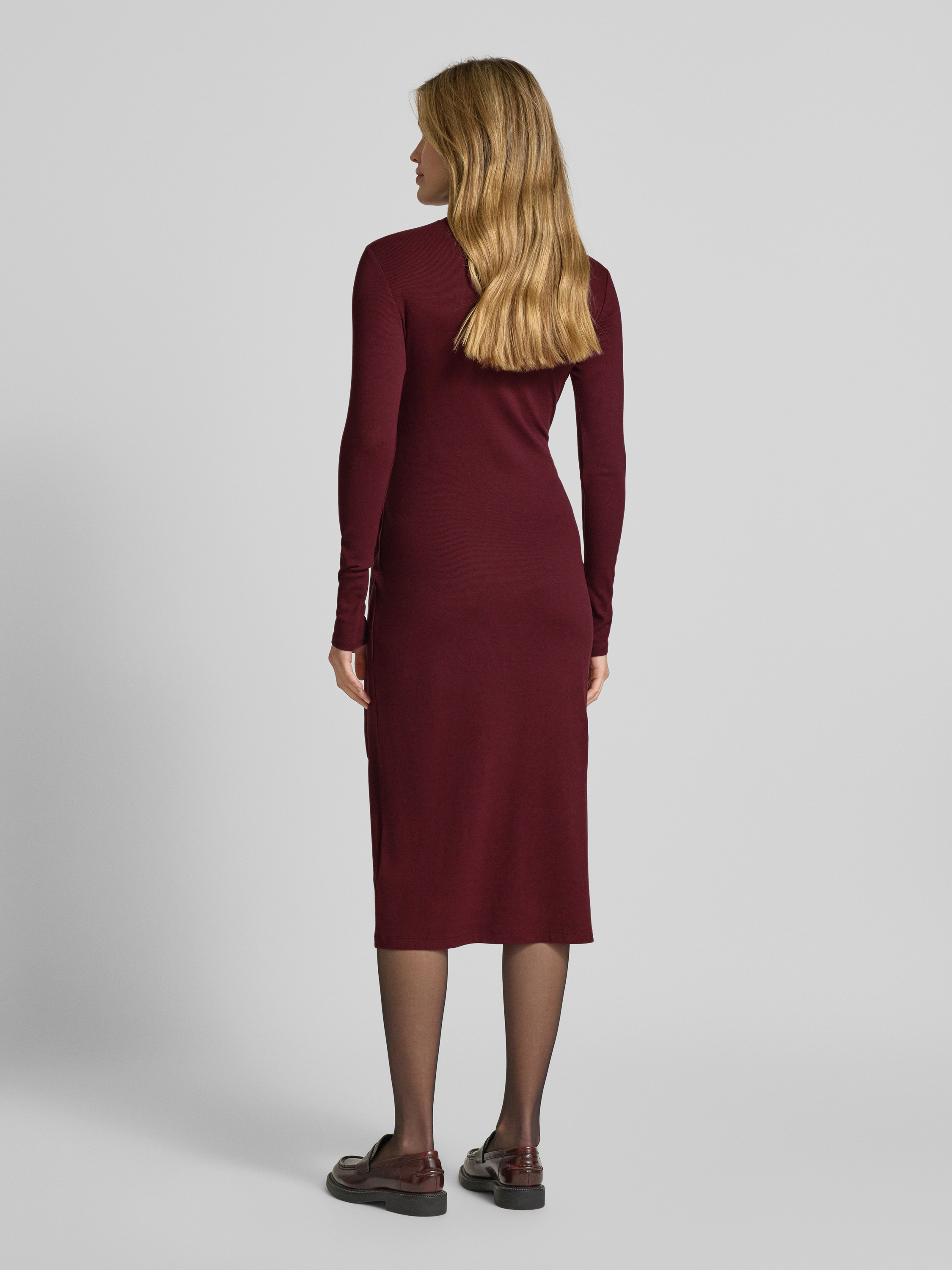 Midi-jurk met col, model 'VAUREEN' in bordeaux