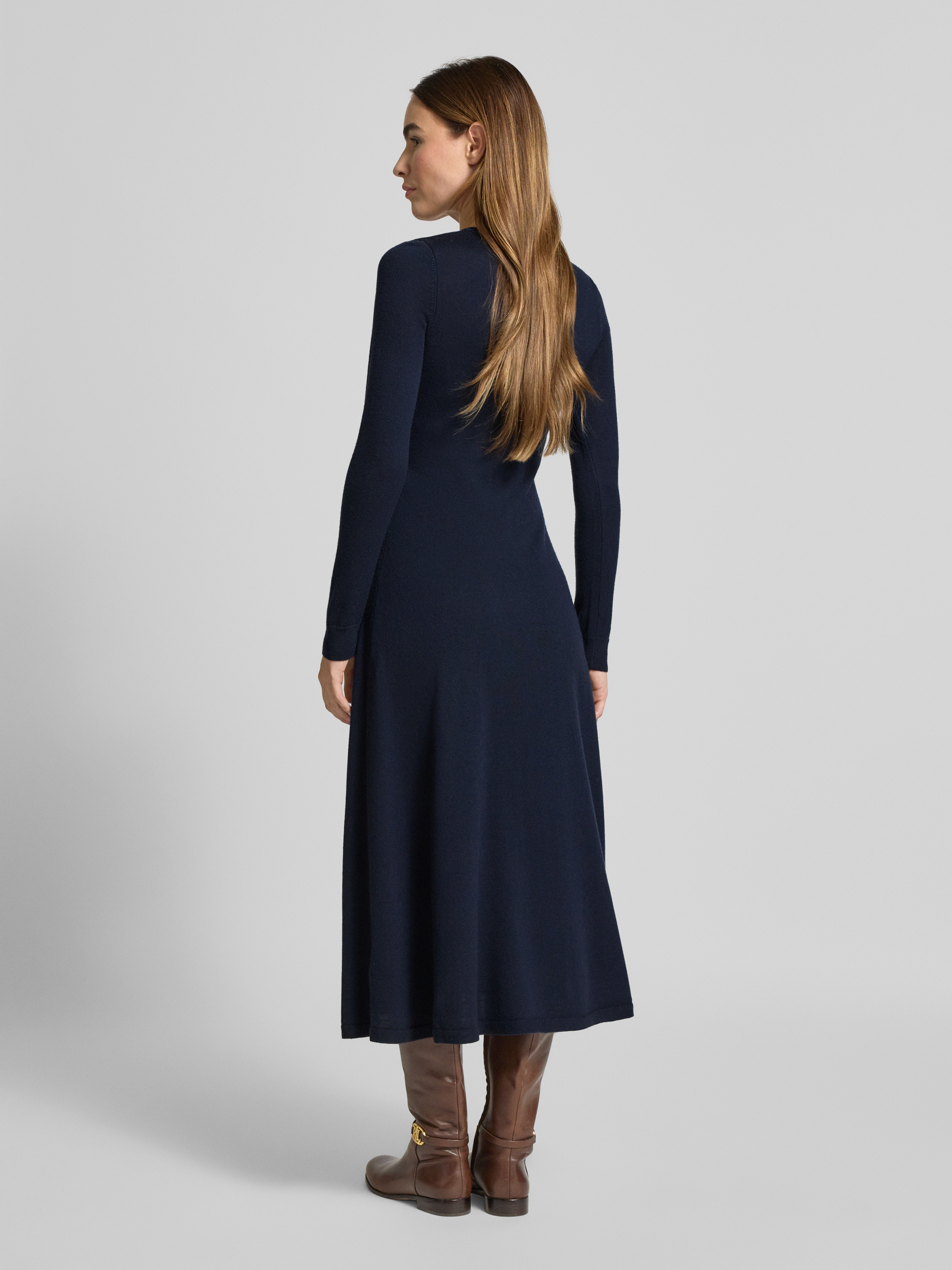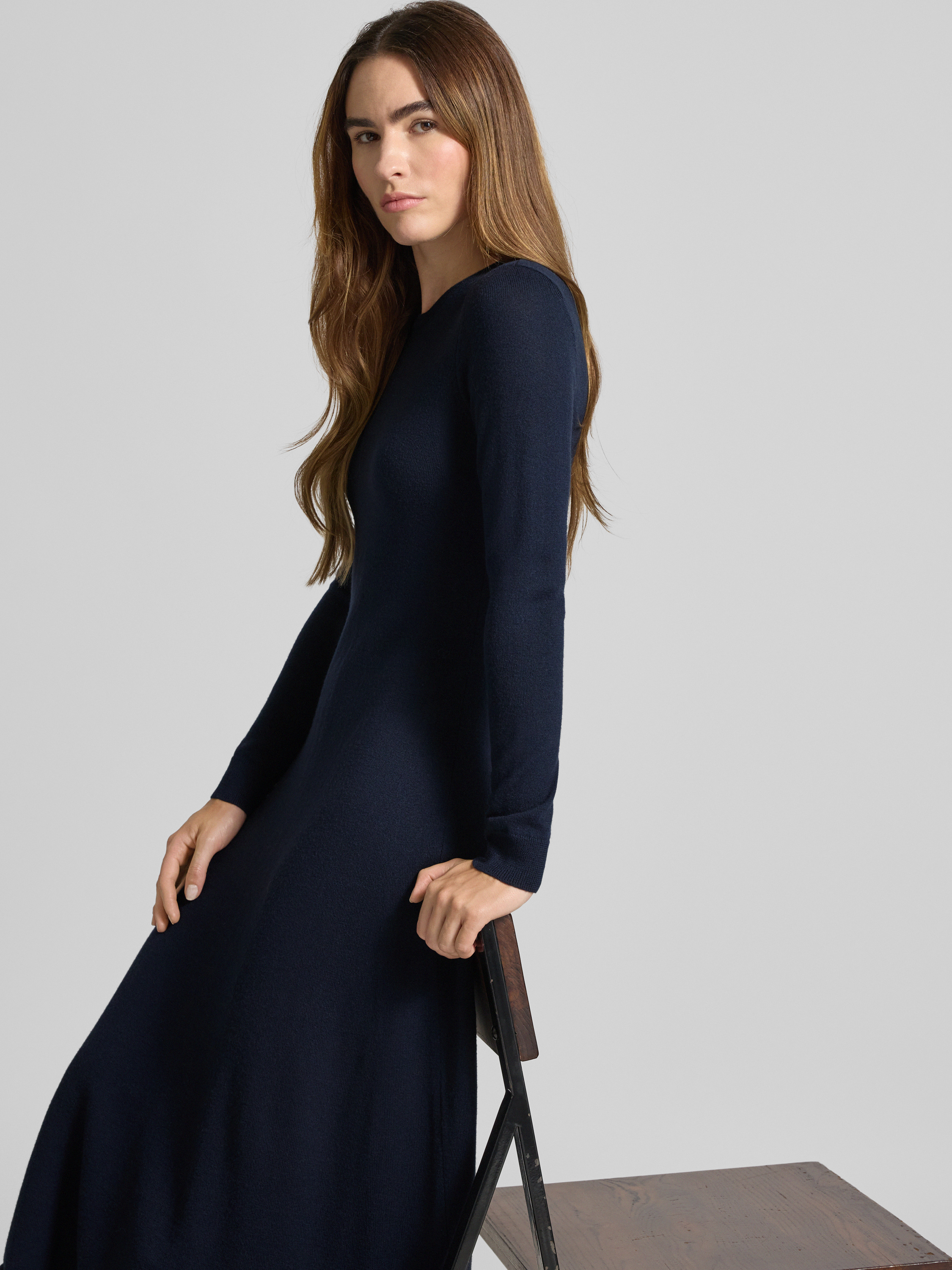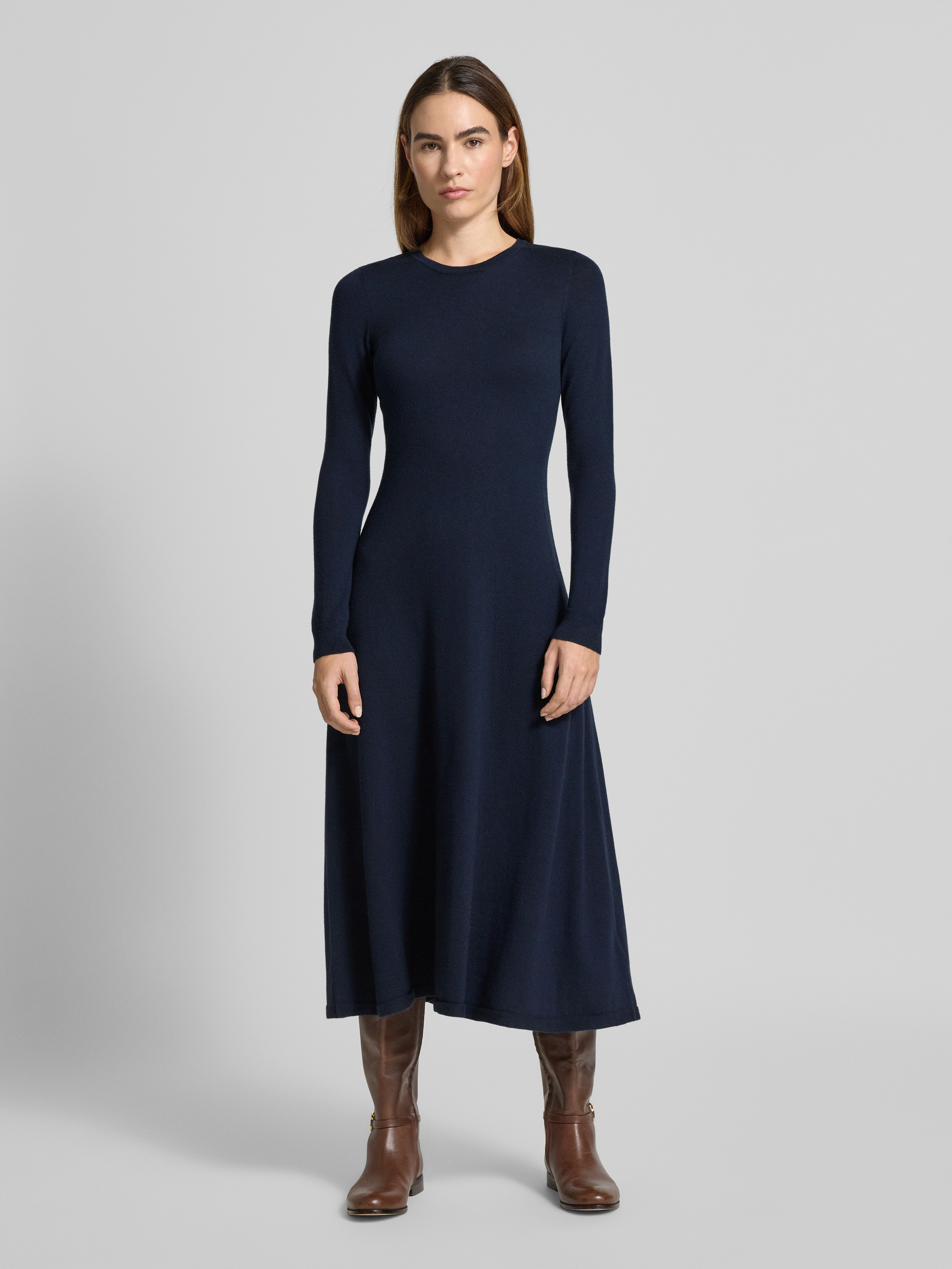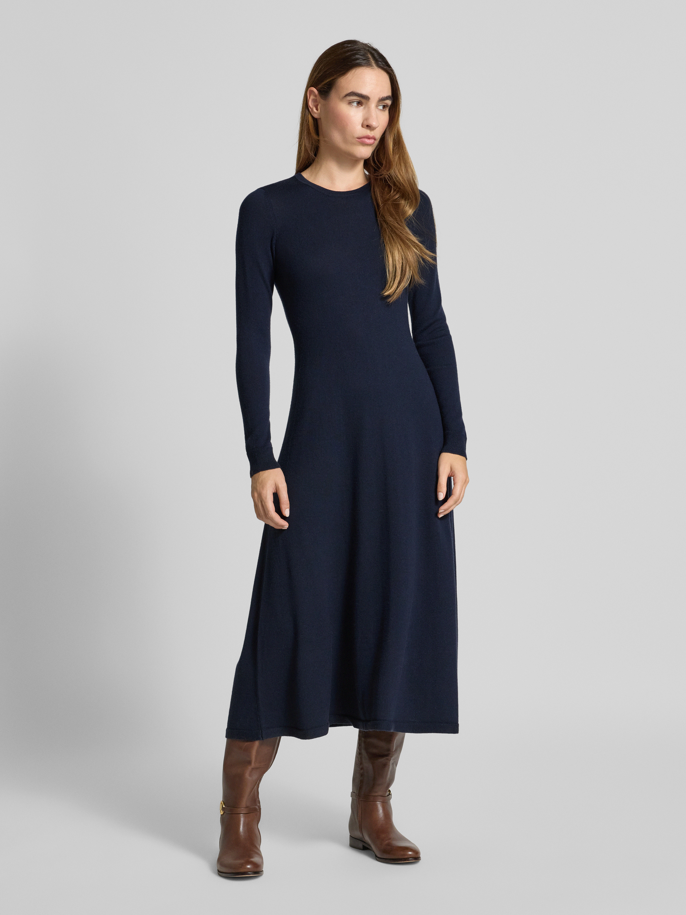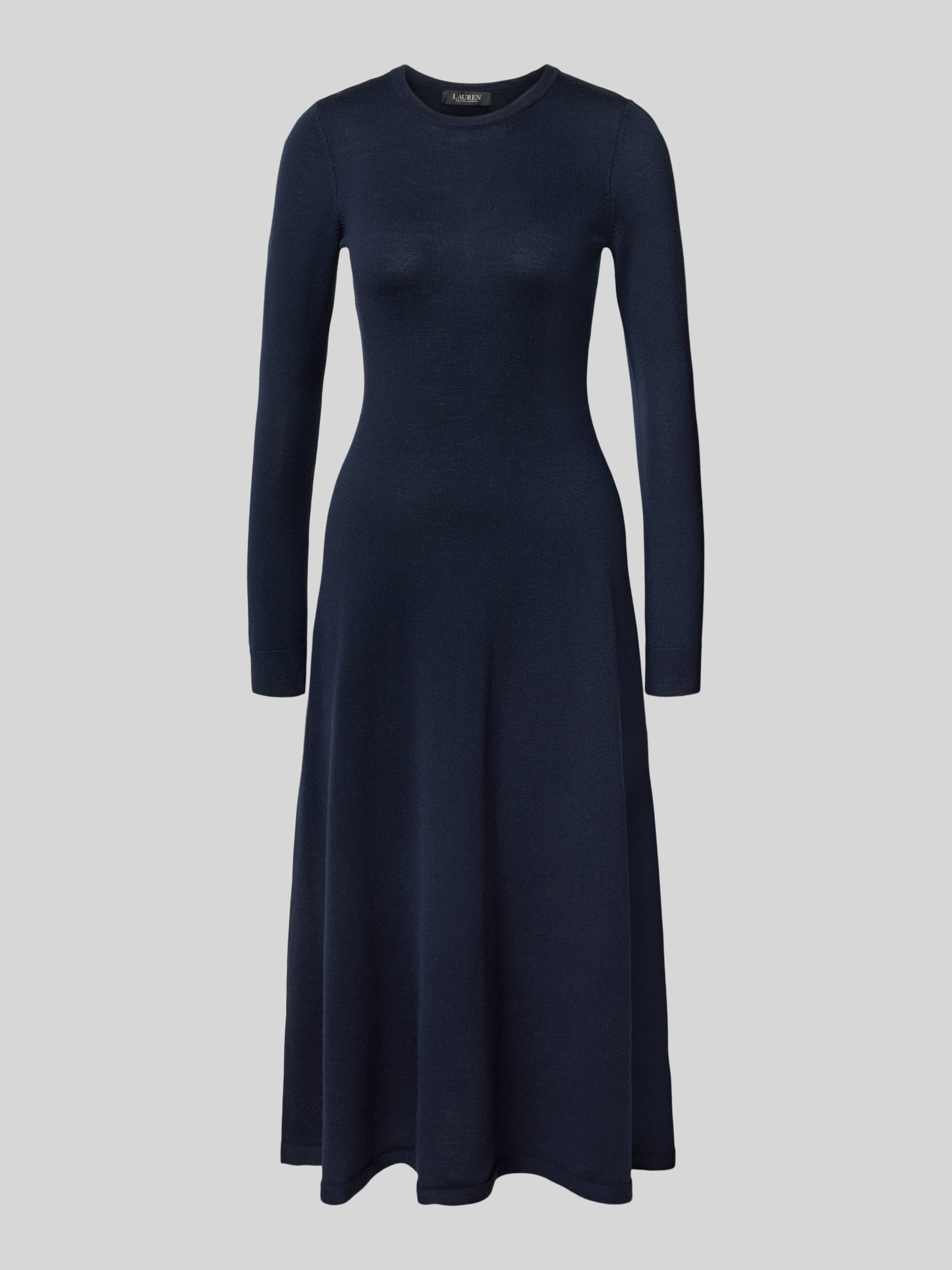 Midi-jurk van wol met ronde hals, model 'VORLEY' in marineblauw