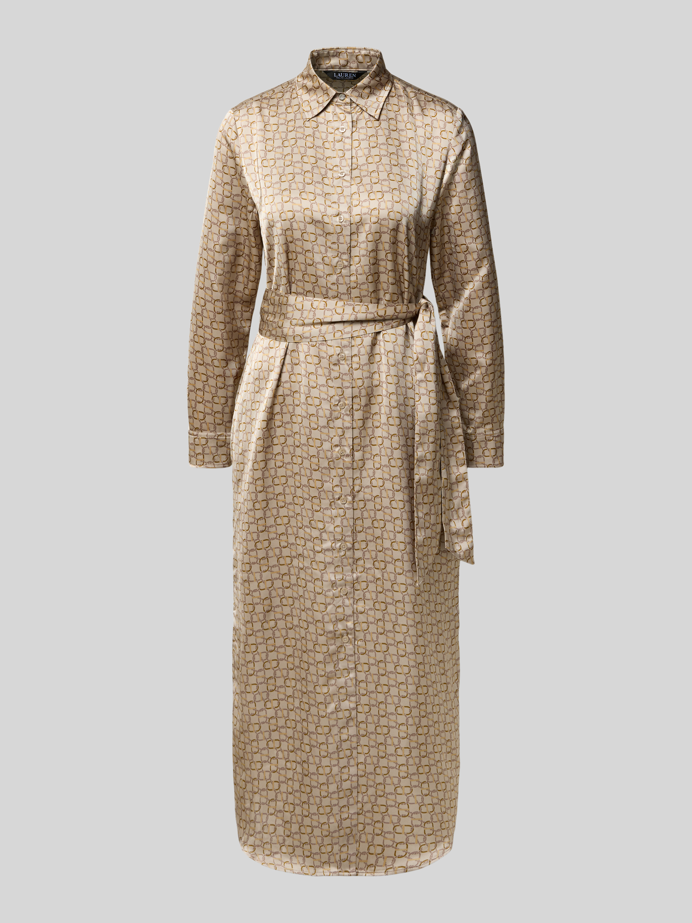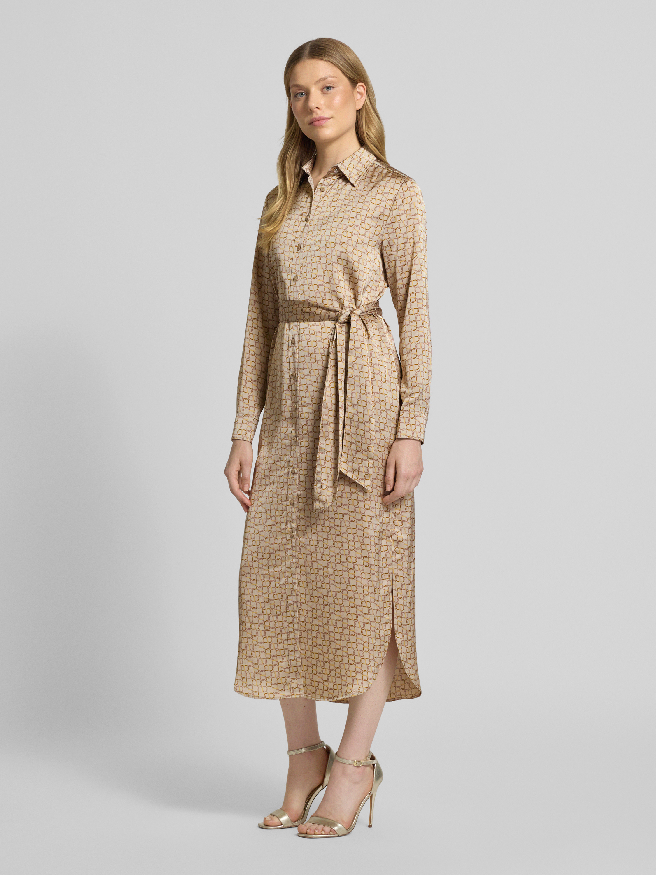 Overhemdjurk met strikceintuur, model 'KAYIN' in beige gemêleerd