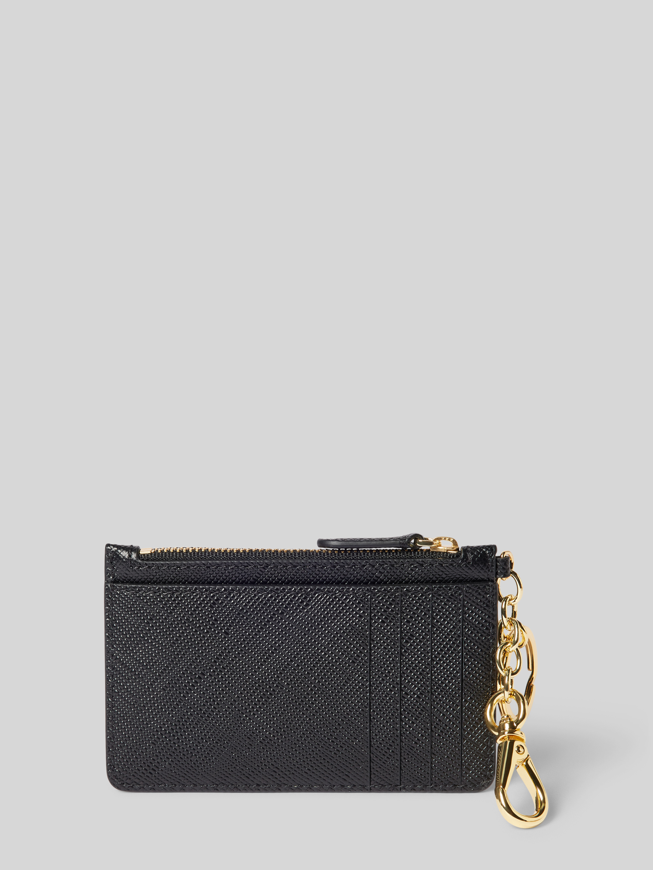 Pasjeshouder van runderleer met sleutelring en karabijnhaak in zwart