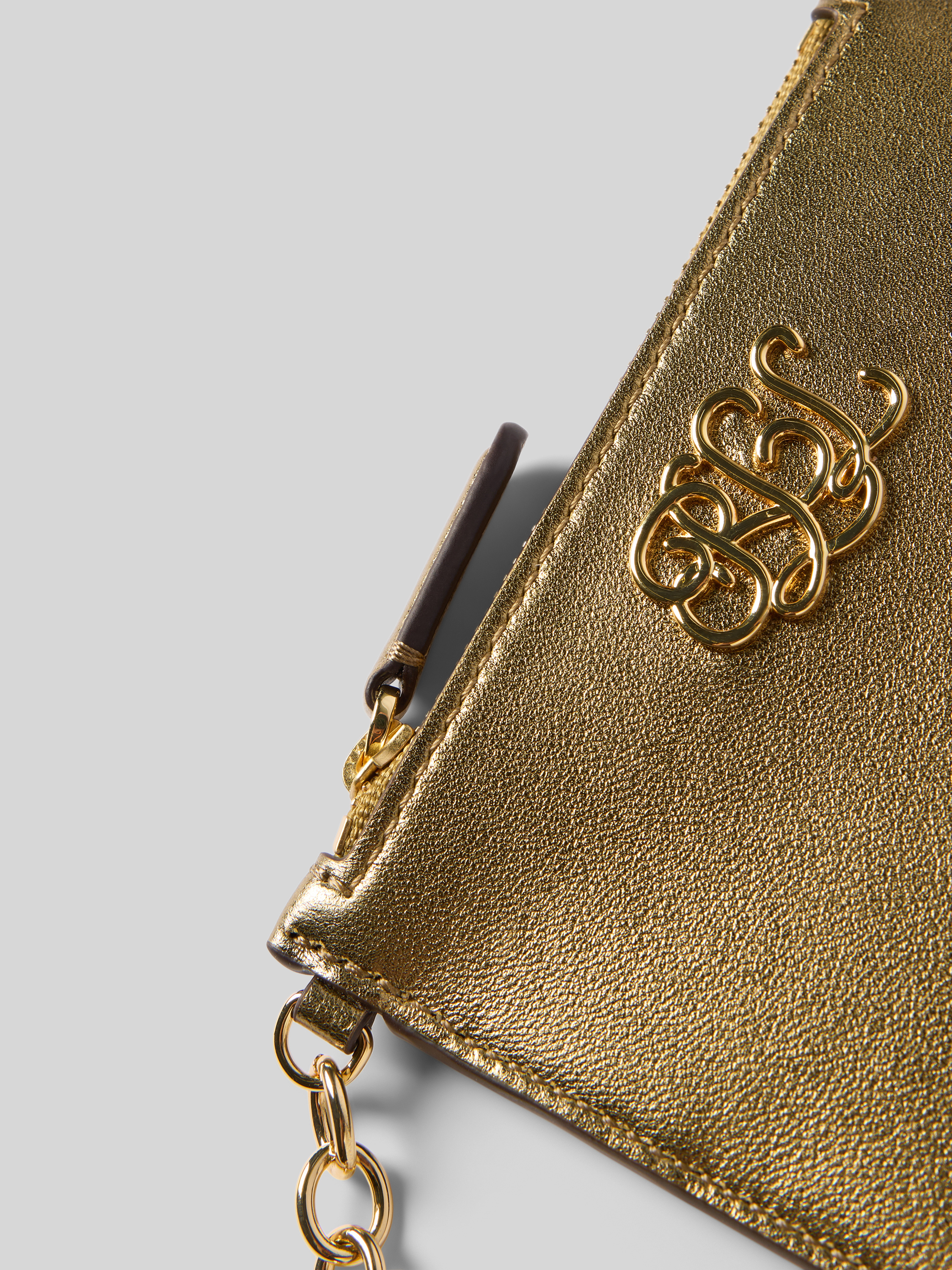 Portemonnee van schapenleer met karabijnsluiting in goud gemêleerd