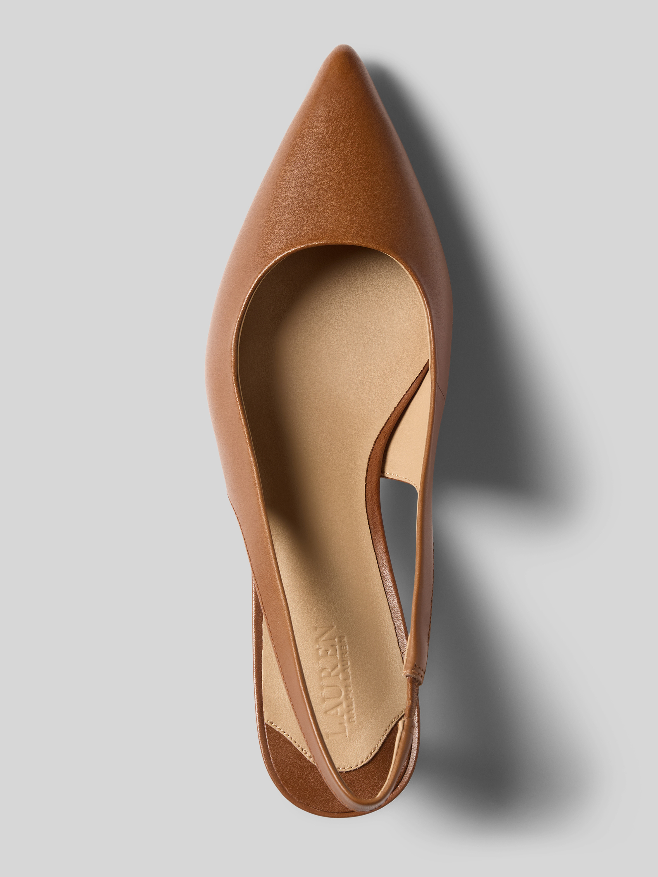 Pumps van leer met naaldhak, model 'LOLAH II' in cognac
