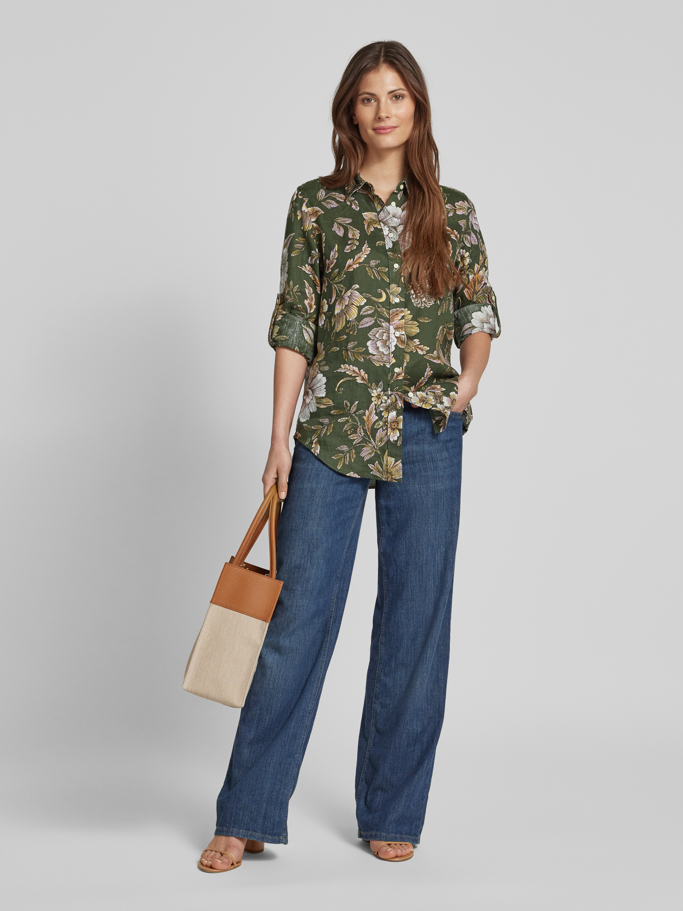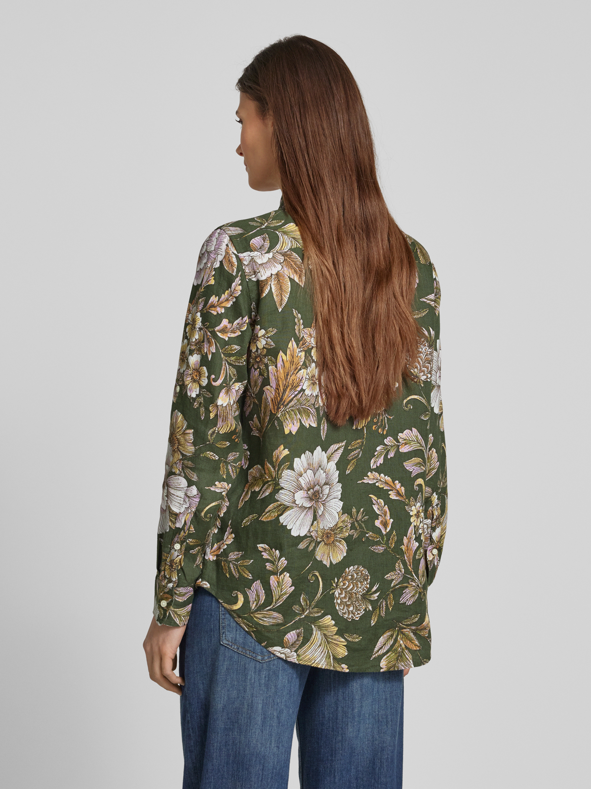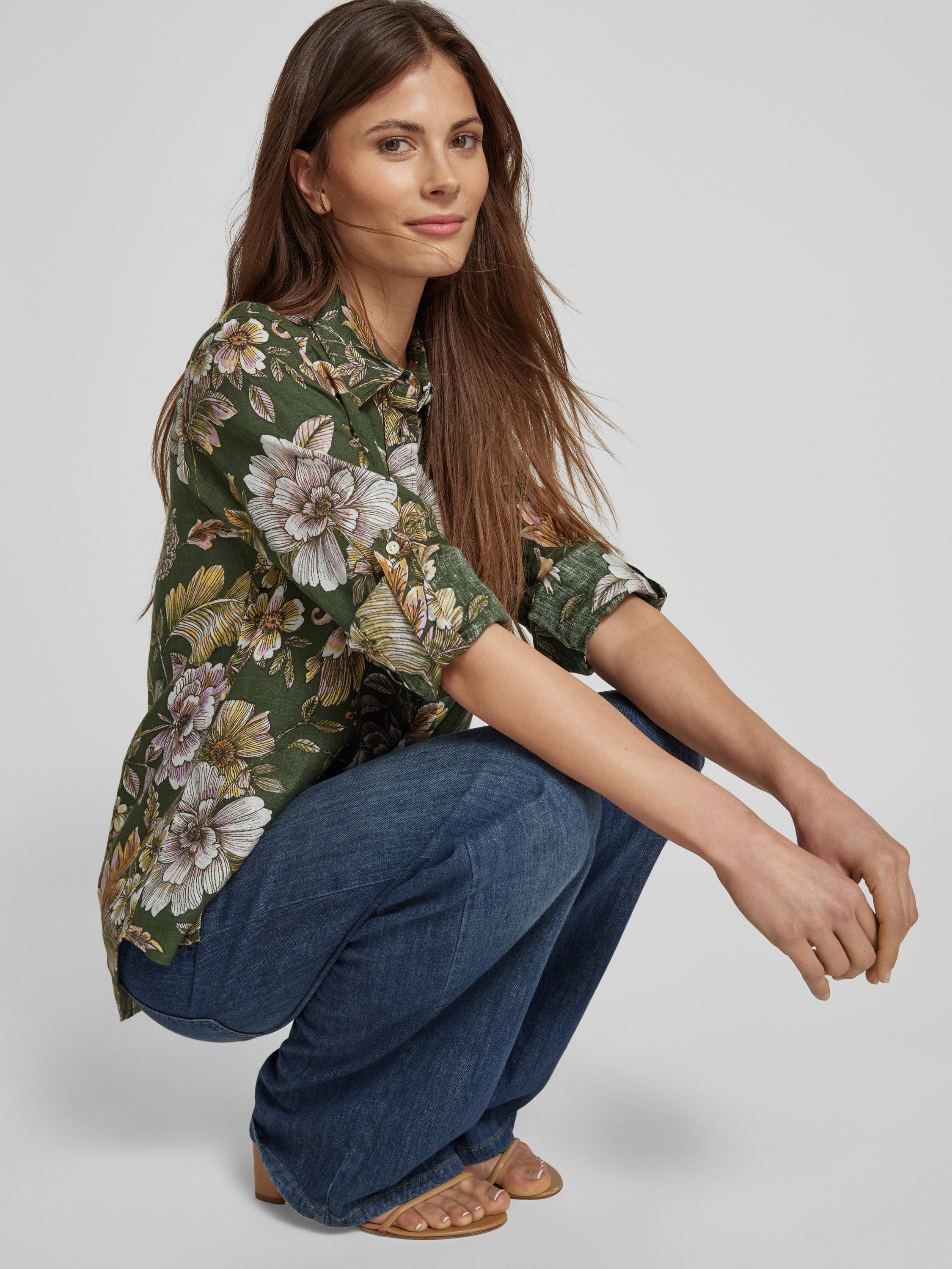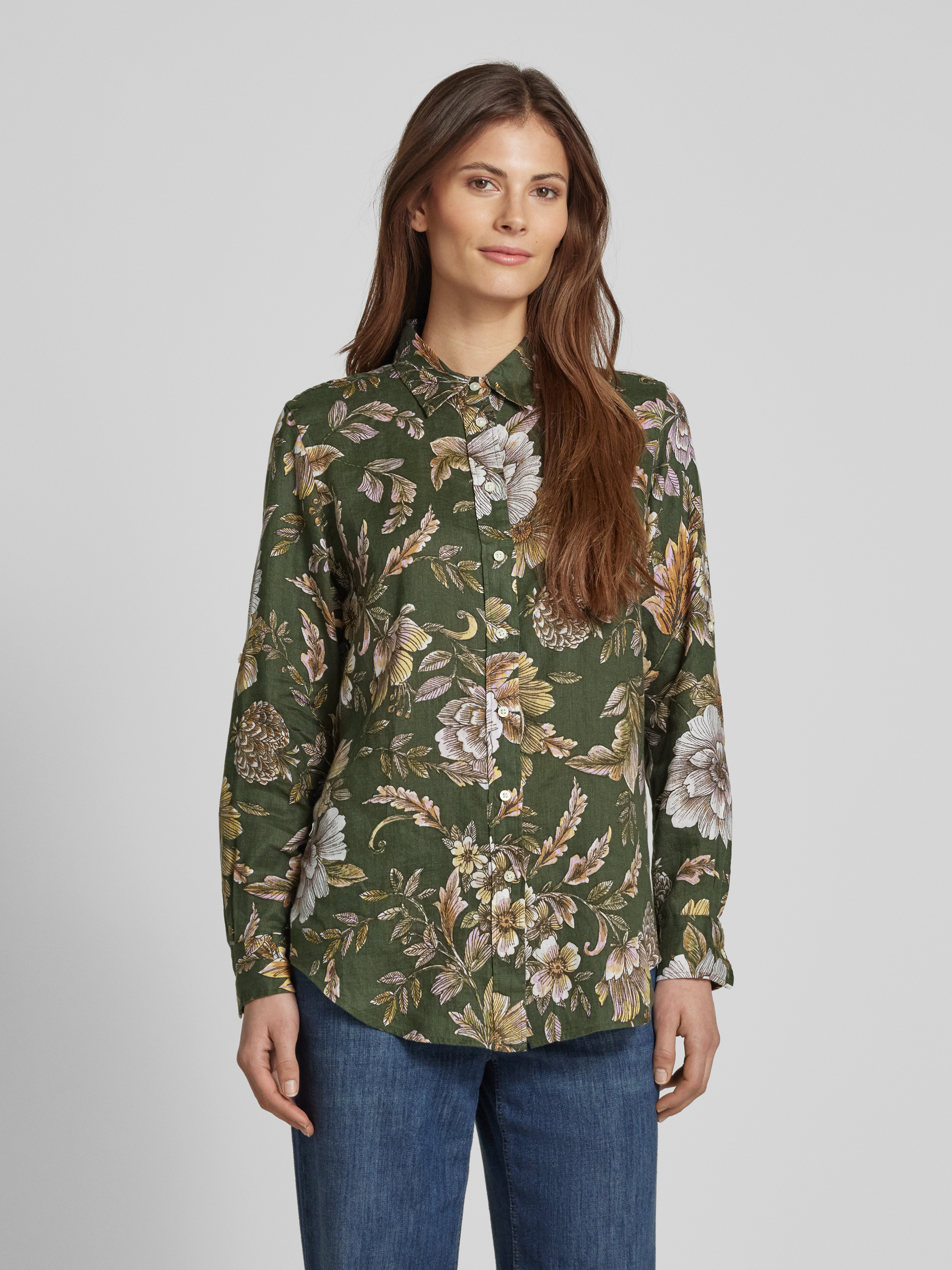 Regular fit linnen blouse met overhemdkraag, model 'KARRIE' in olijfgroen