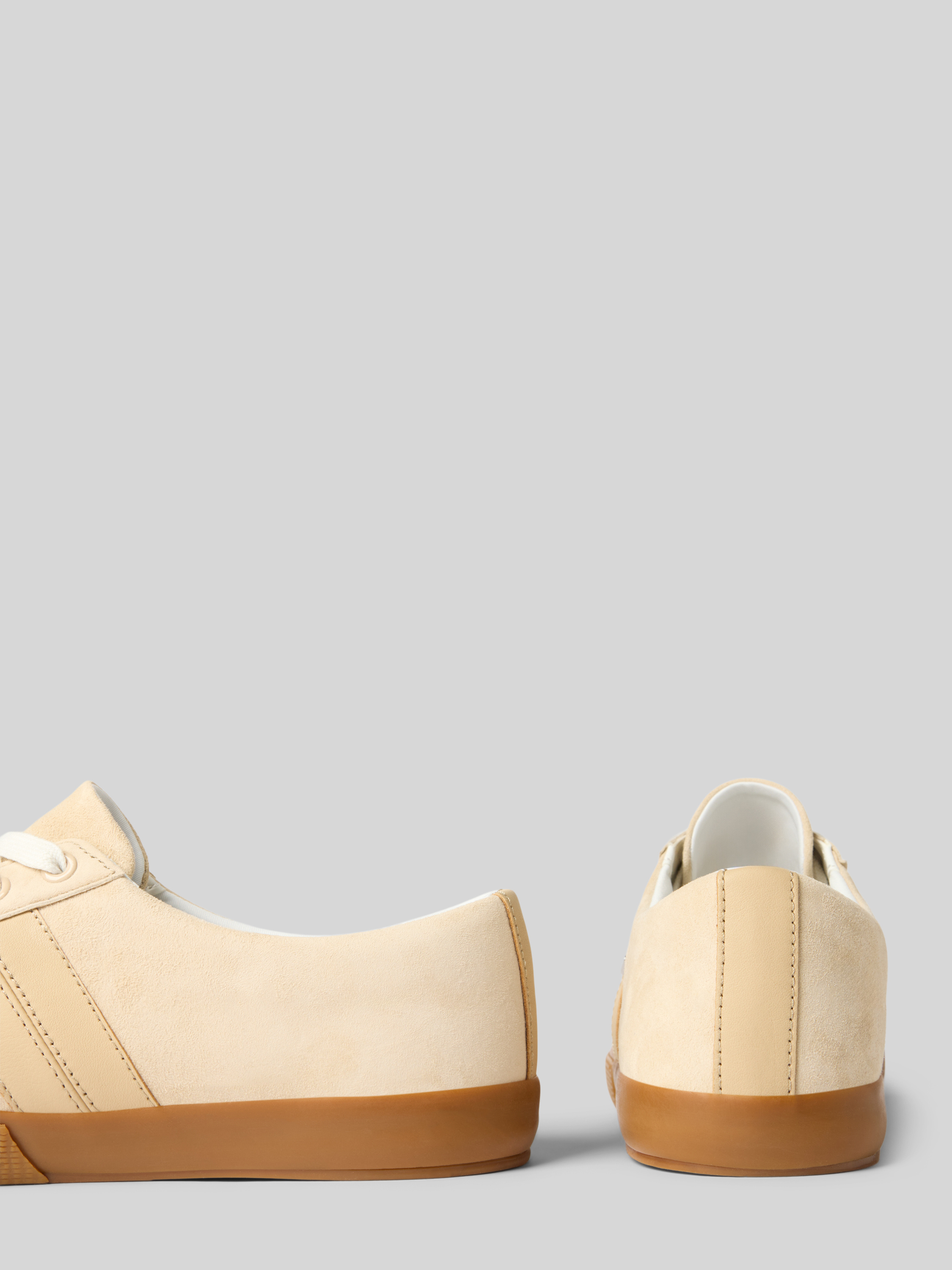 Sneakers van leer met labelapplicatie, model 'JANSON II' in zand