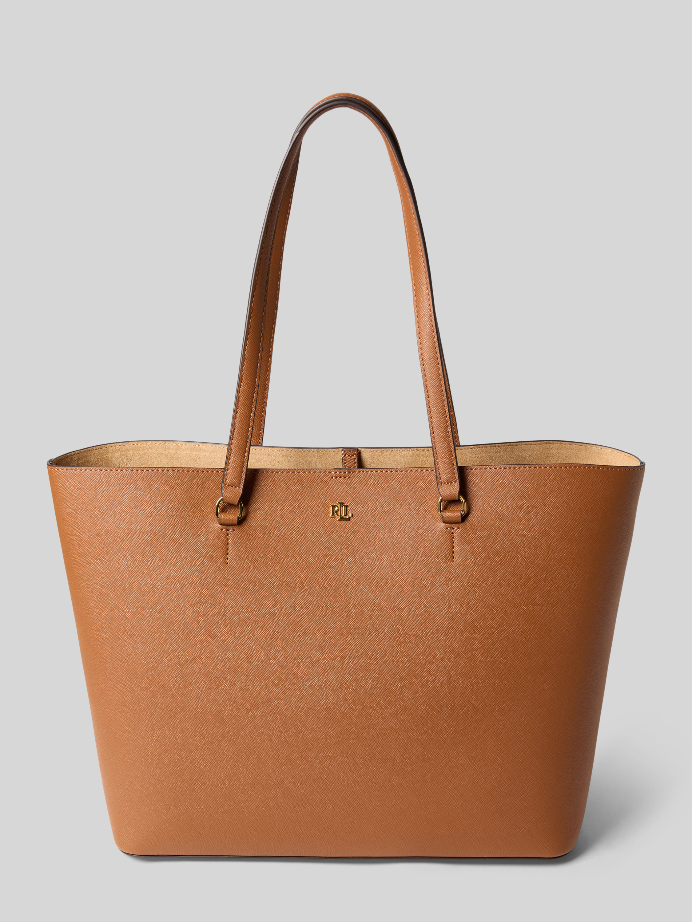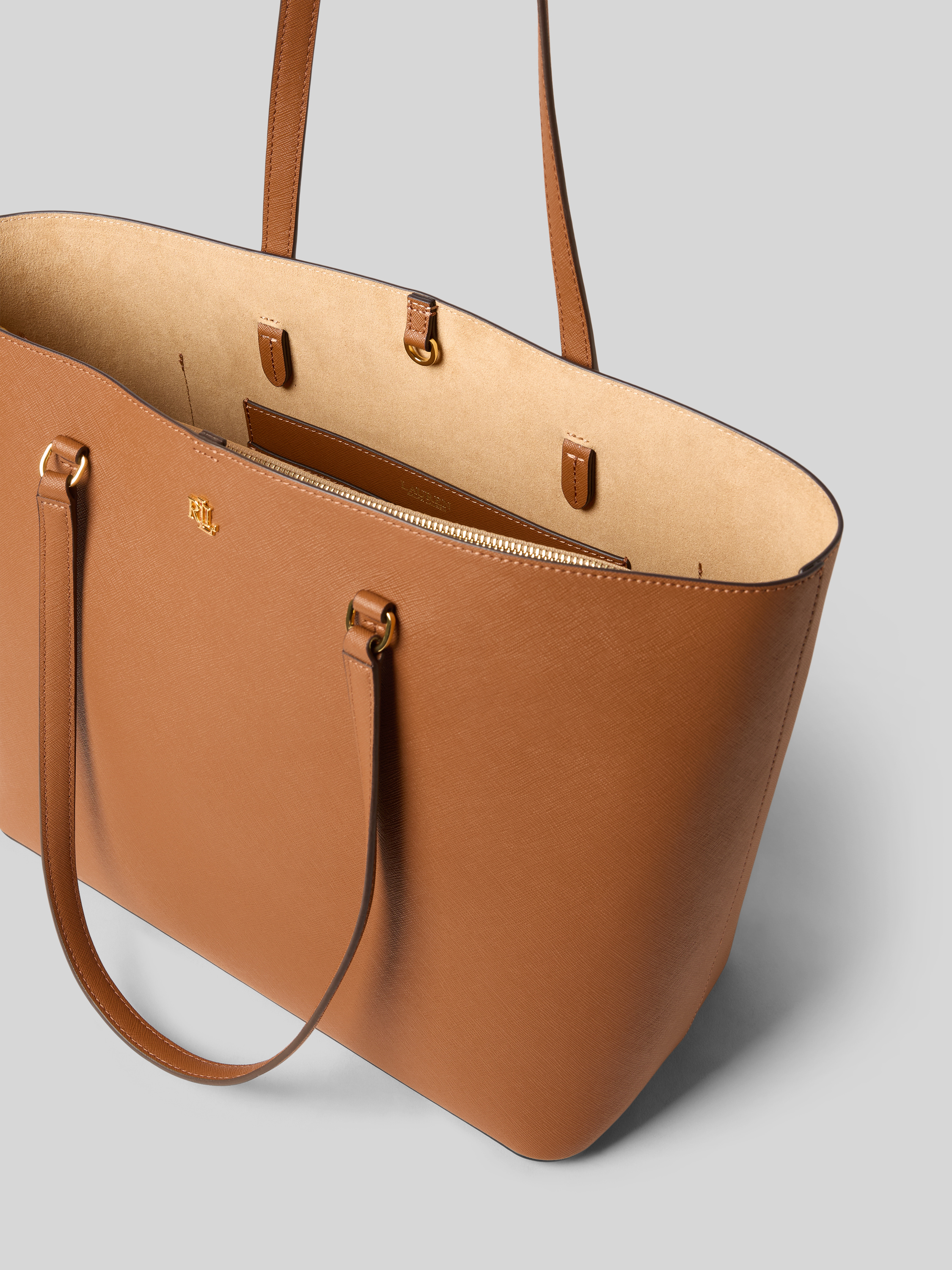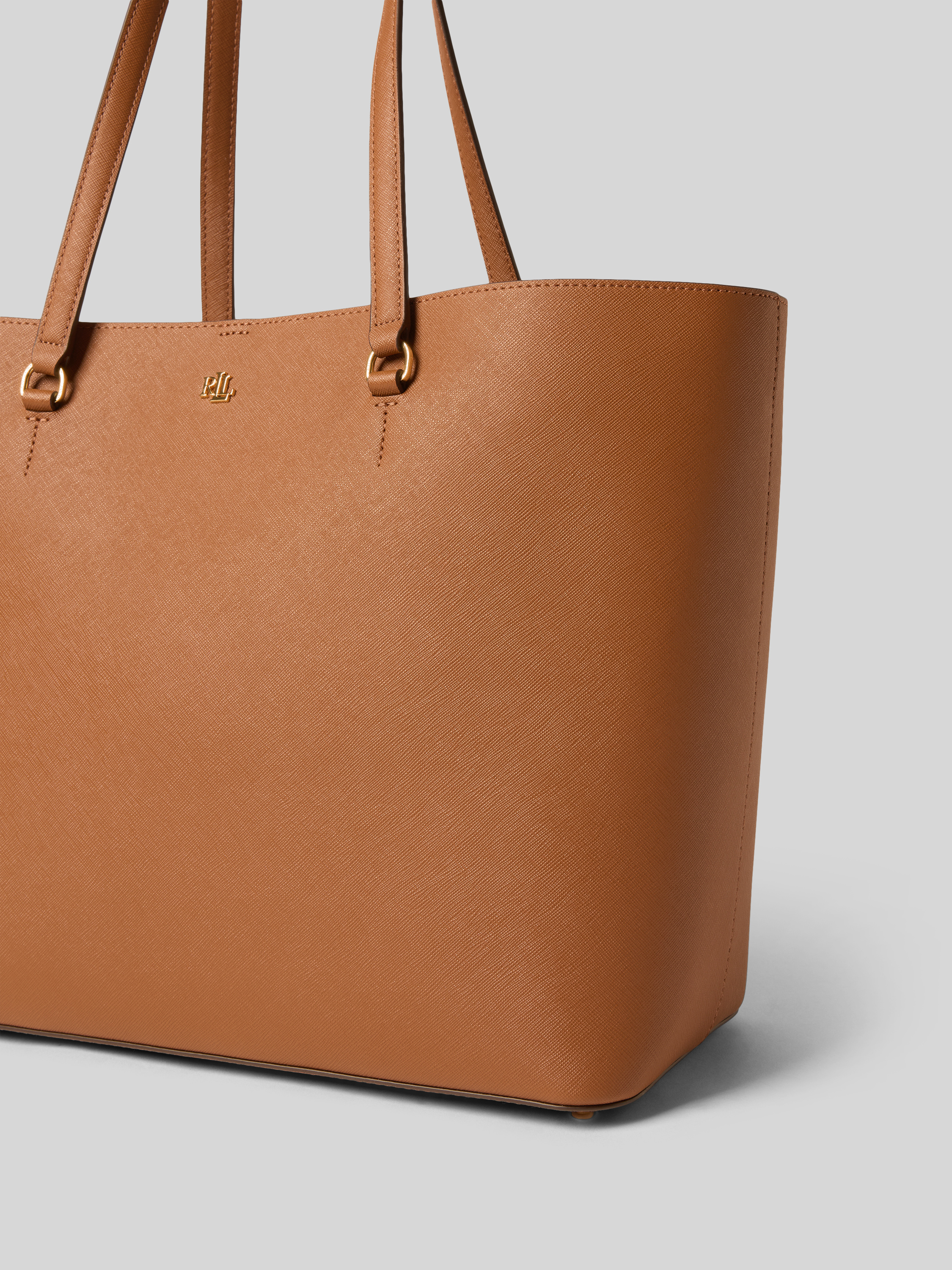 Tote bag van runderleer met labelapplicatie, model 'KARLY' in cognac