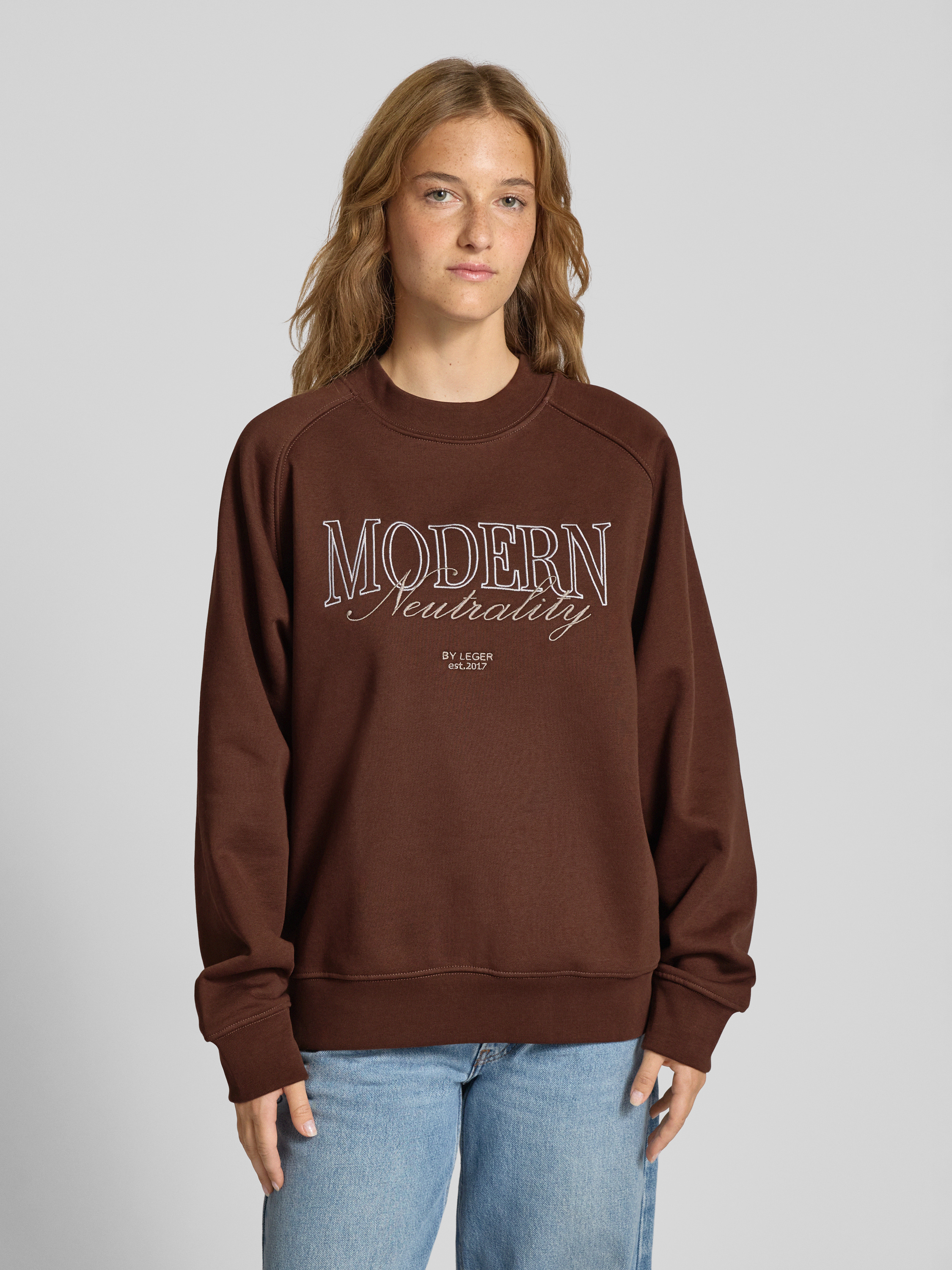 Oversized sweatshirt met ribboorden, model 'Maxime' in donkerbruin