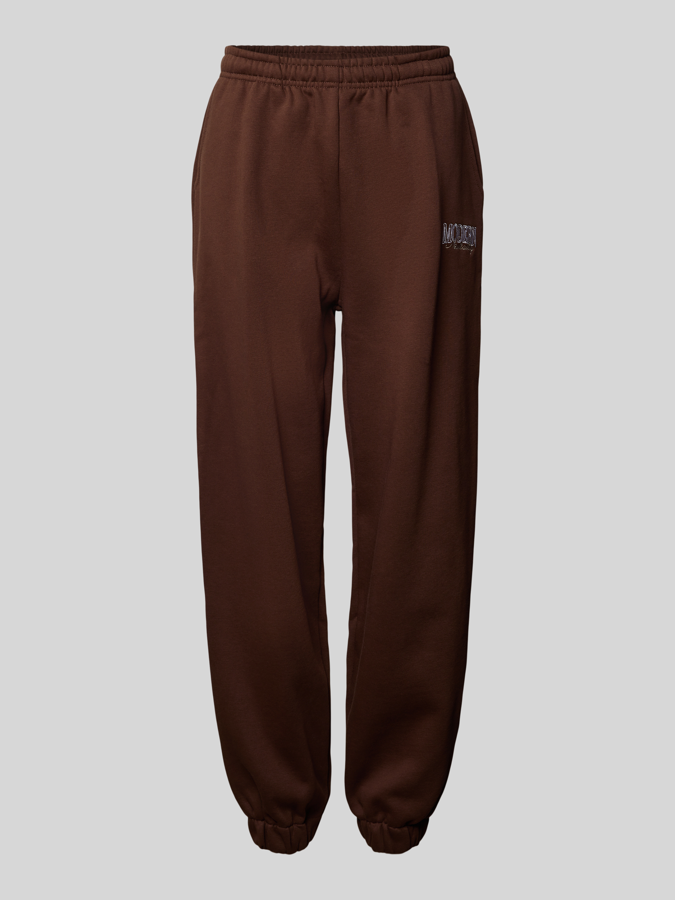 Sweatpants met elastische band, model 'Maxime' in donkerbruin