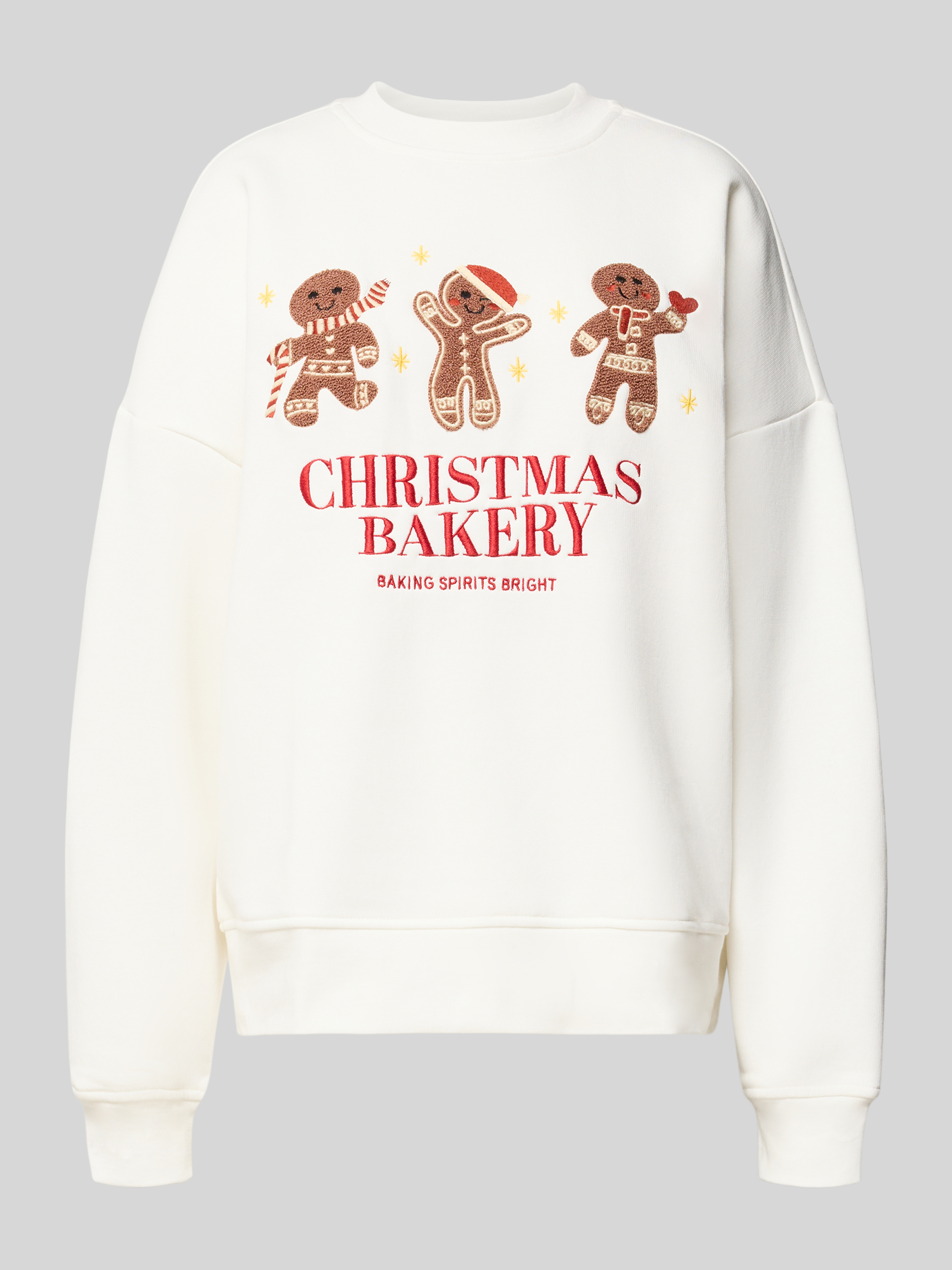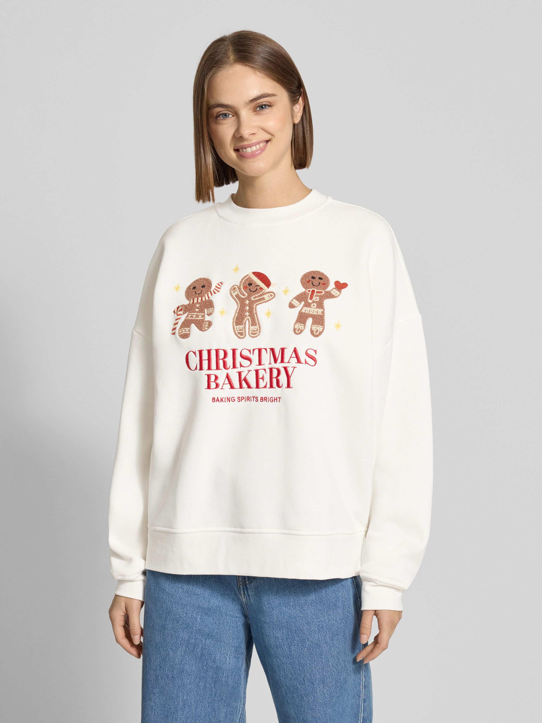 Sweatshirt met stitchings, model 'Daphne' in offwhite