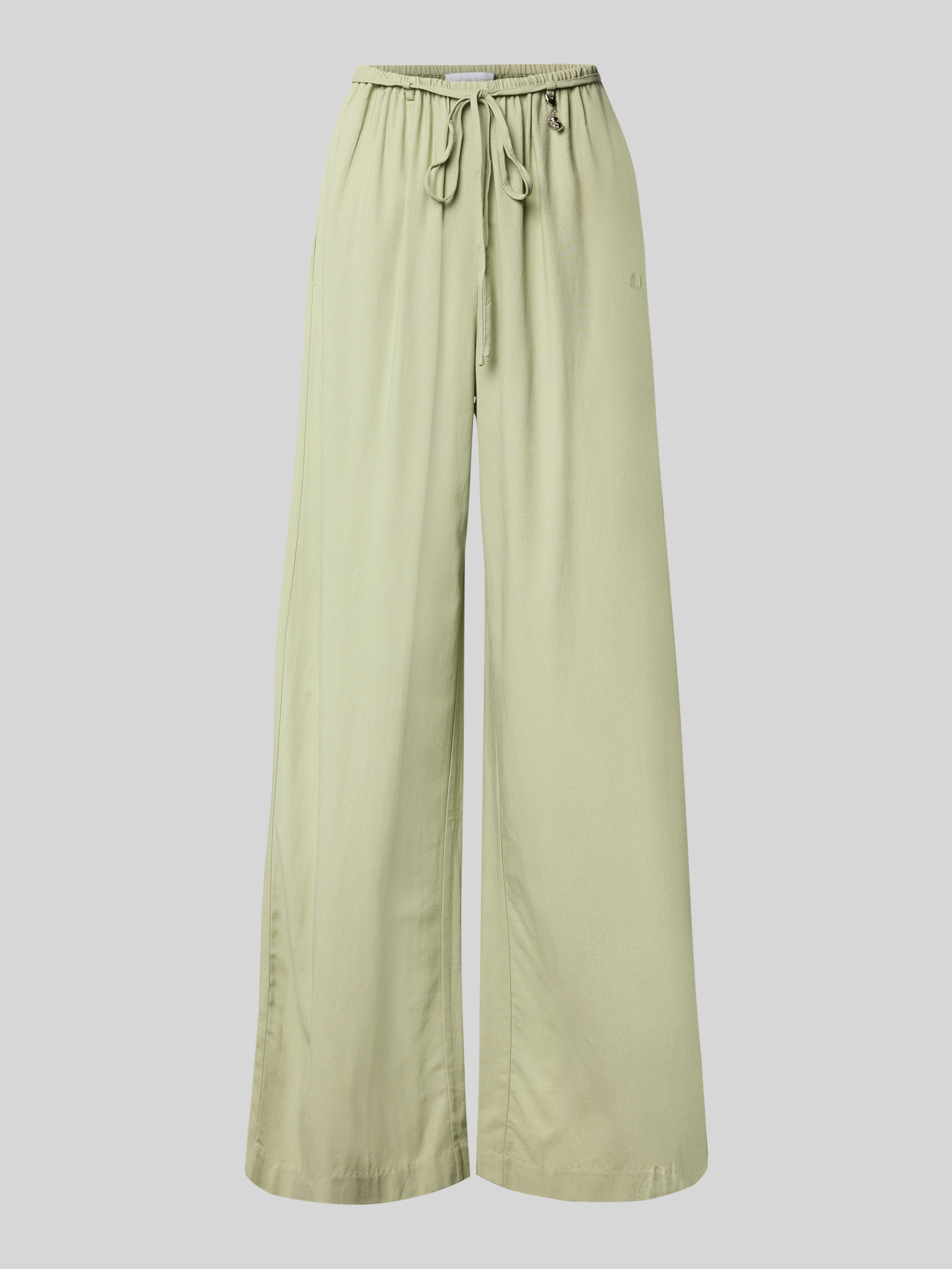 Wide leg stoffen broek van een mix van viscose en linnen, model 'Emelie' in rietgroen
