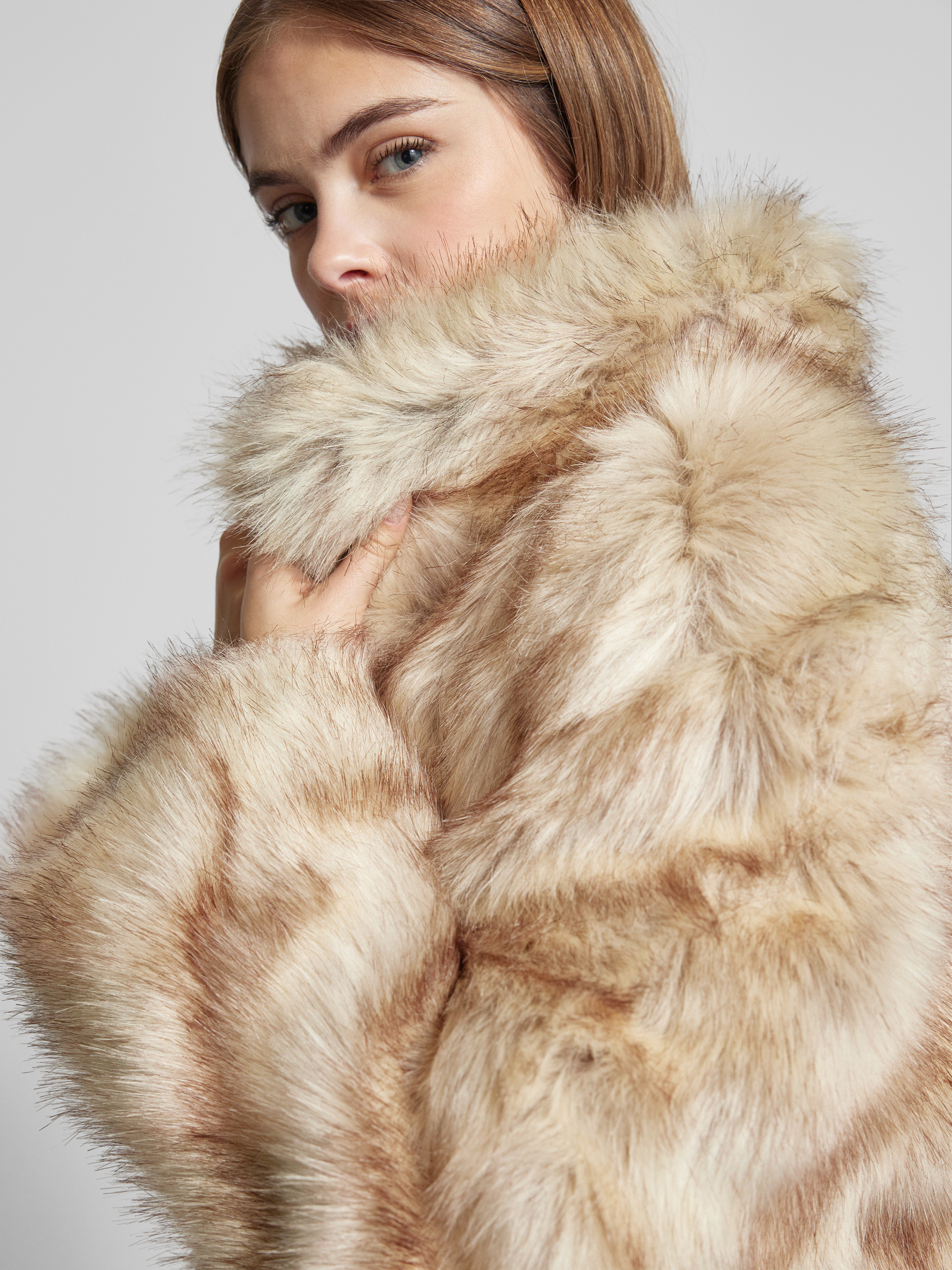 Winterjack van imitatiebont, model 'Fergie' in beige