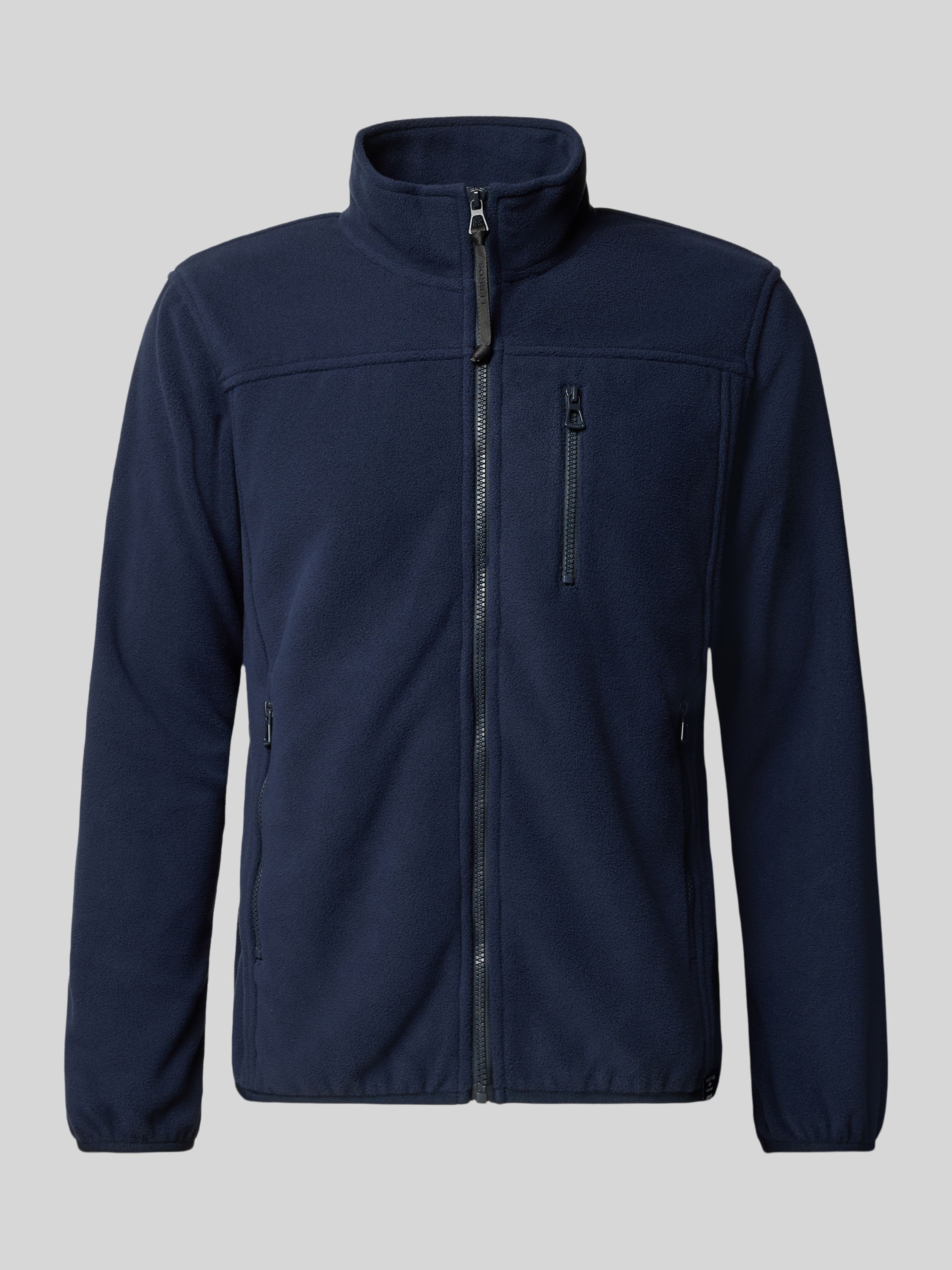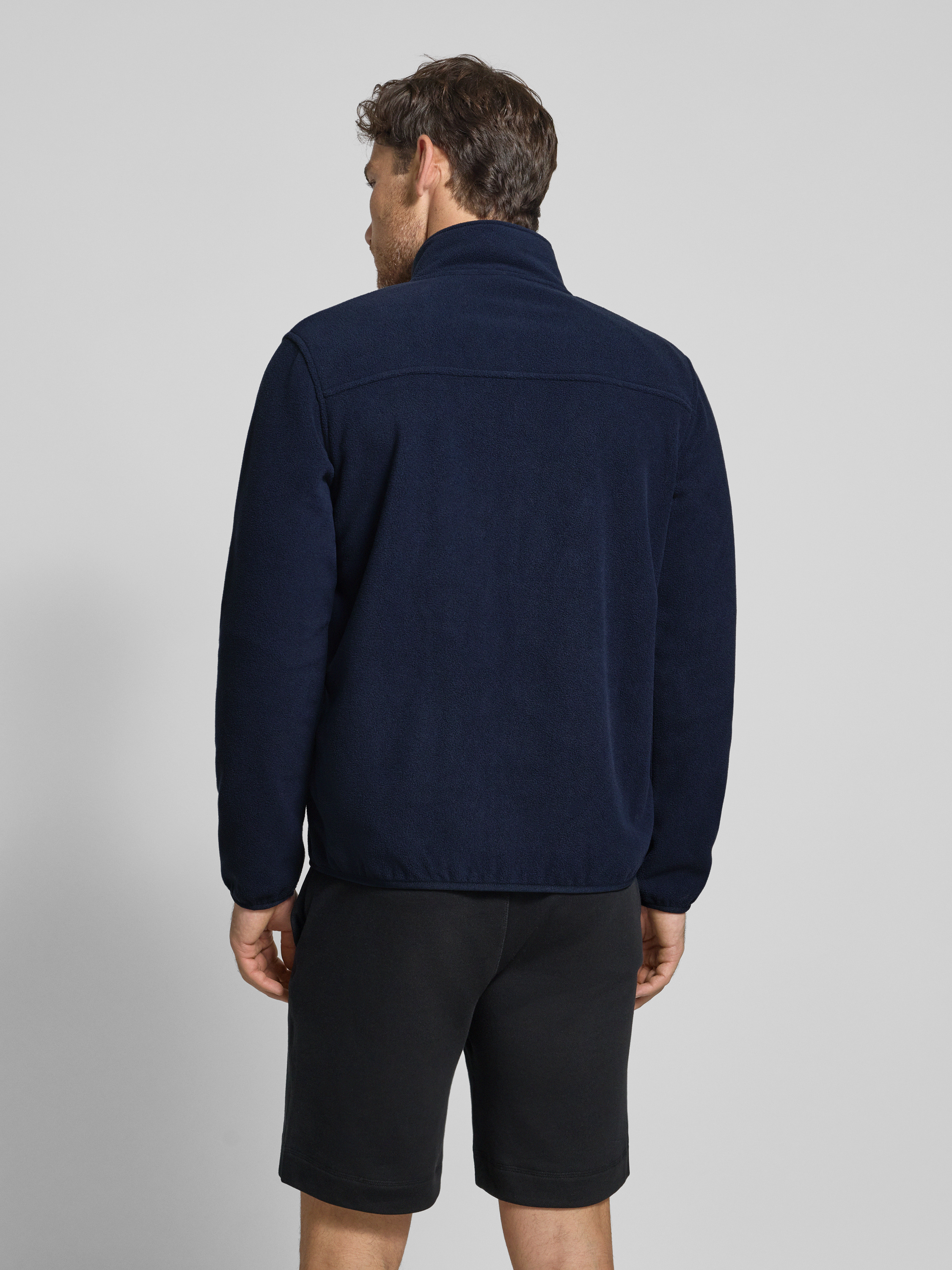 Fleecejack met opstaande kraag en labeldetail in donkerblauw