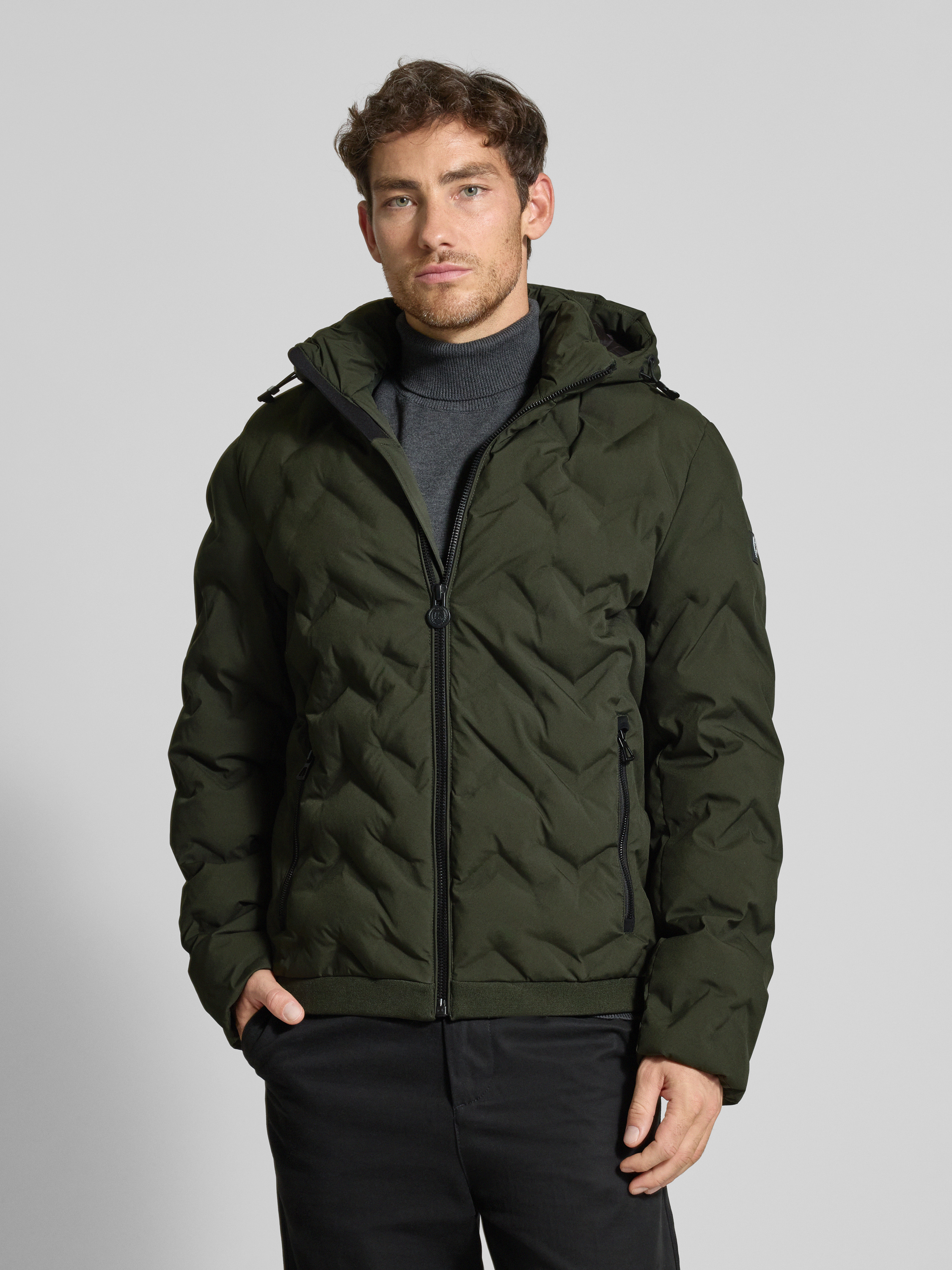 Regular fit gewatteerd jack met ritszakken in donkergroen