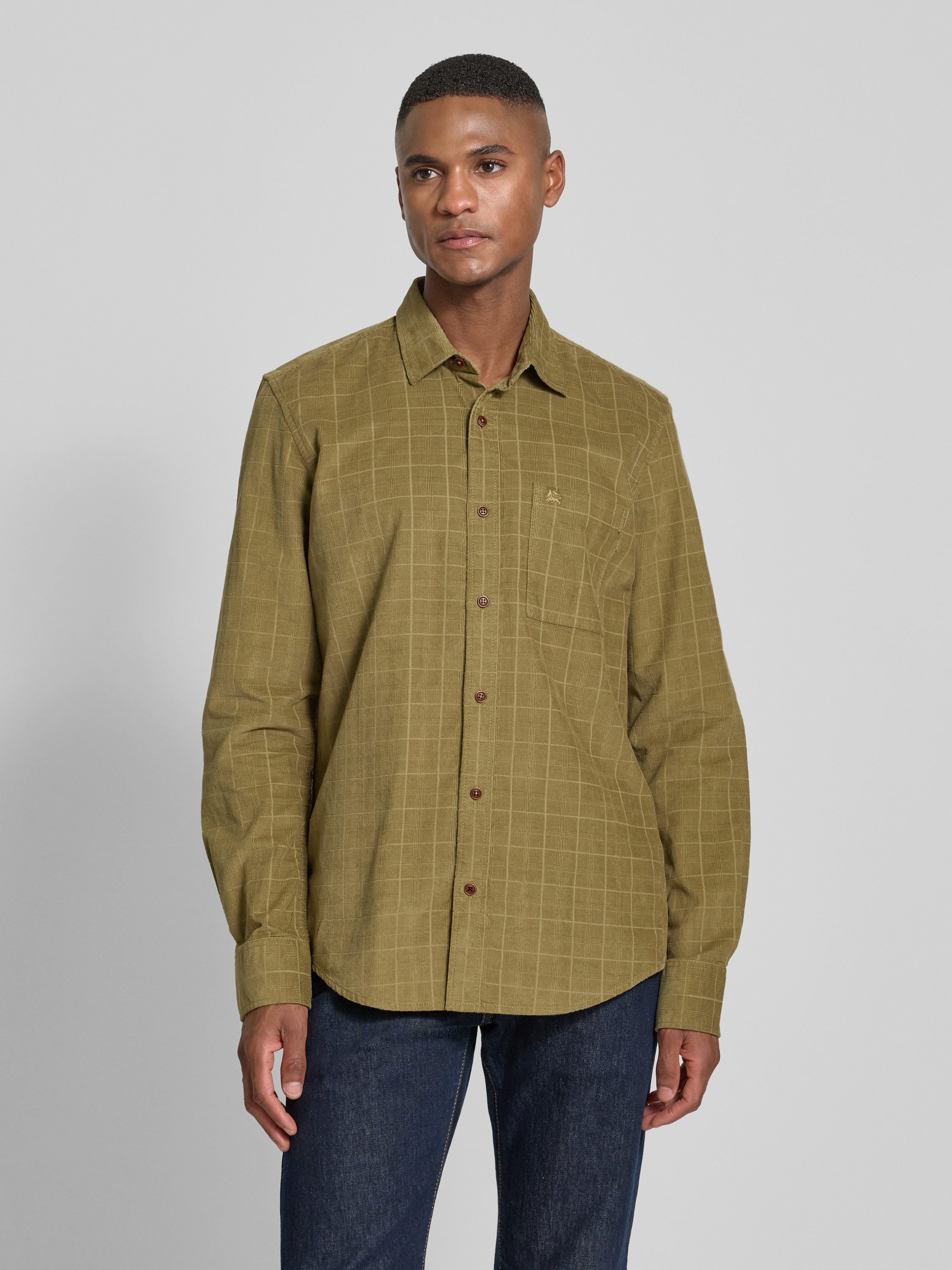 Regular fit vrijetijdsoverhemd van corduroy met kentkraag in kaki