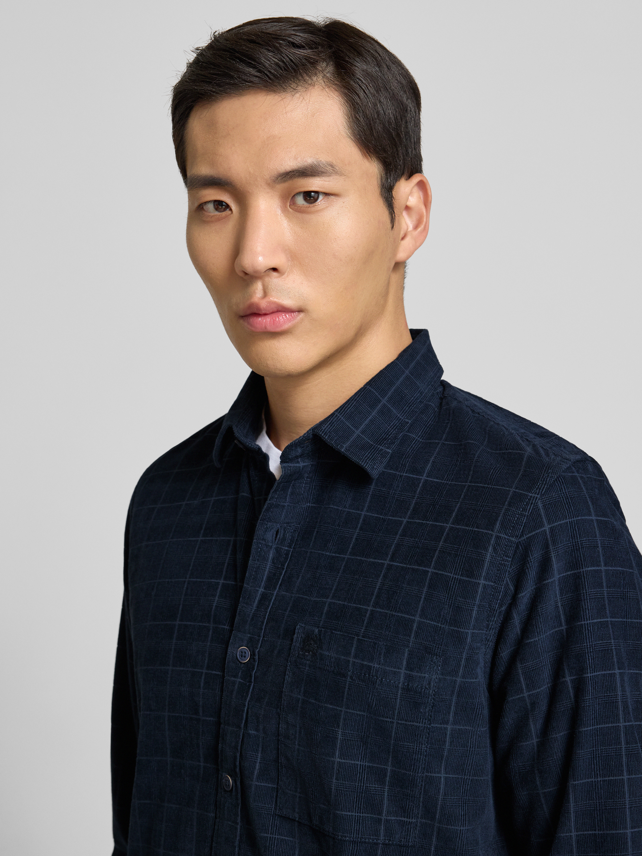 Regular fit vrijetijdsoverhemd van corduroy met kentkraag in marineblauw
