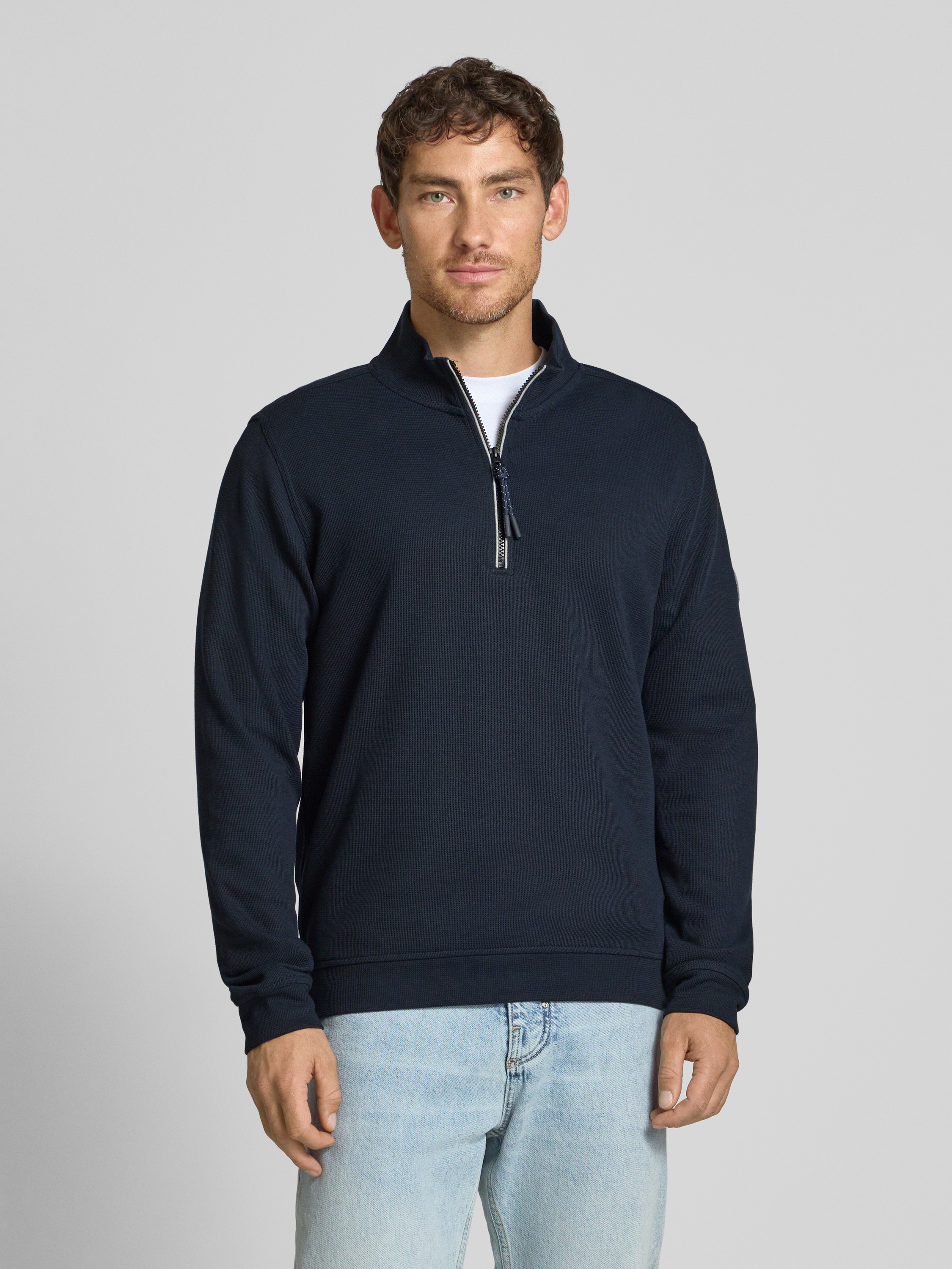 Sweatshirt met opstaande kraag, model 'SELANIK' in donkerblauw