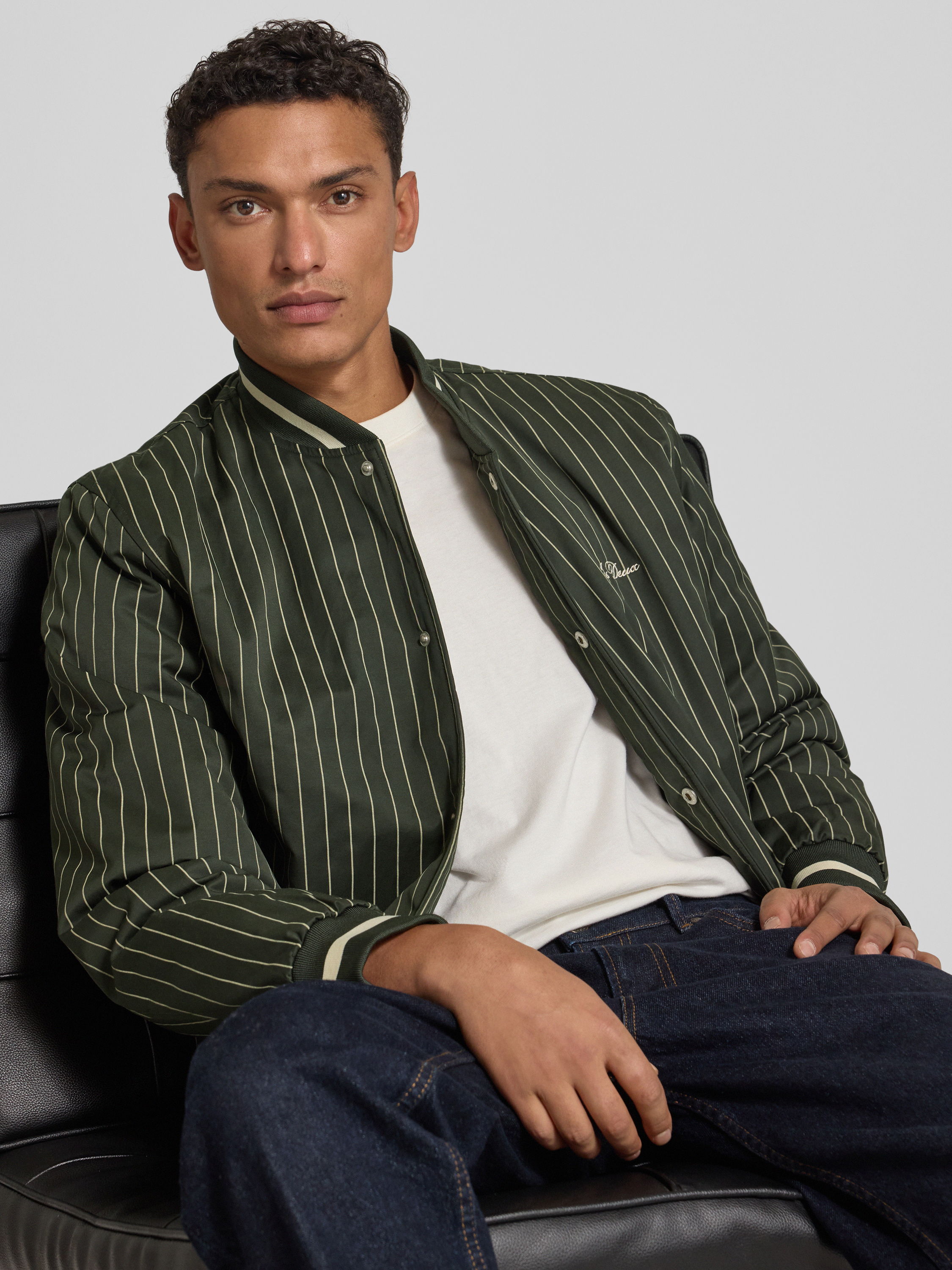 Bomberjack met labelstitching, model 'Varsity Tech' in donkergroen