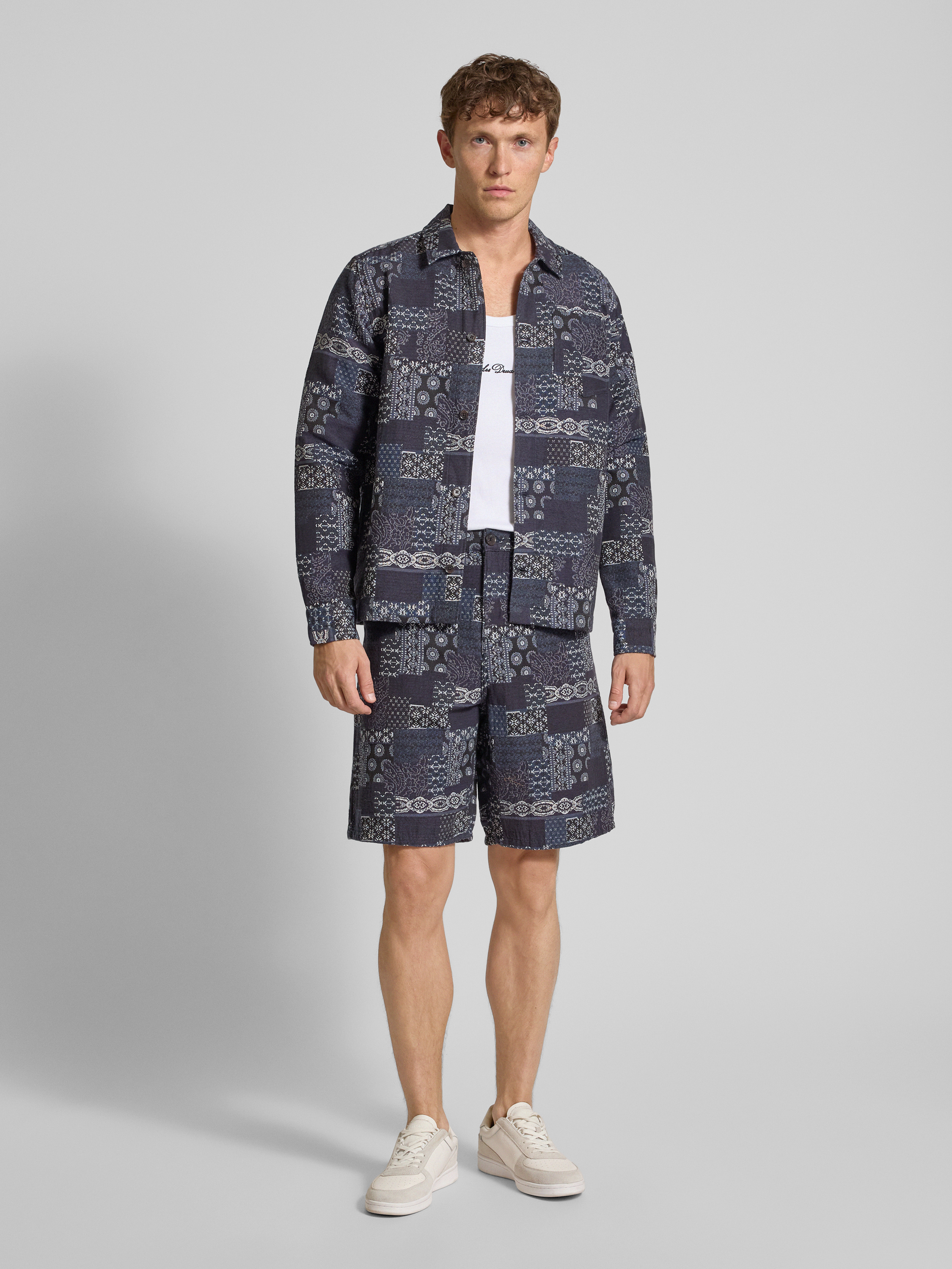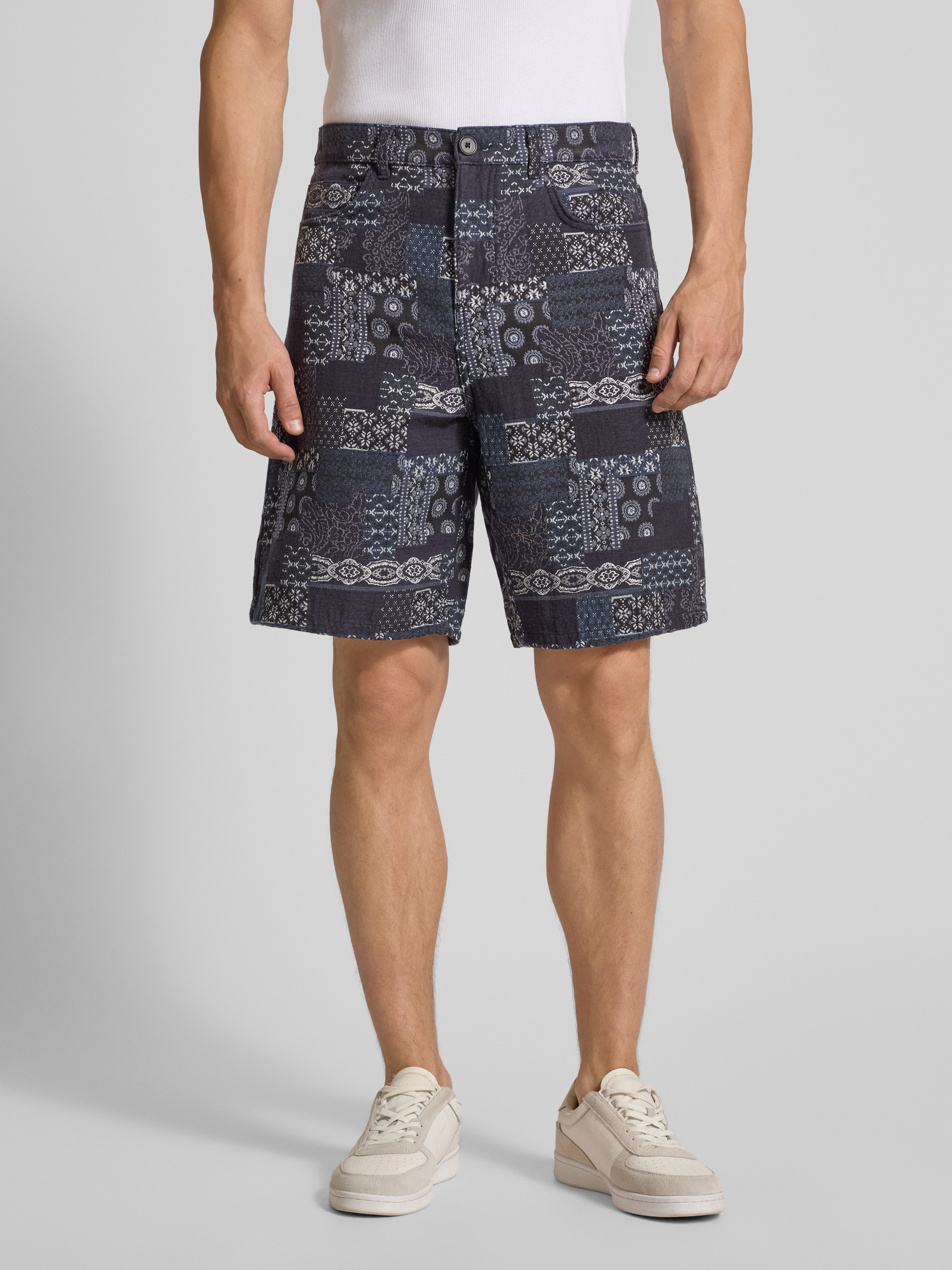 Korte broek in all-over look, model 'Ryder' in marineblauw