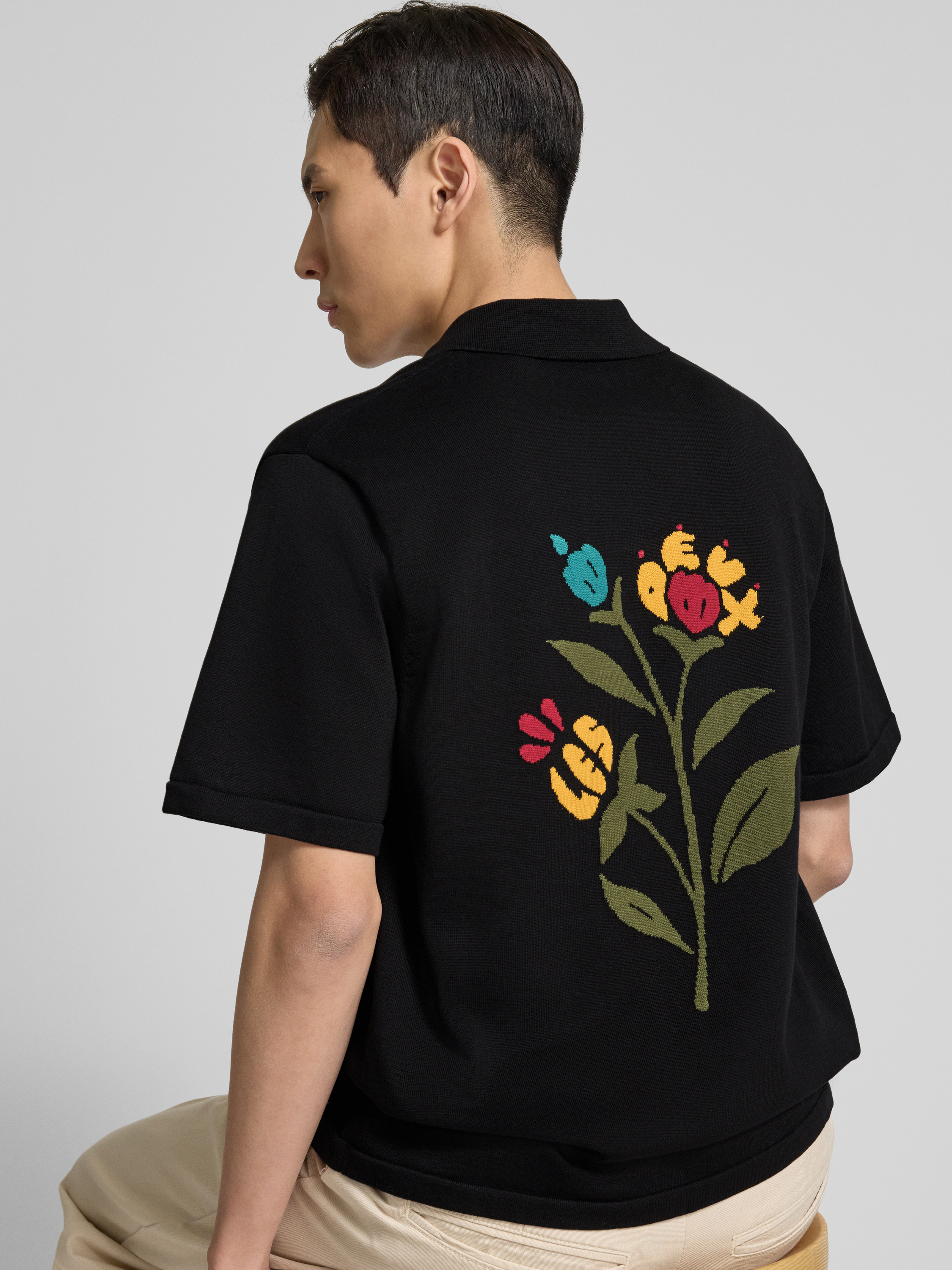 Regular fit vrijetijdsoverhemd met 1/2-mouwen, model 'Geoffroy' in zwart