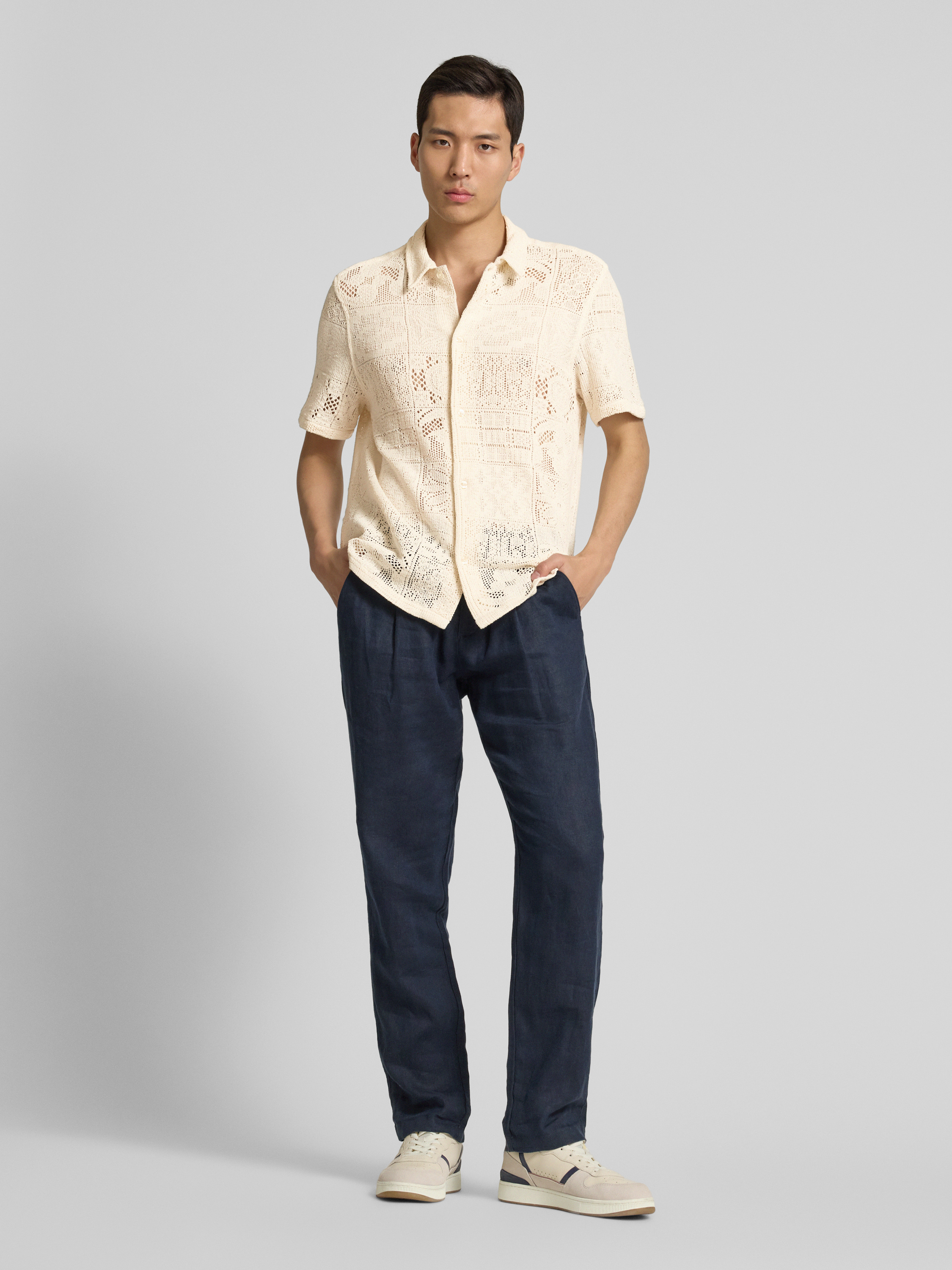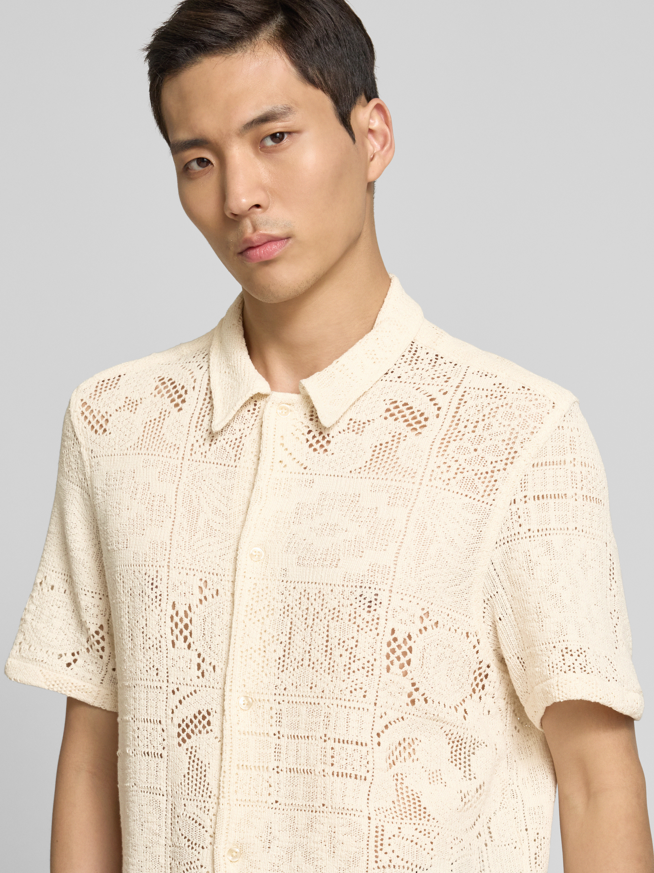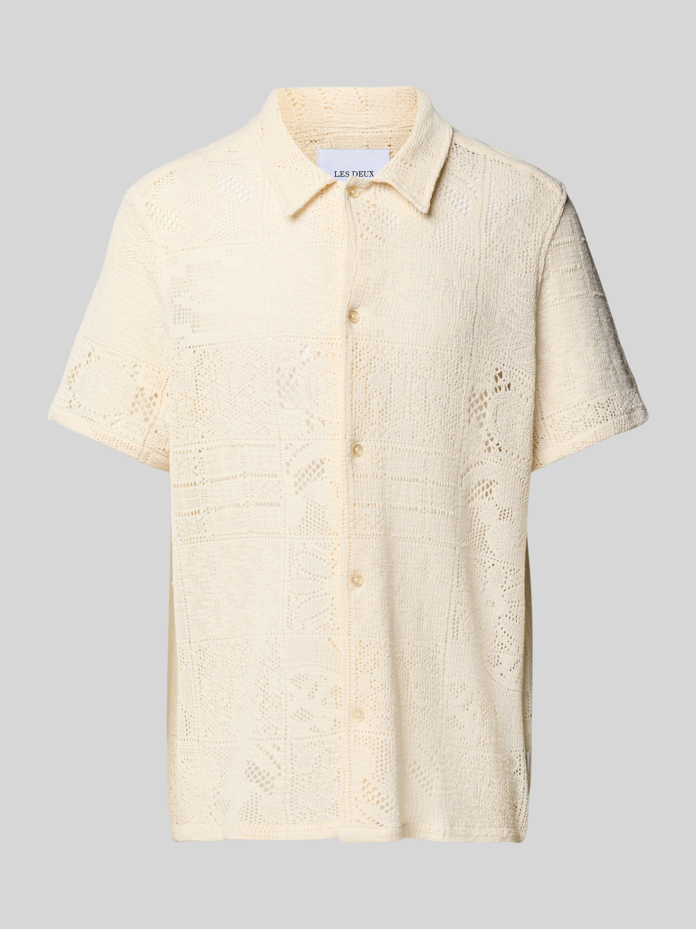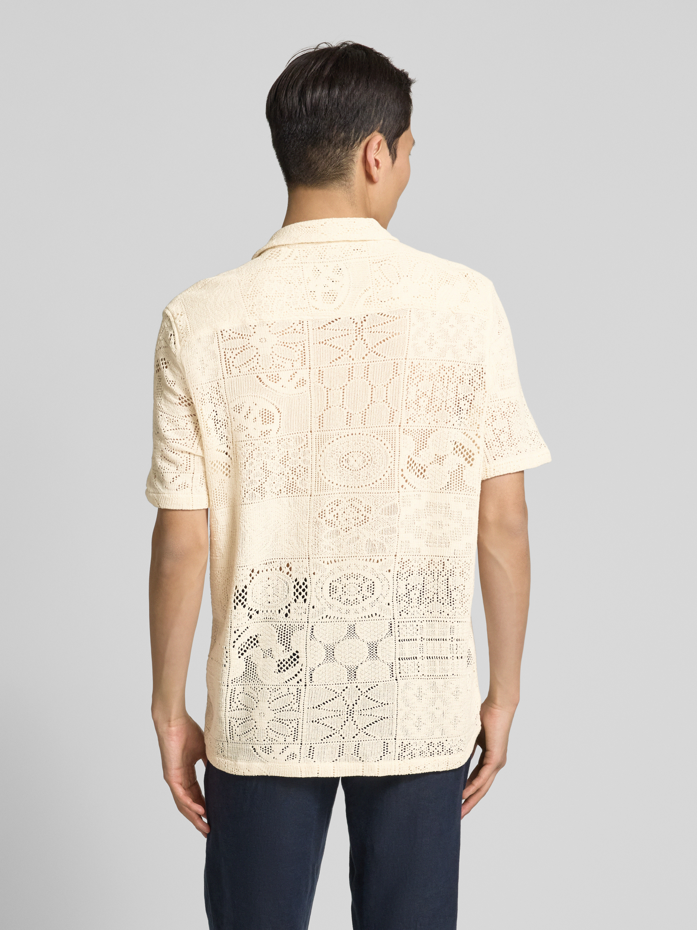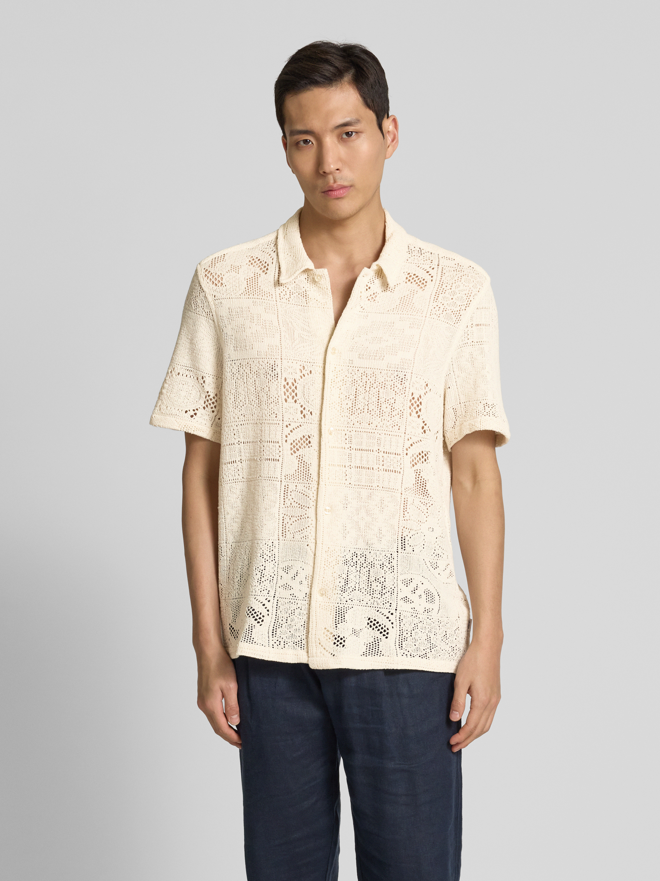 Regular fit vrijetijdsoverhemd met broderie anglaise, model 'Hector' in offwhite