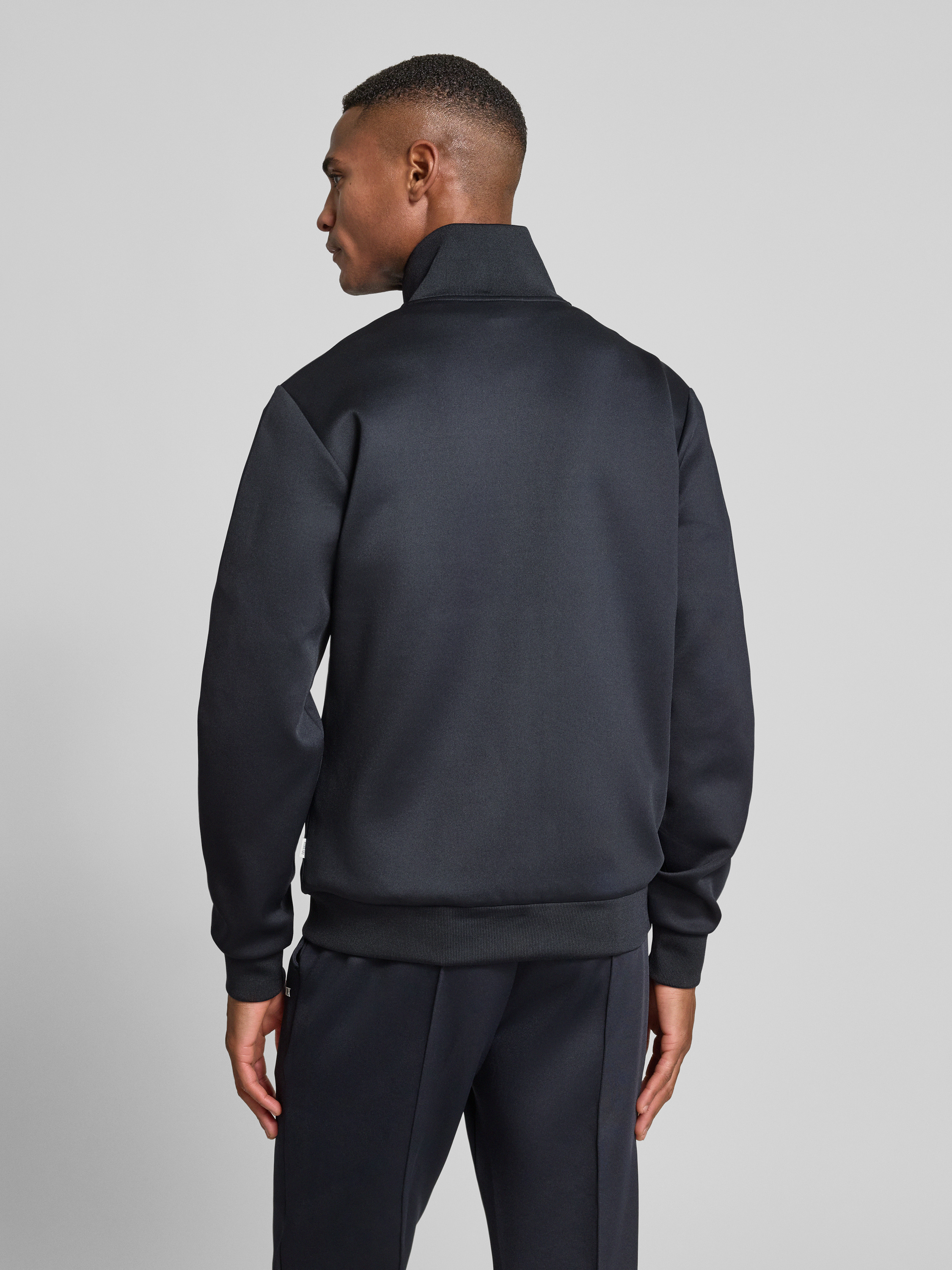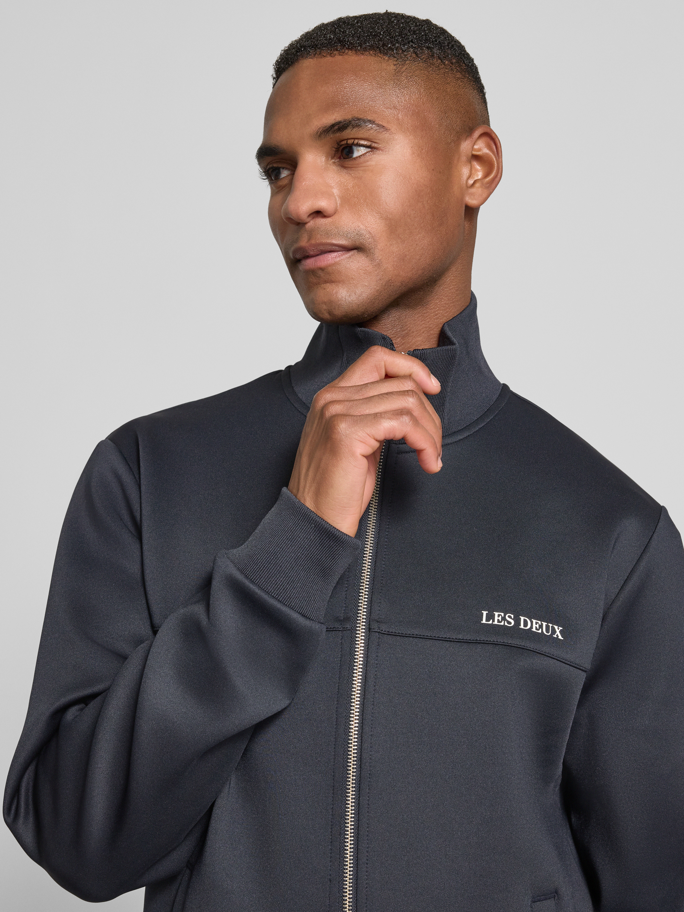 Sweatjack met labelprint, model 'Ballier' in marineblauw