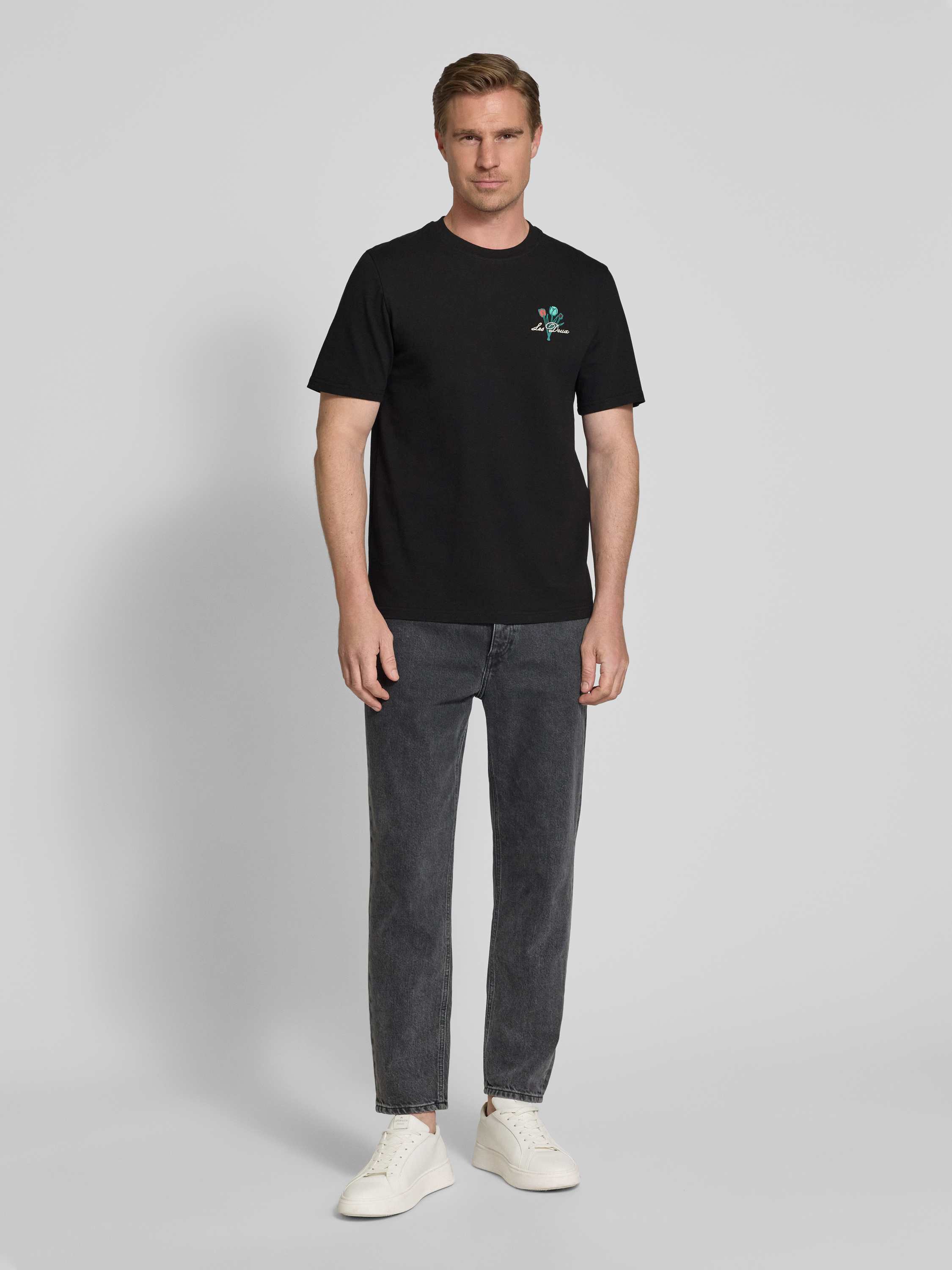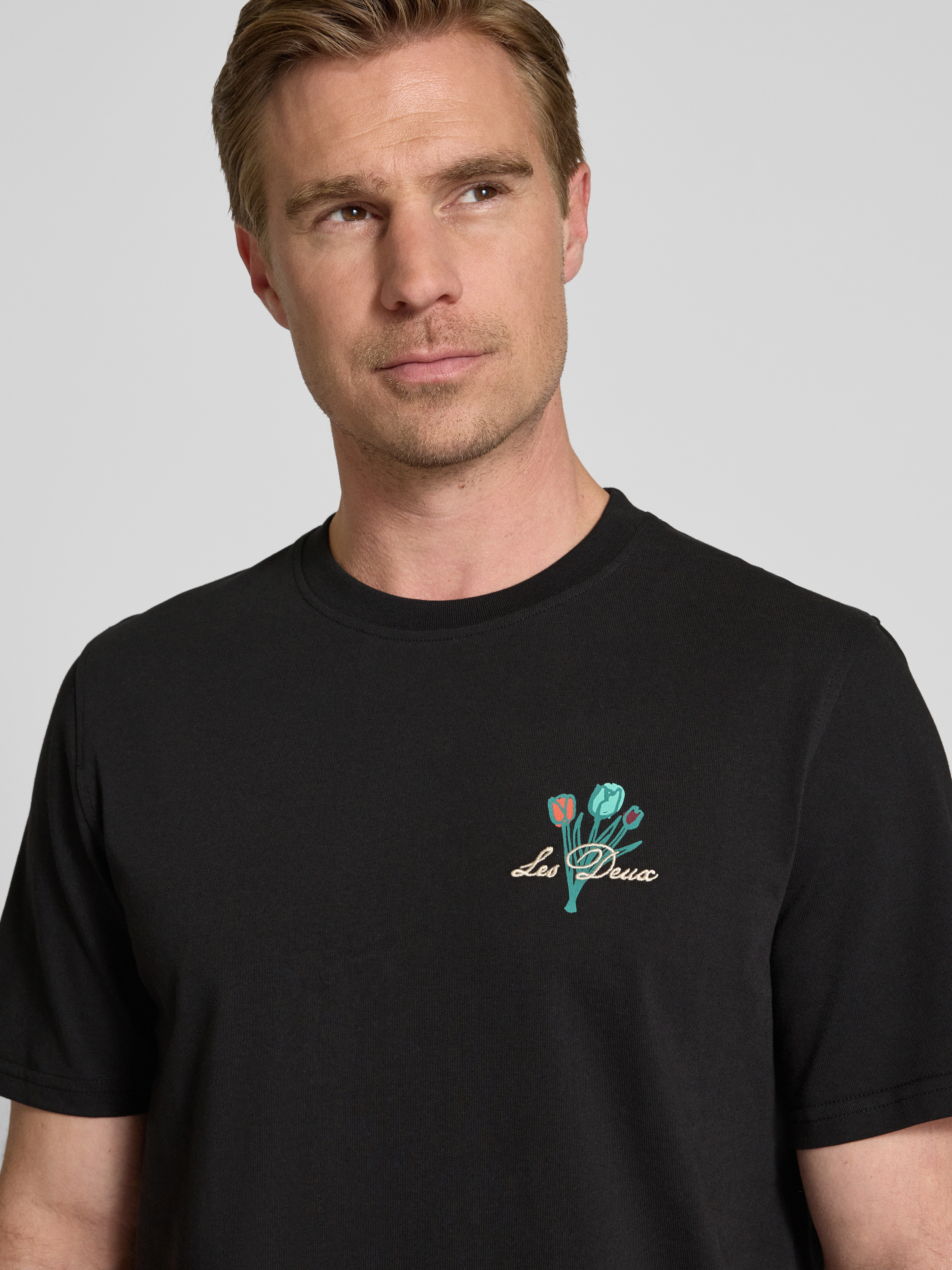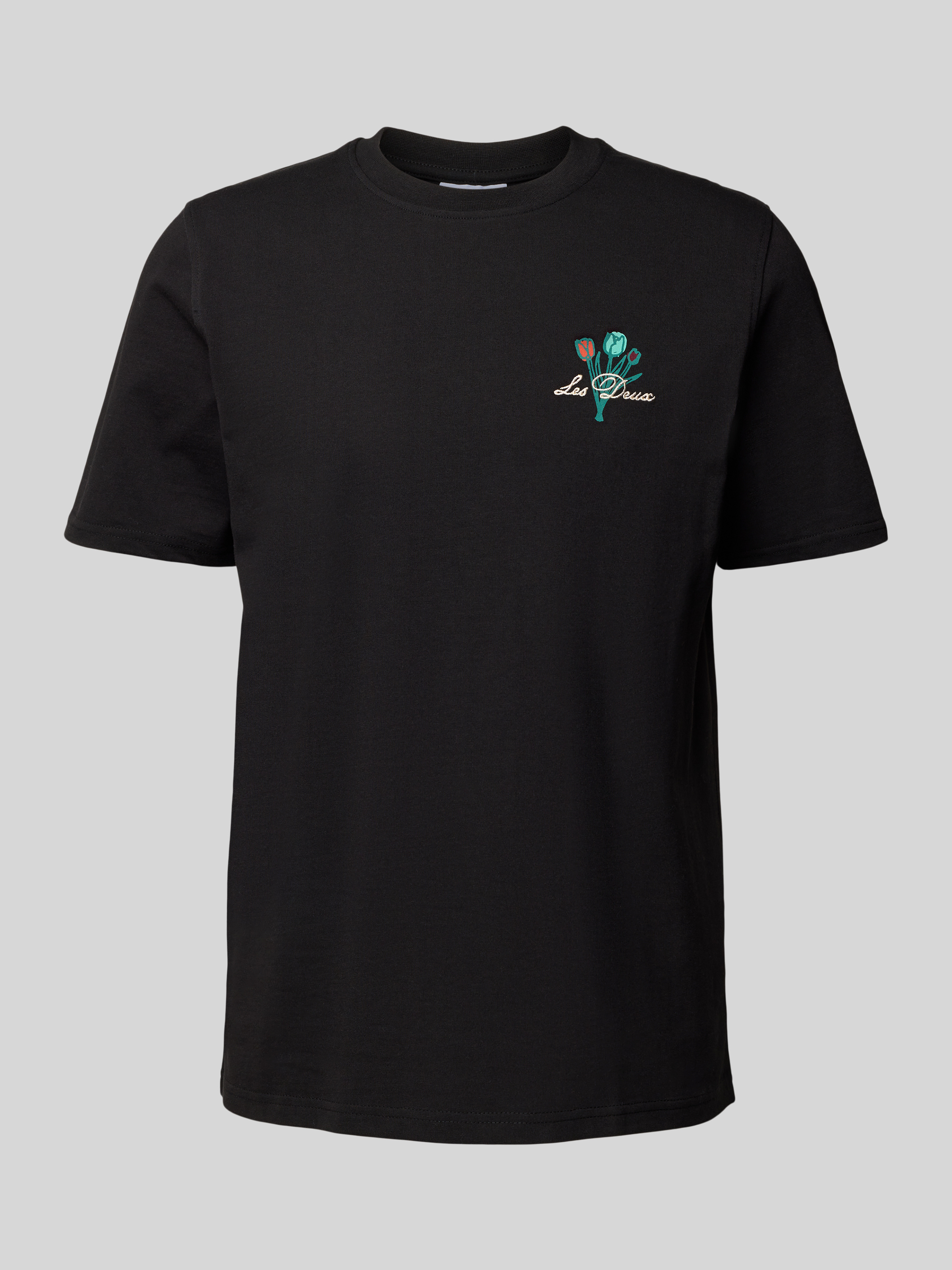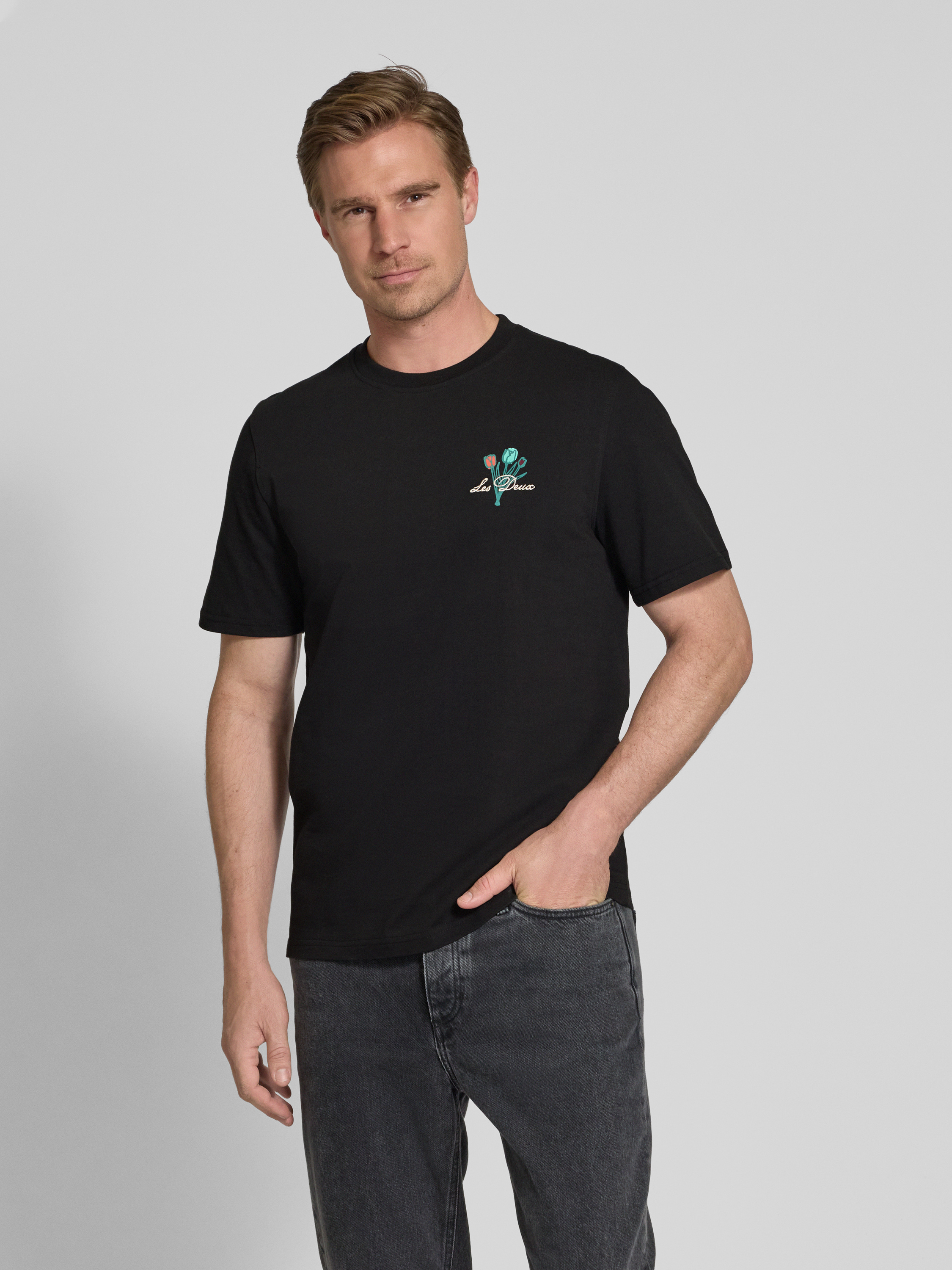 T-shirt met labelstitching, model 'Bruno' in zwart