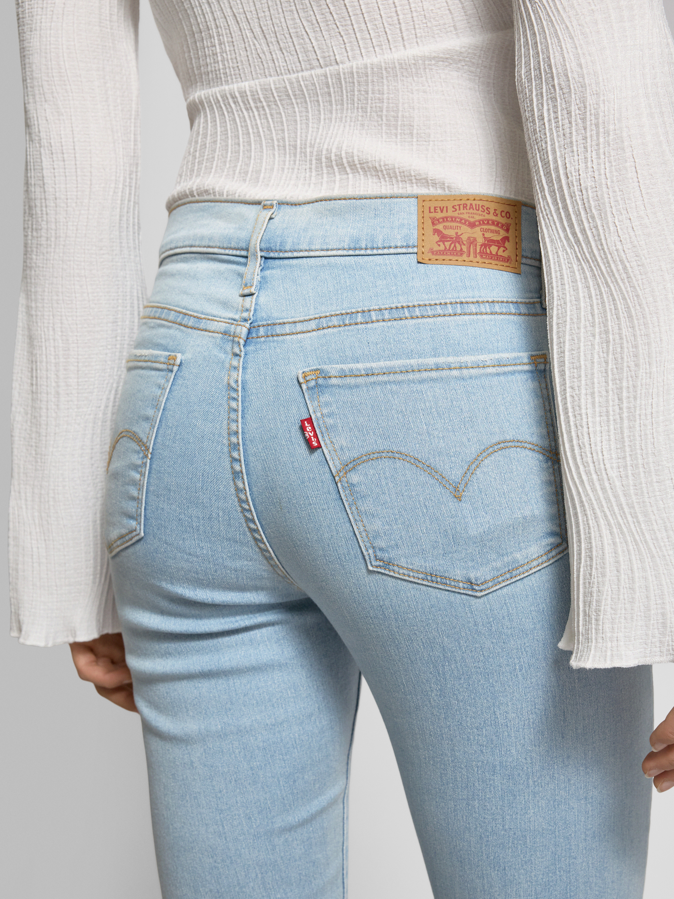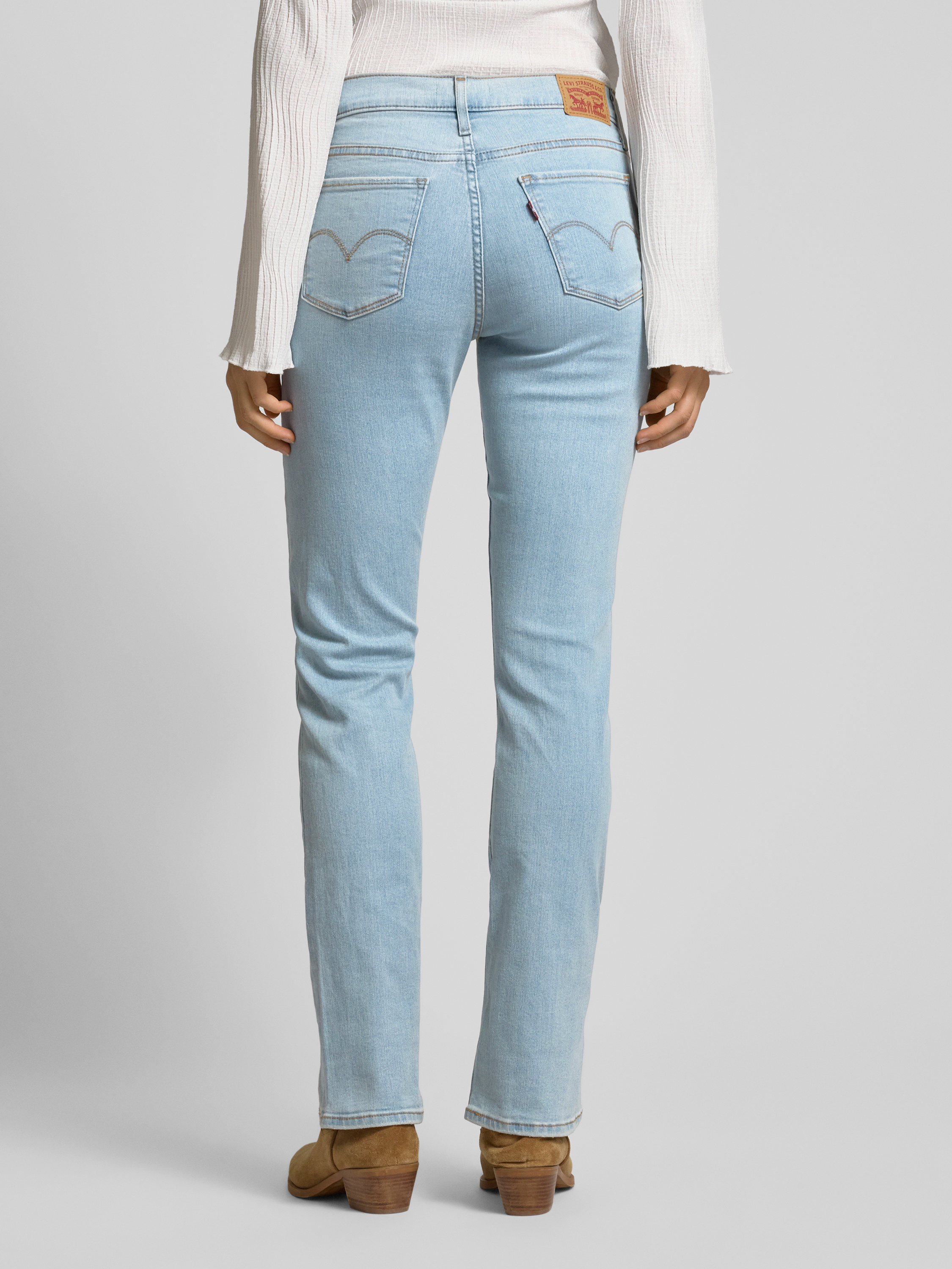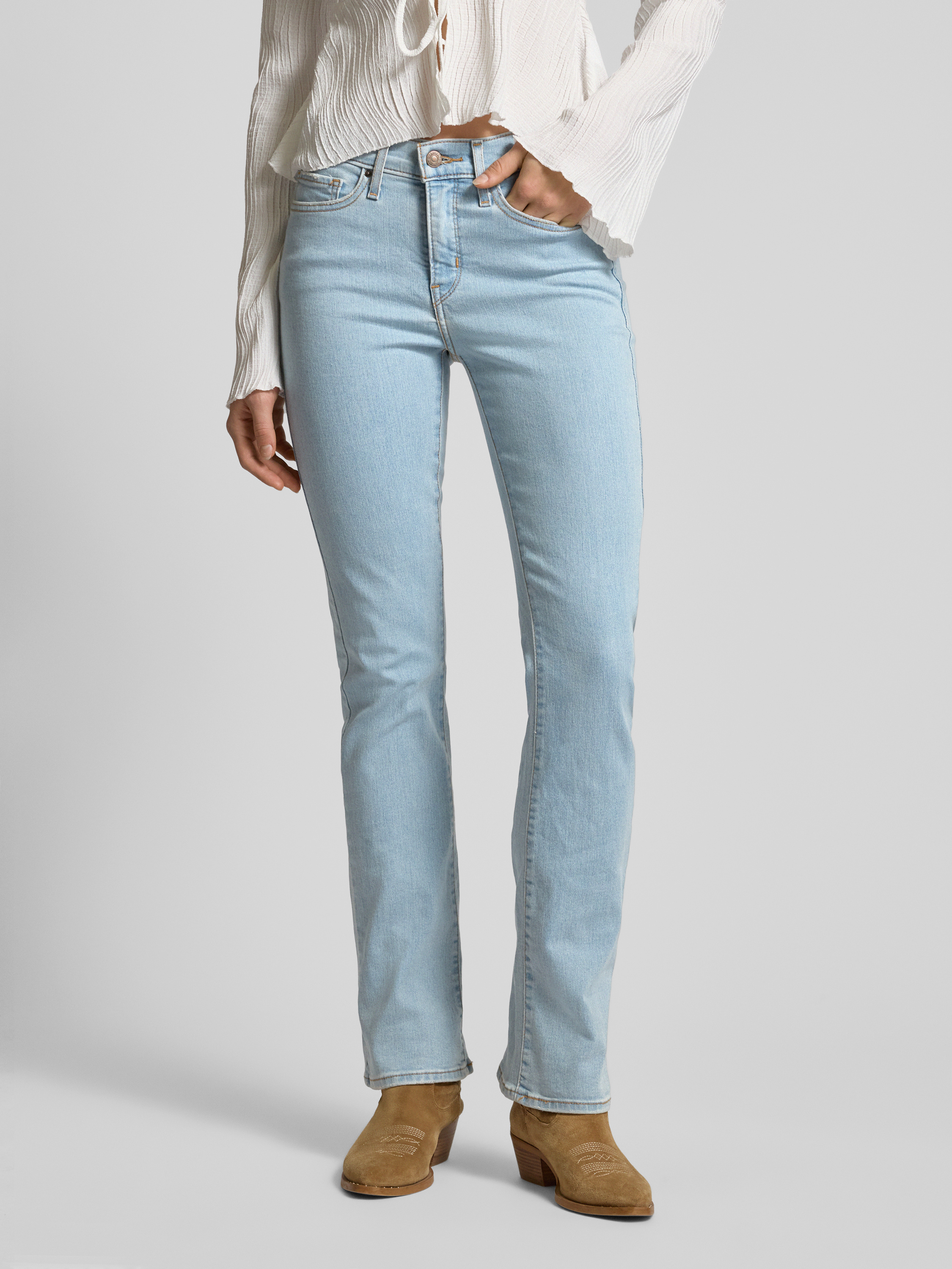 Slim fit bell bottom in 5-pocketmodel, model '315' in lichtblauw