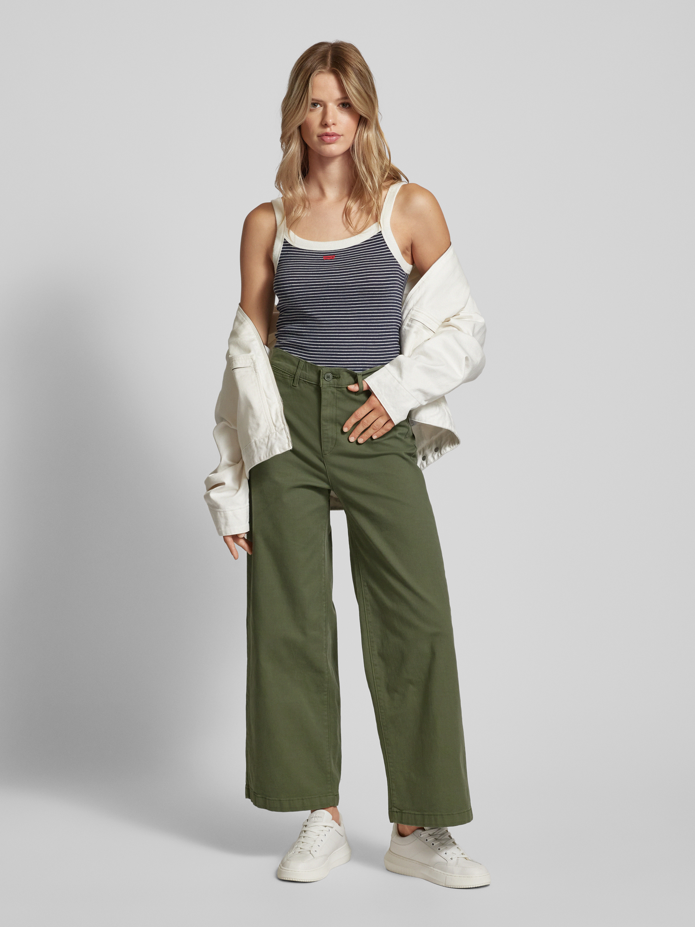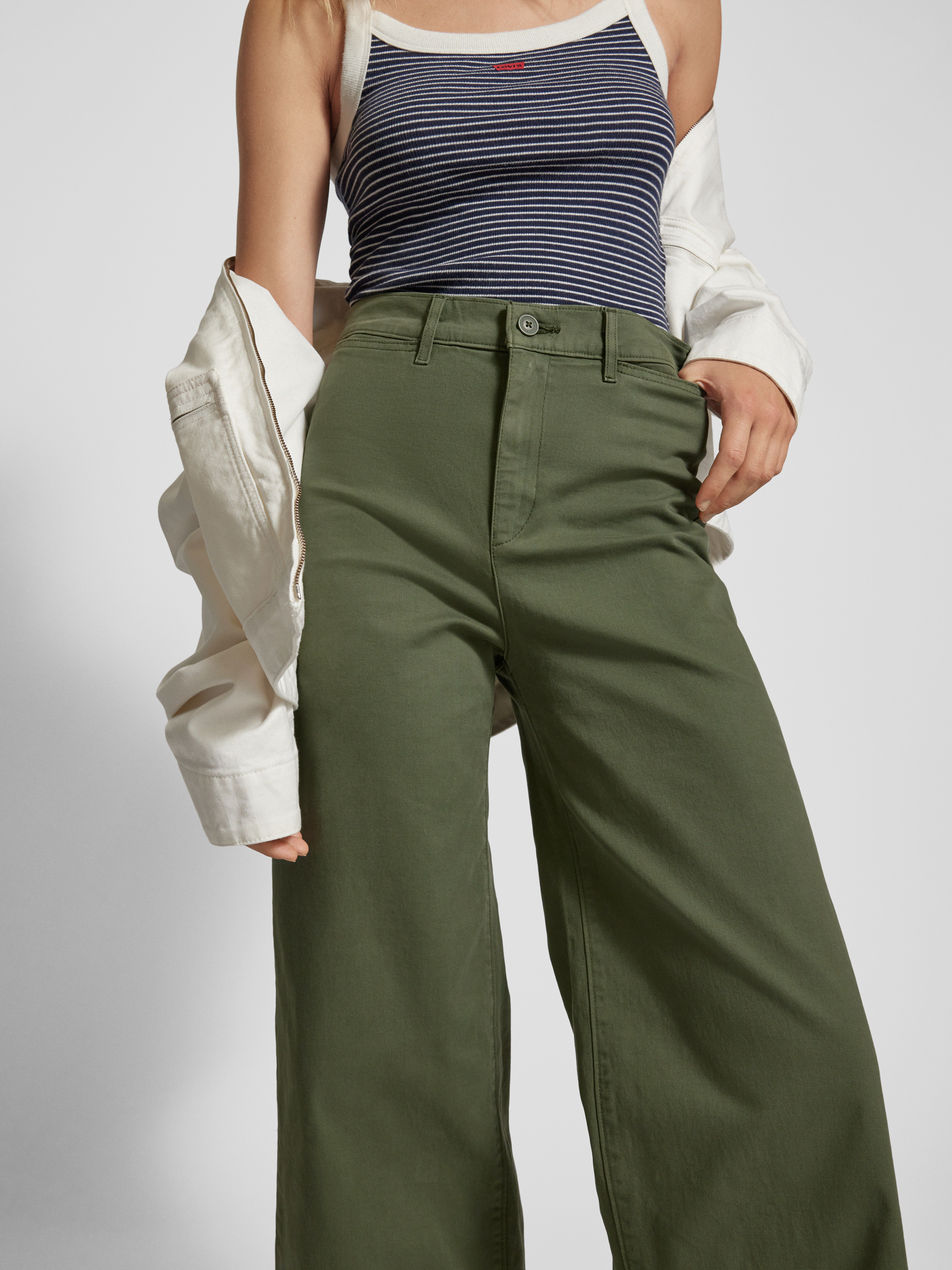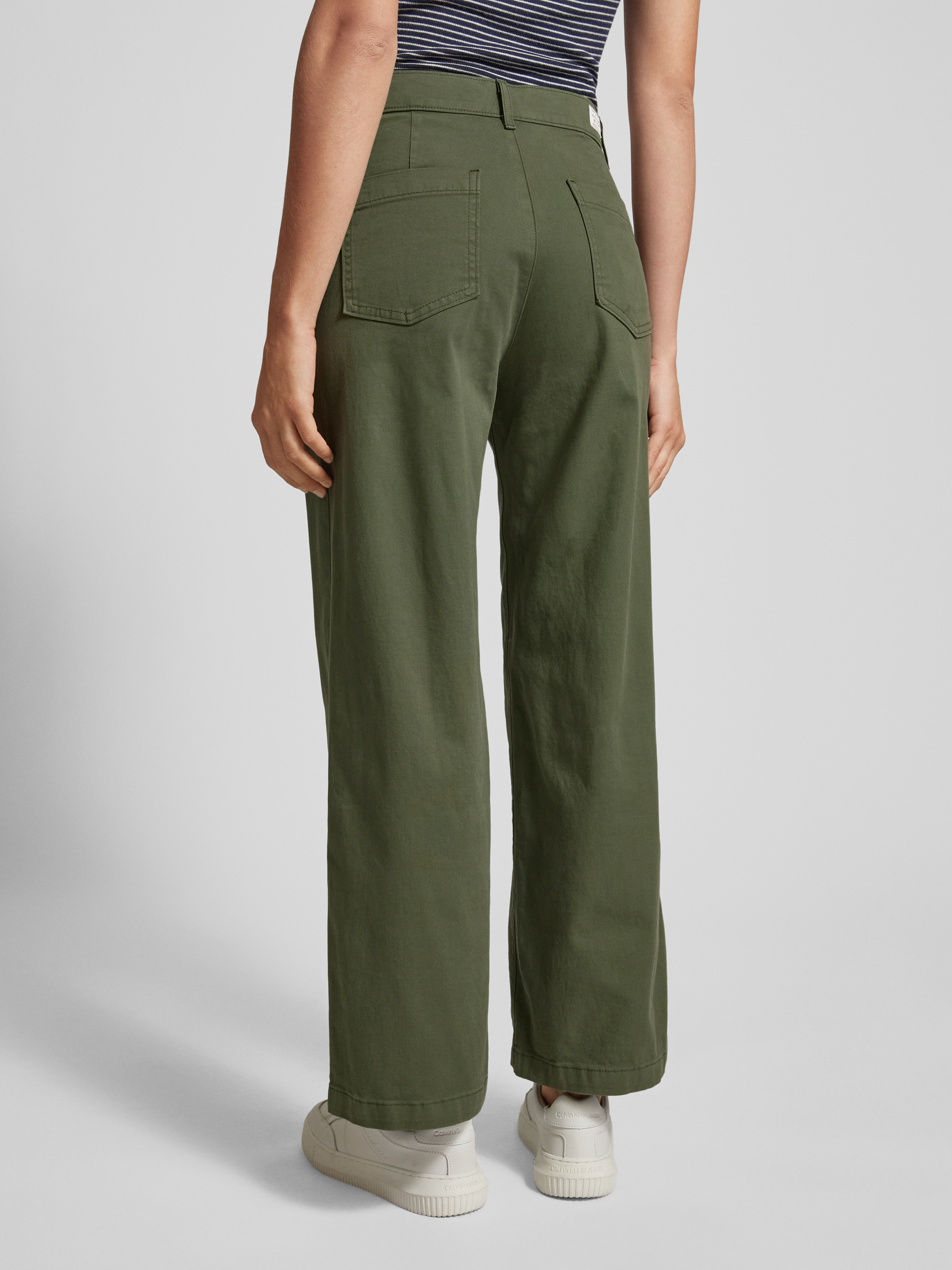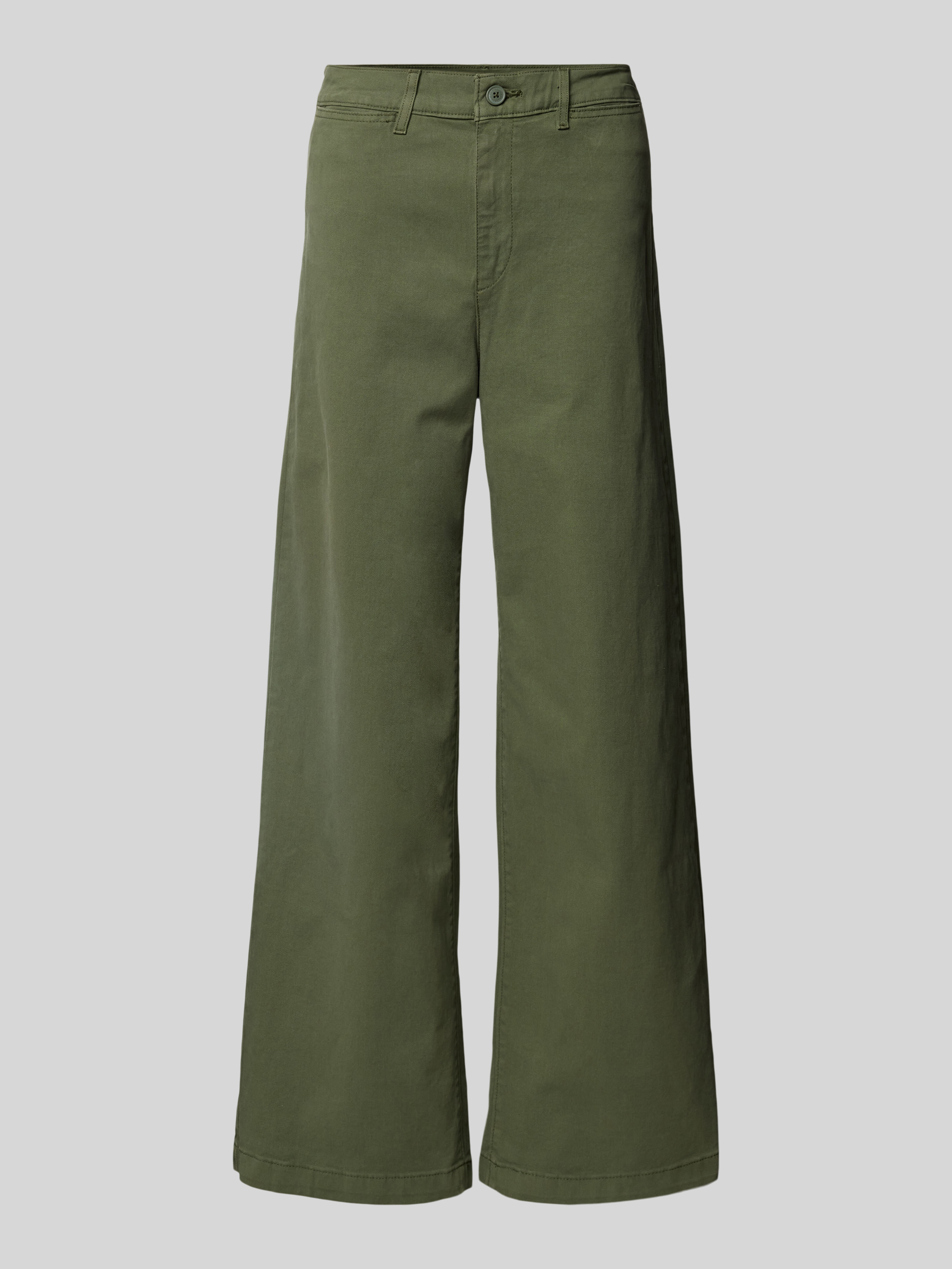 Wide leg chino met steekzakken, model 'VINTAGE' in olijfgroen