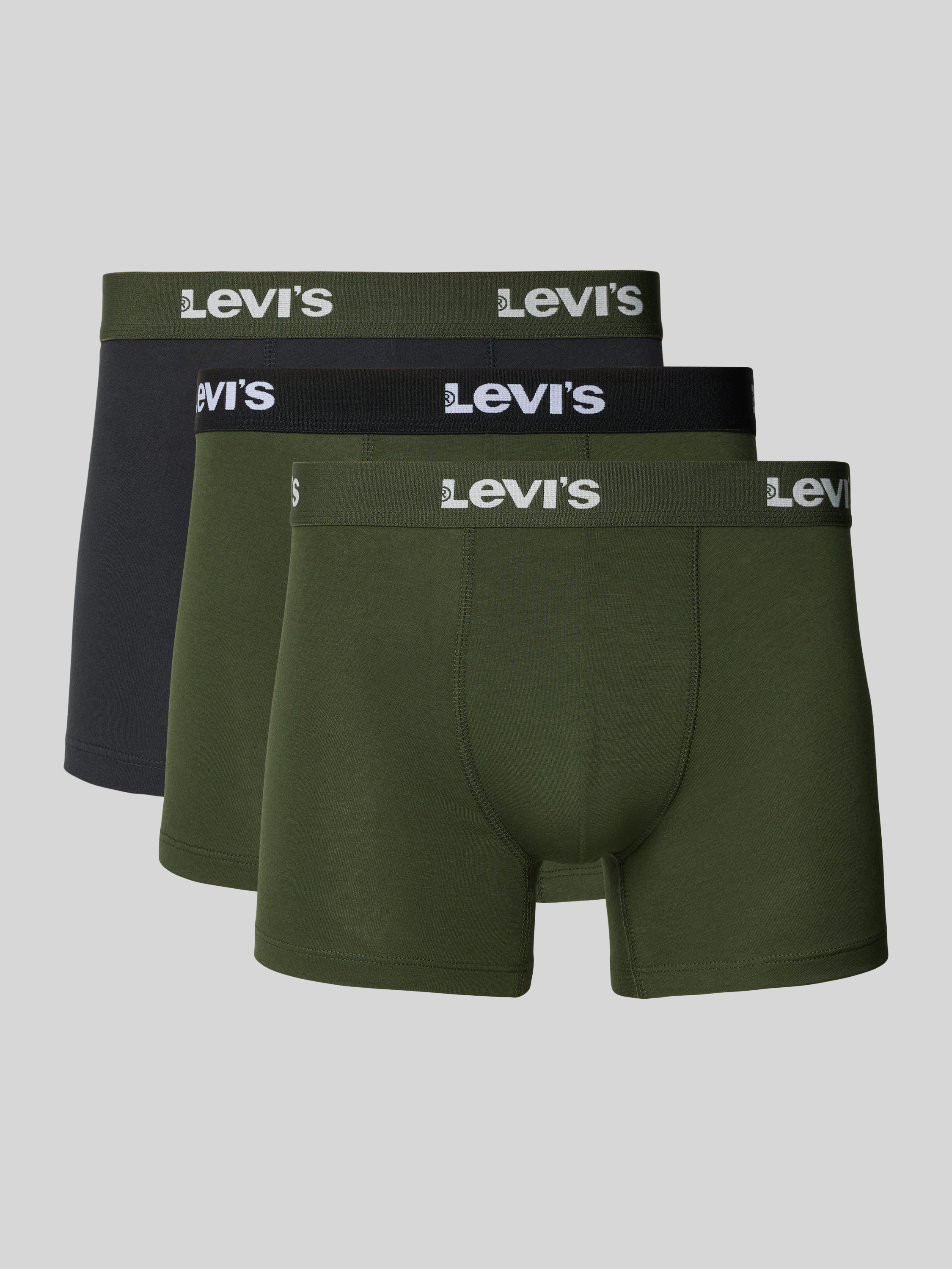 Boxershort met elastische logoband in een set van 3 stuks in olijfgroen