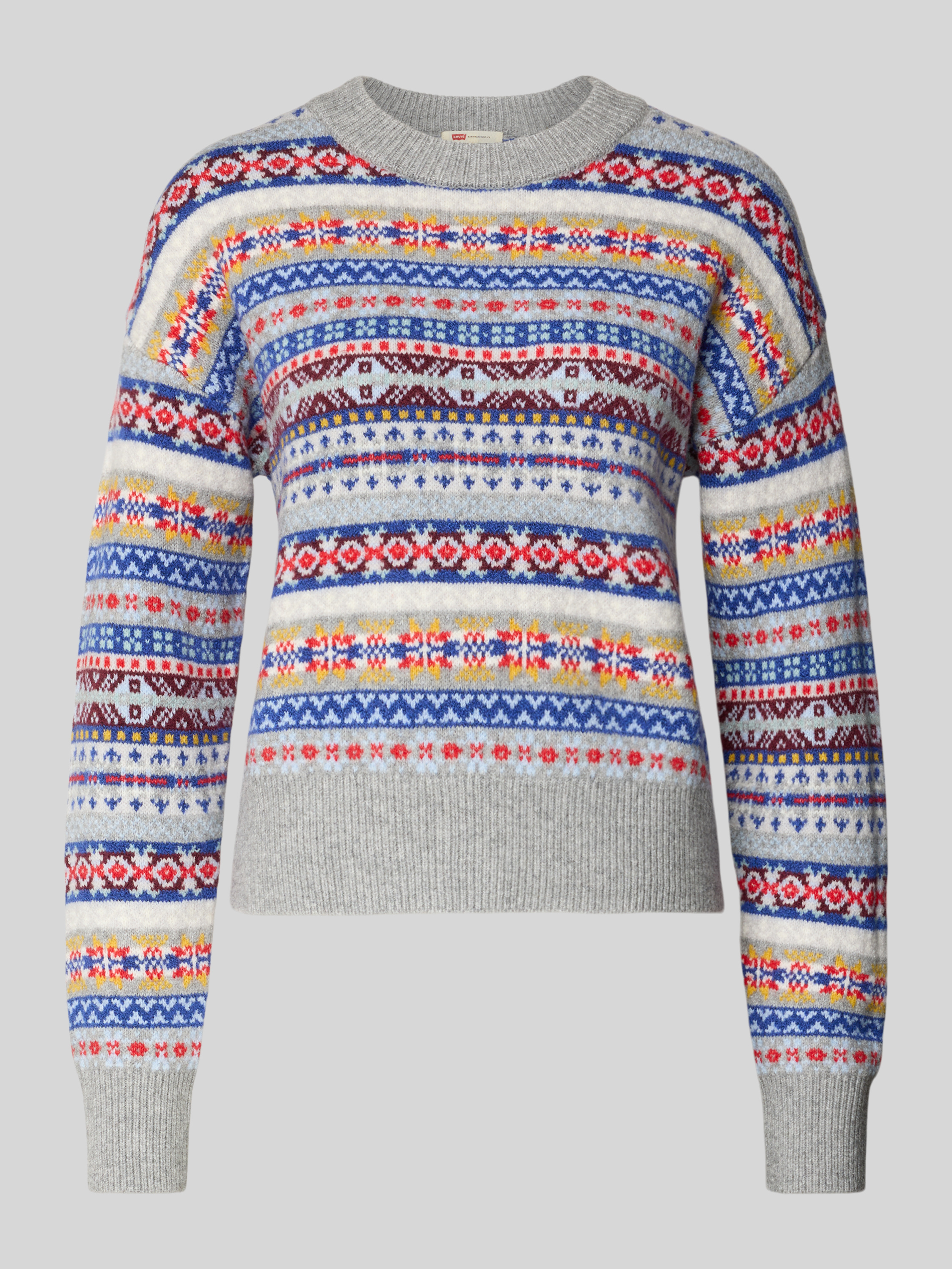 Gebreide pullover van wolmix met ronde hals in middengrijs