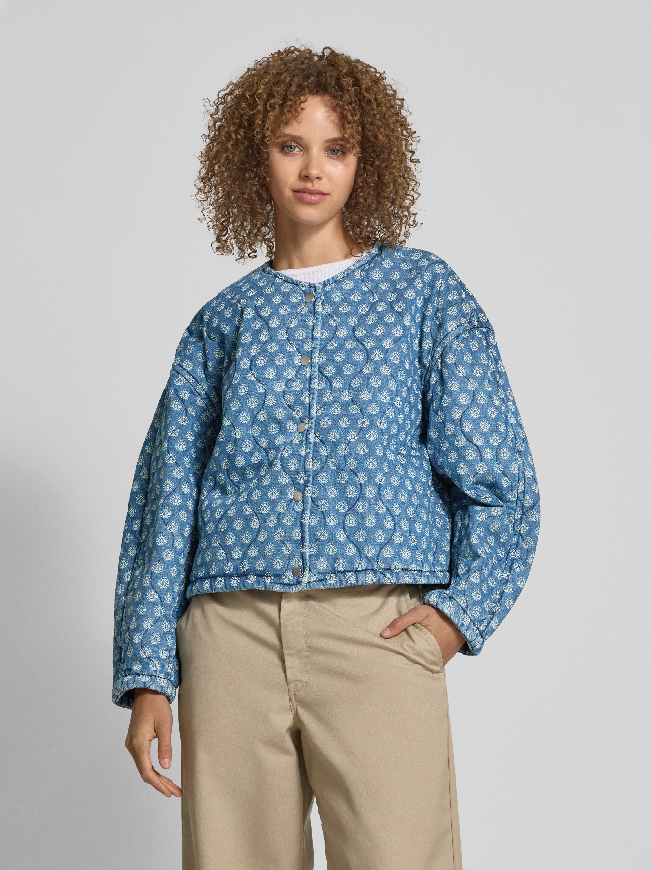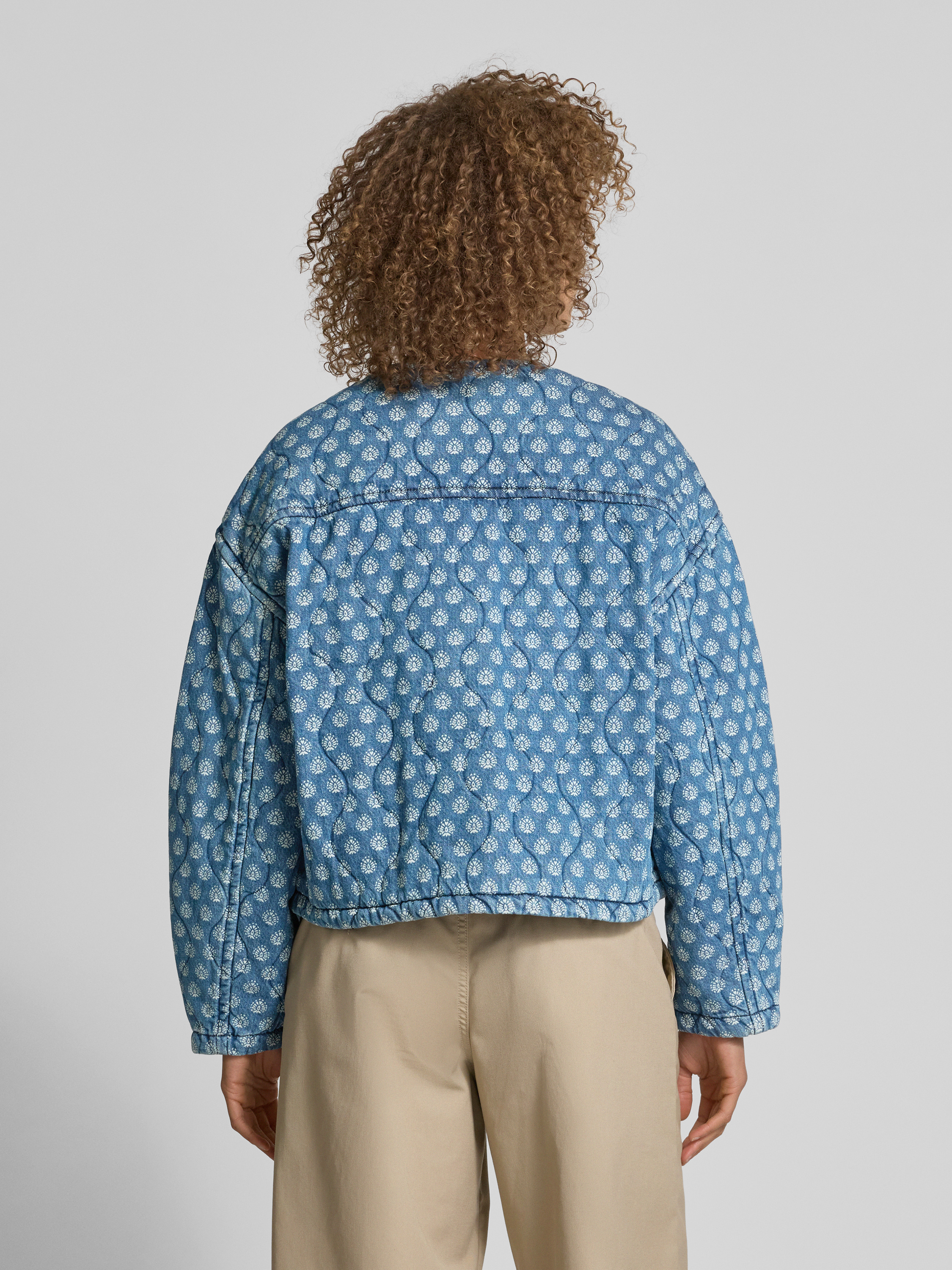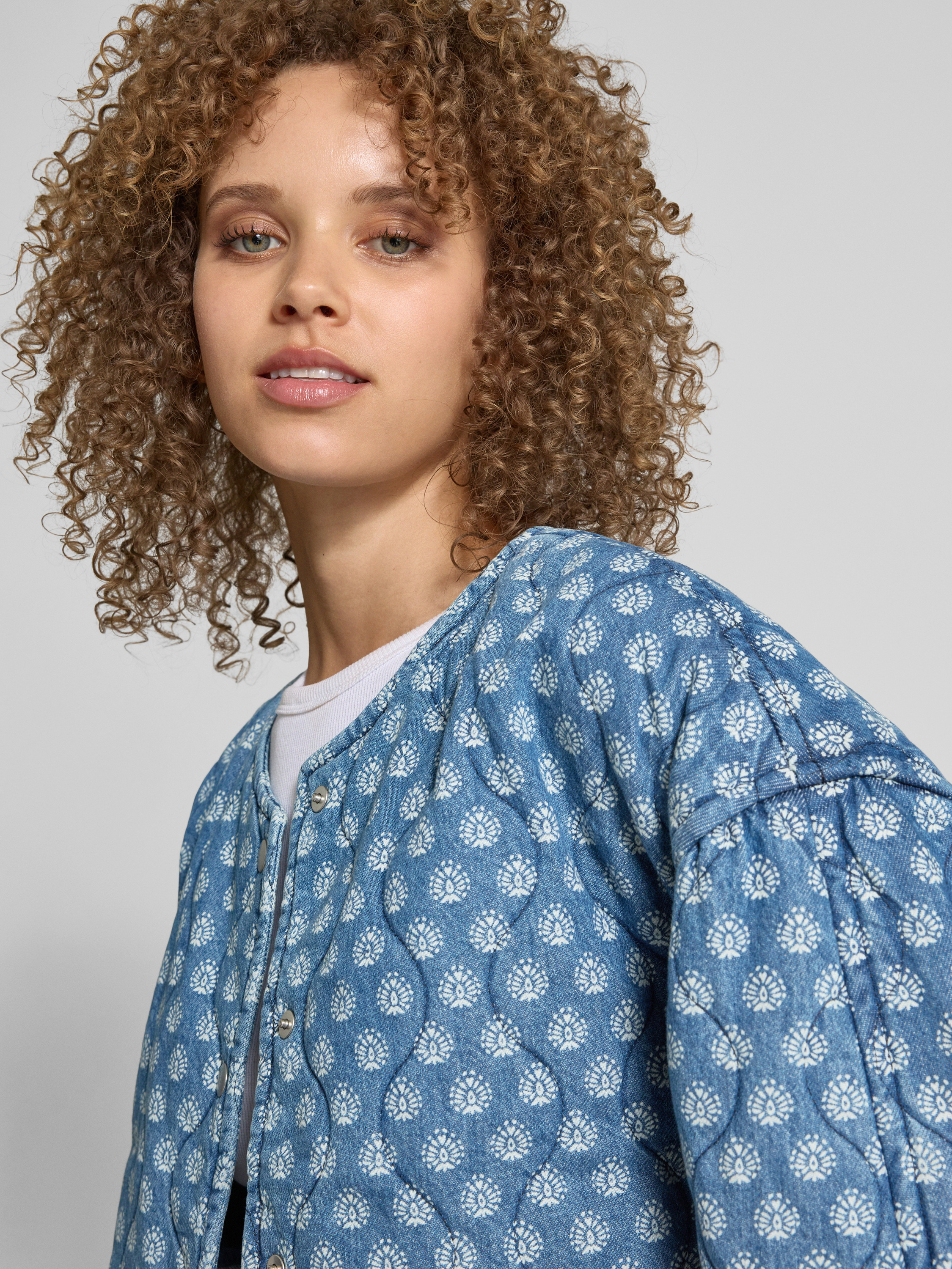 Gewatteerd jack met extra brede schouders, model 'RUMER' in jeansblauw