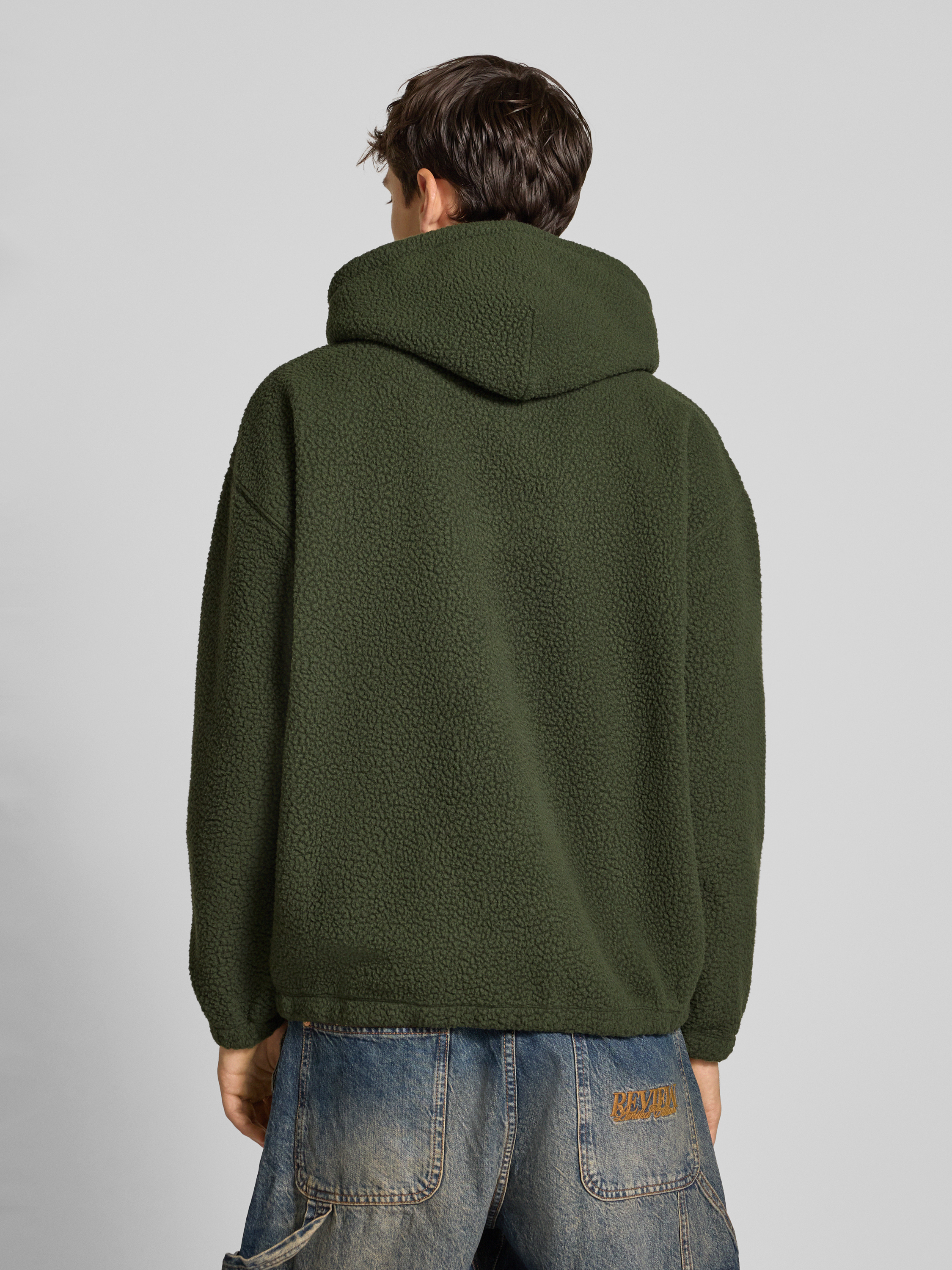 Hoodie met teddybont, model 'COZY UP' in donkergroen