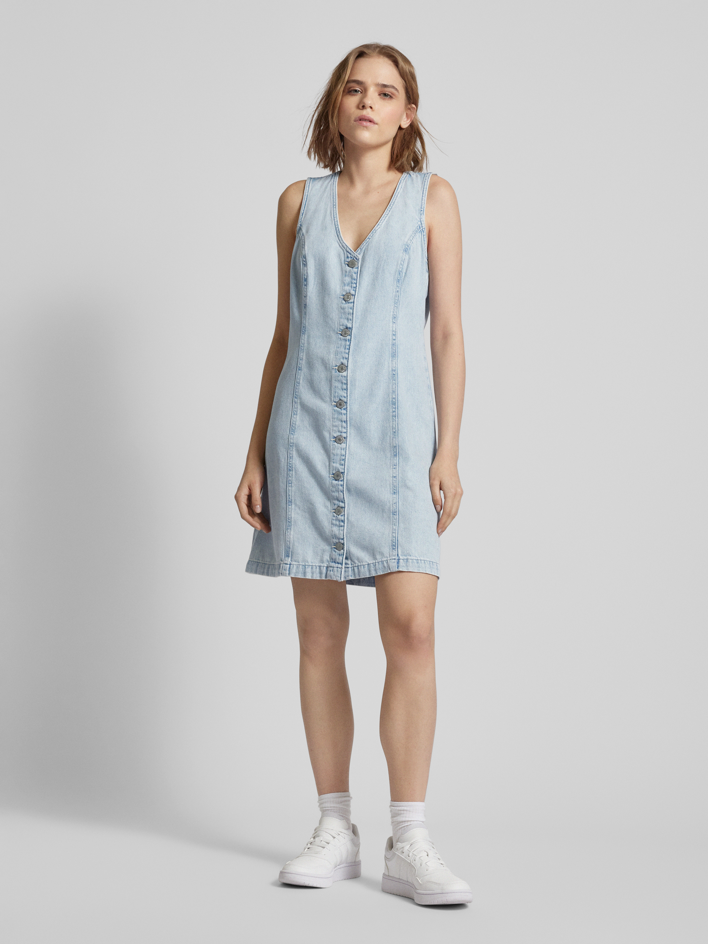 Jeansjurk met doorknoopsluiting, model 'THORA' in jeansblauw
