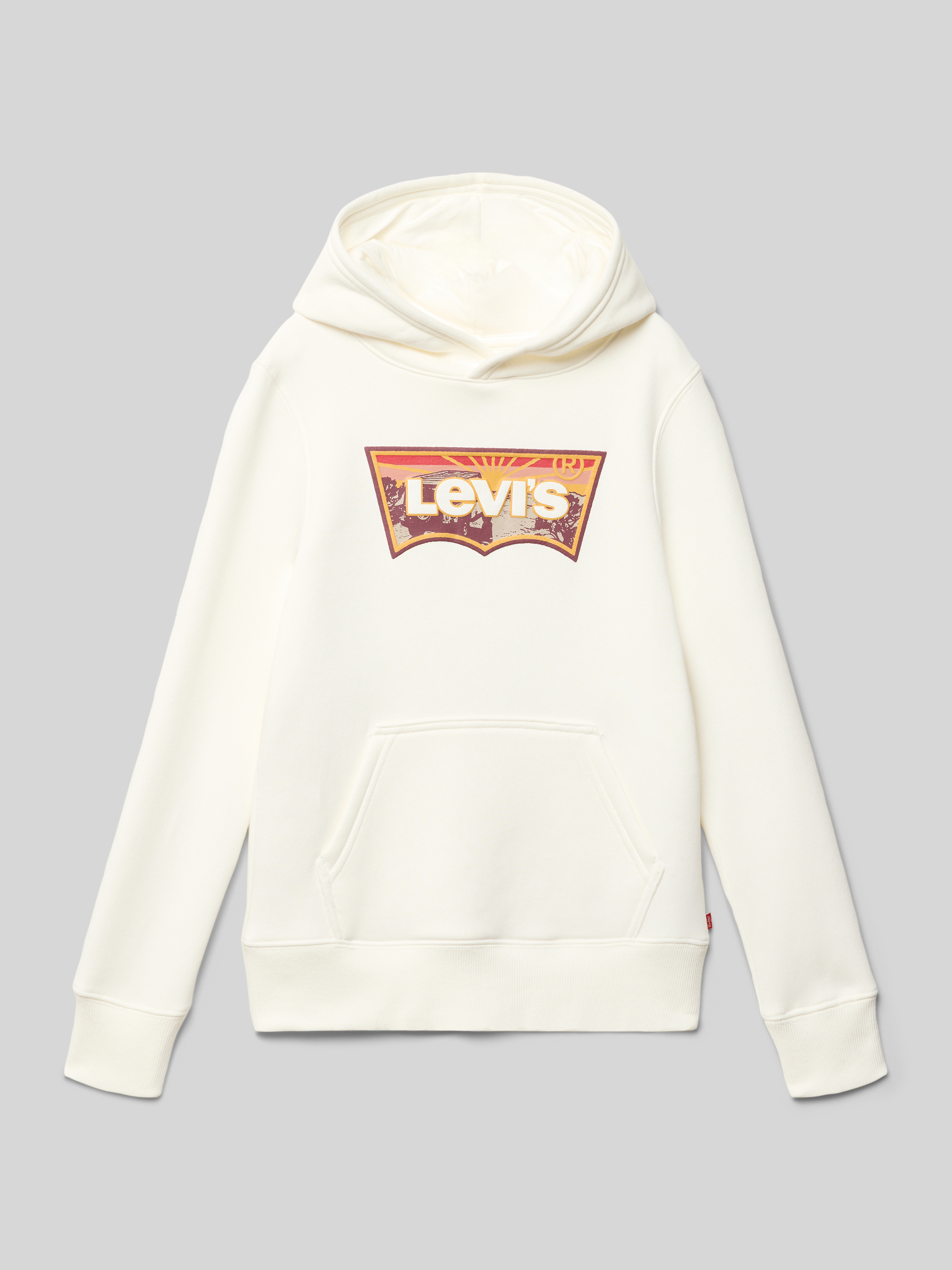 Hoodie met labelprint, model 'ROPE BATWING' in offwhite