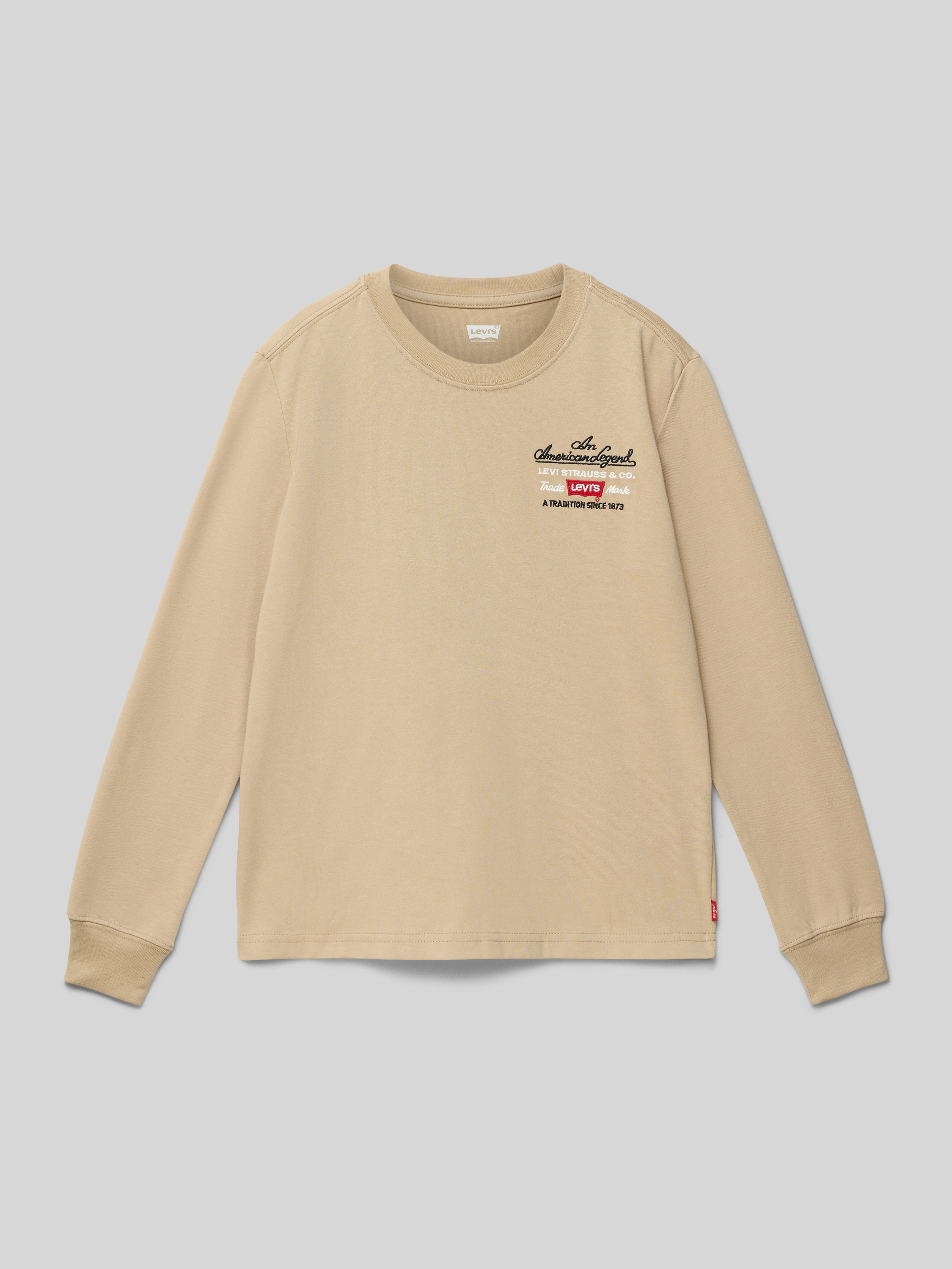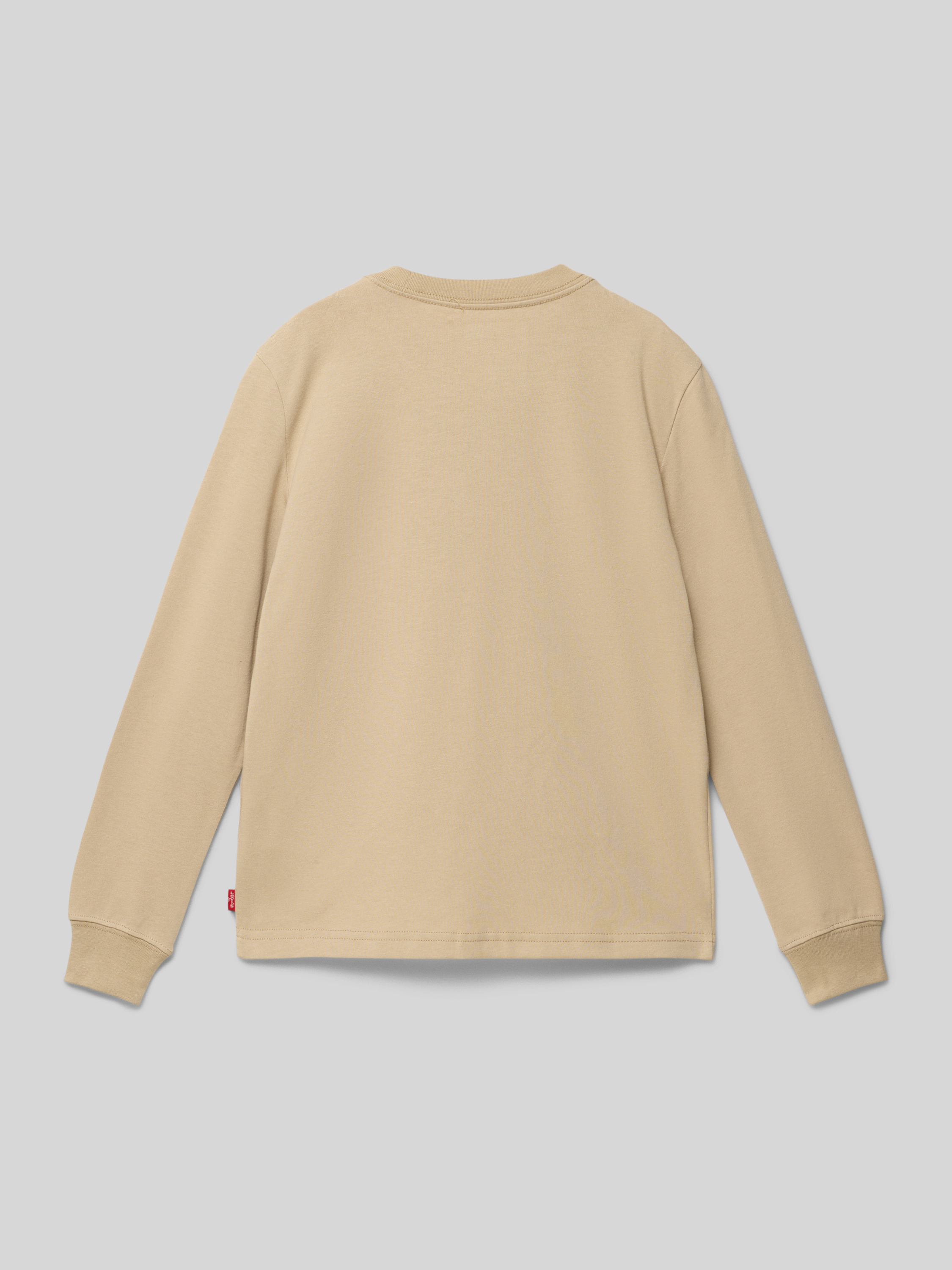Shirt met lange mouwen, ronde hals en labelstitching in zand