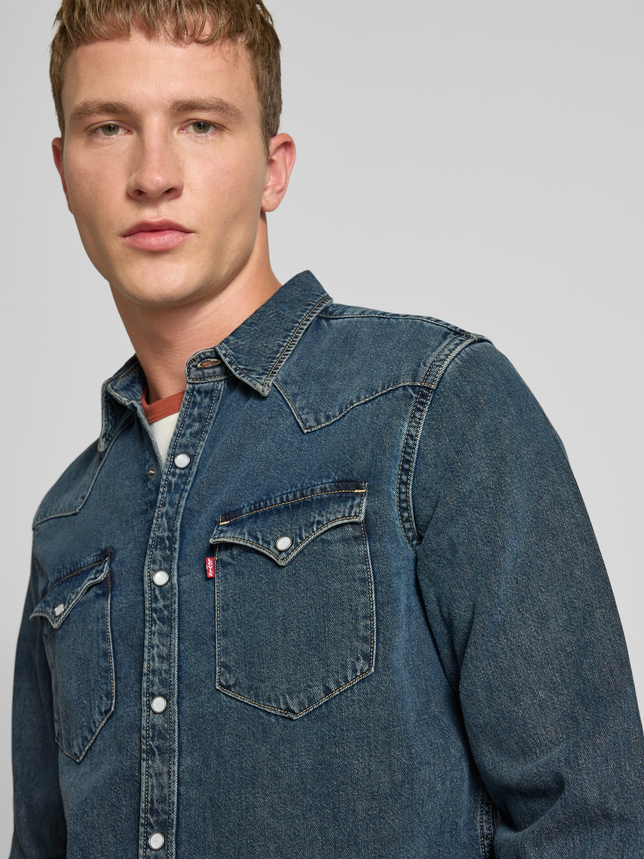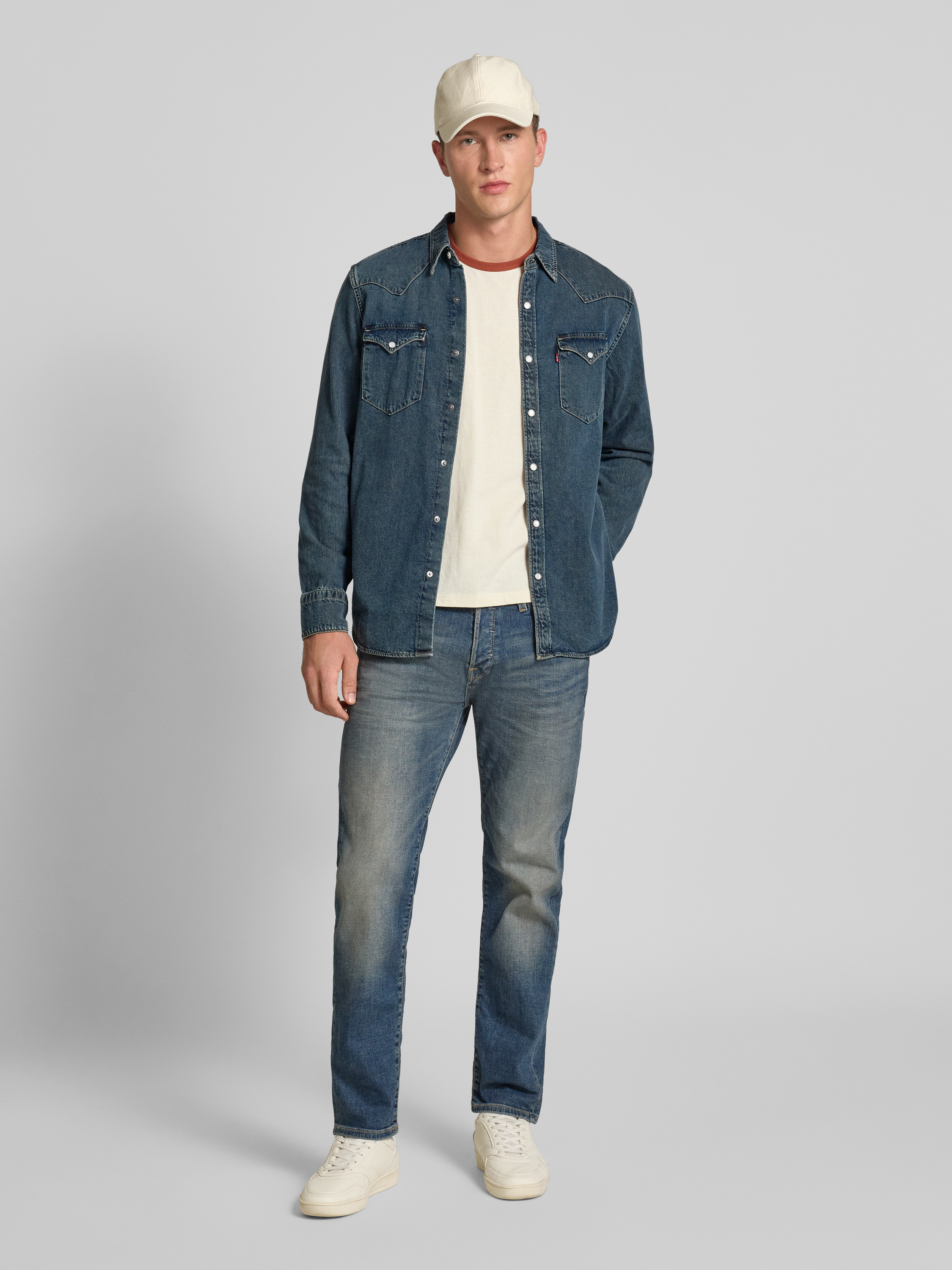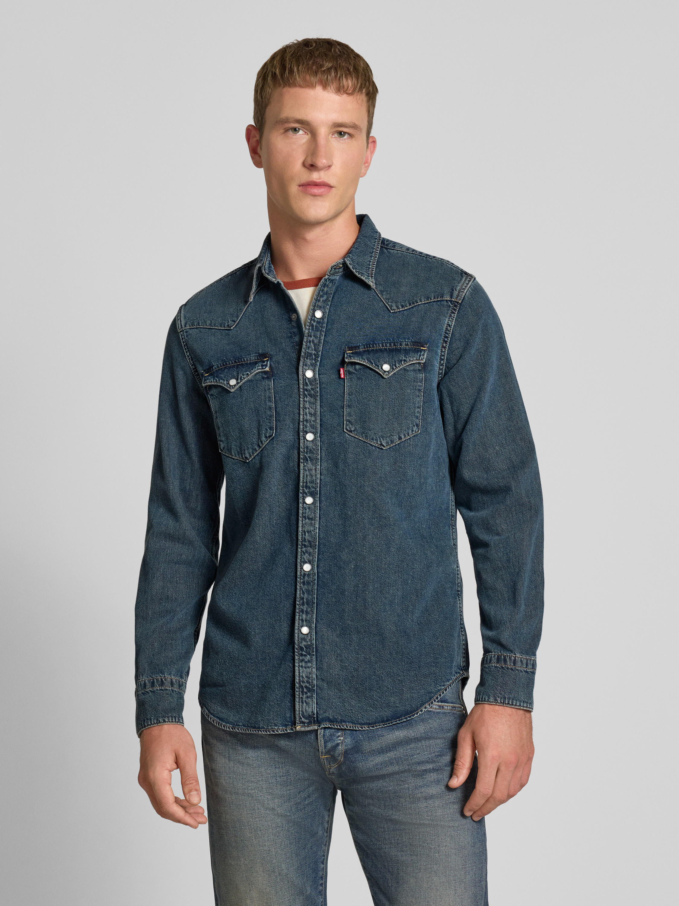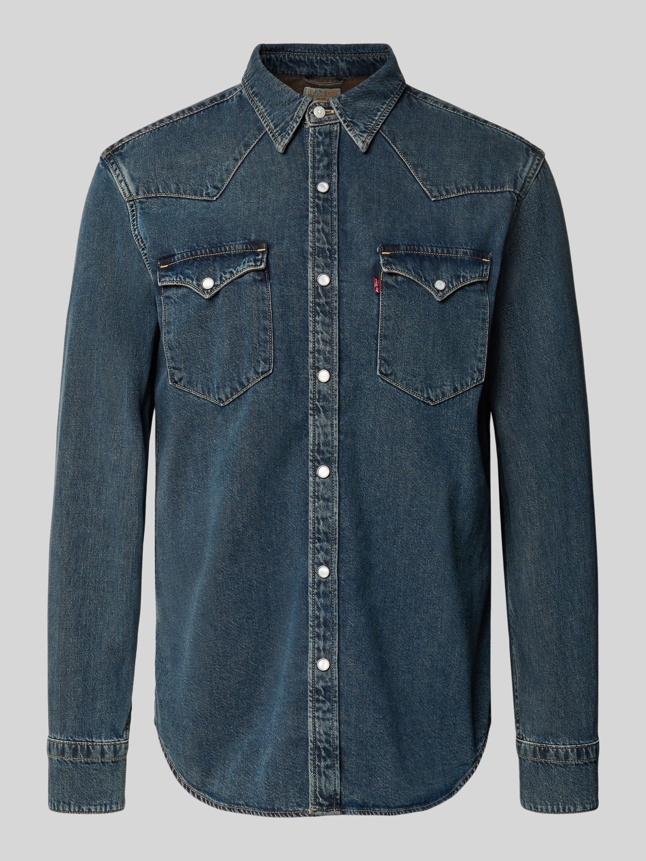 Regular fit jeansoverhemd met borstzakken en labeldetail in donkerblauw