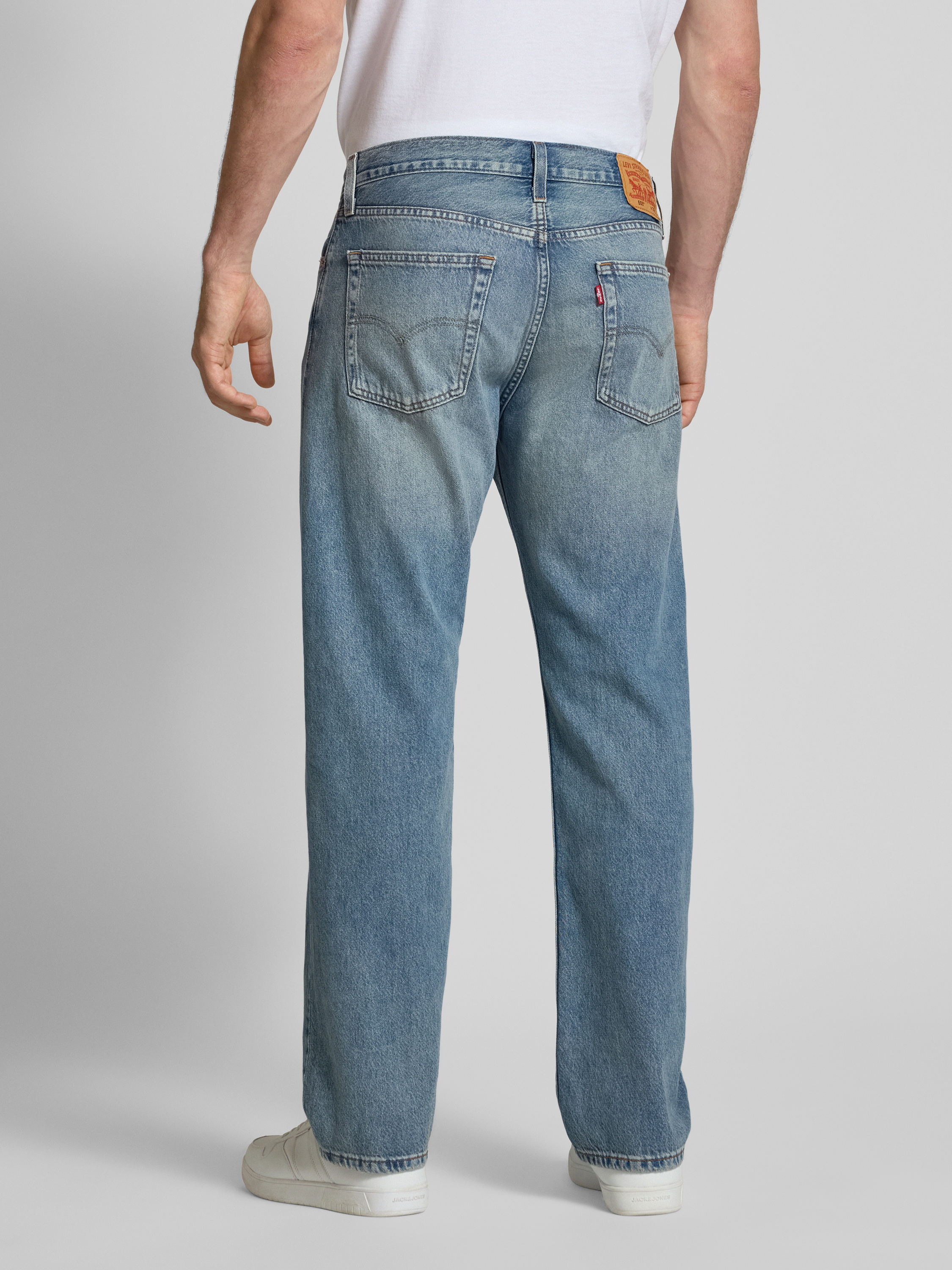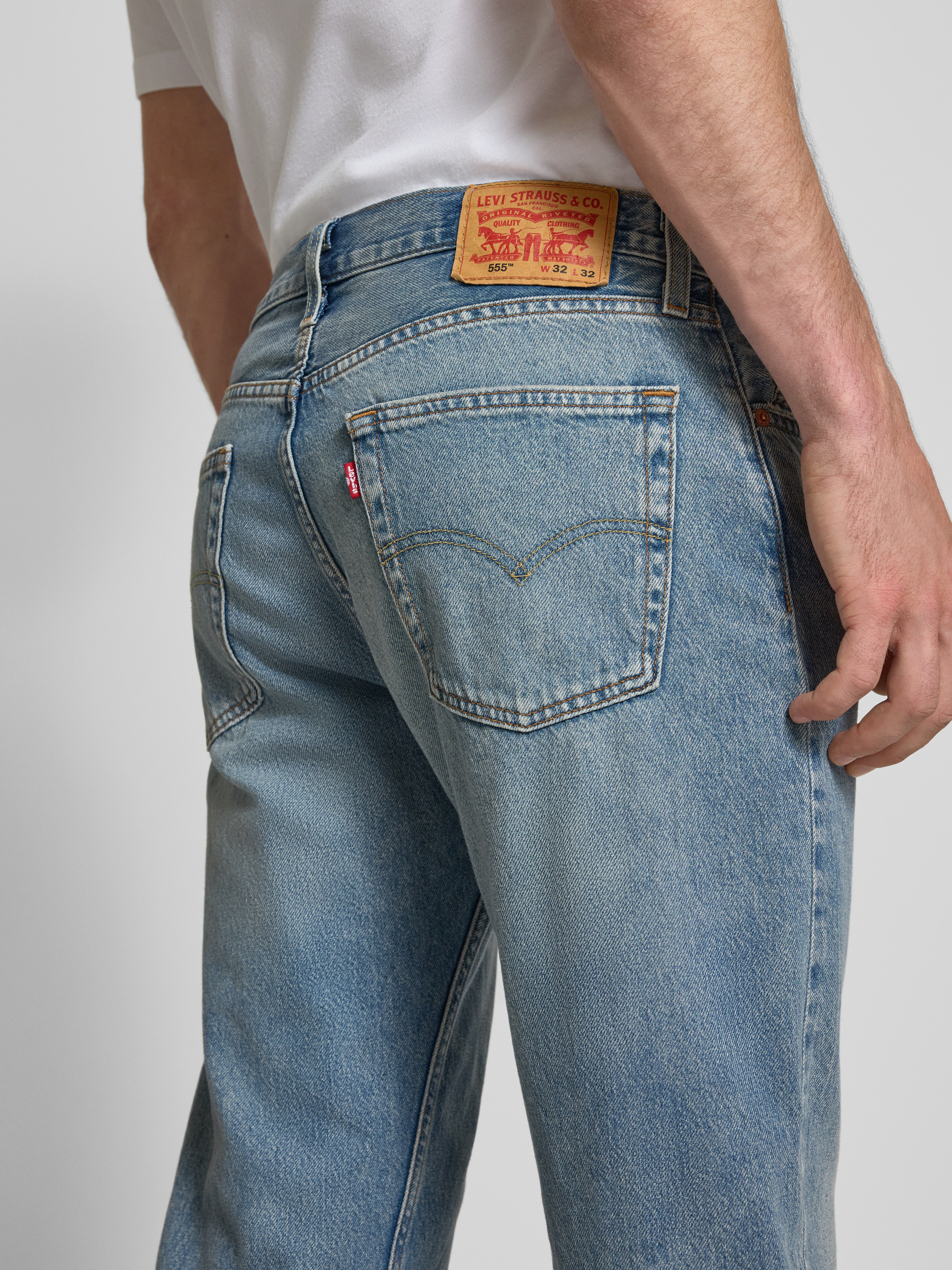 Relaxed straight fit jeans in used-look, model '555' in lichtblauw