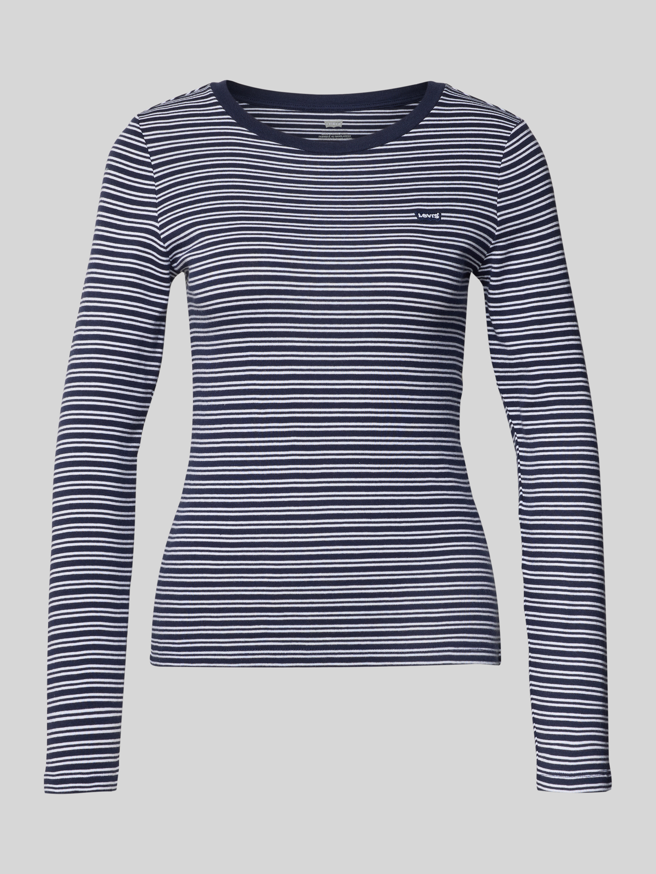 Slim fit shirt met lange mouwen en logostitching, model 'Essential' in marineblauw