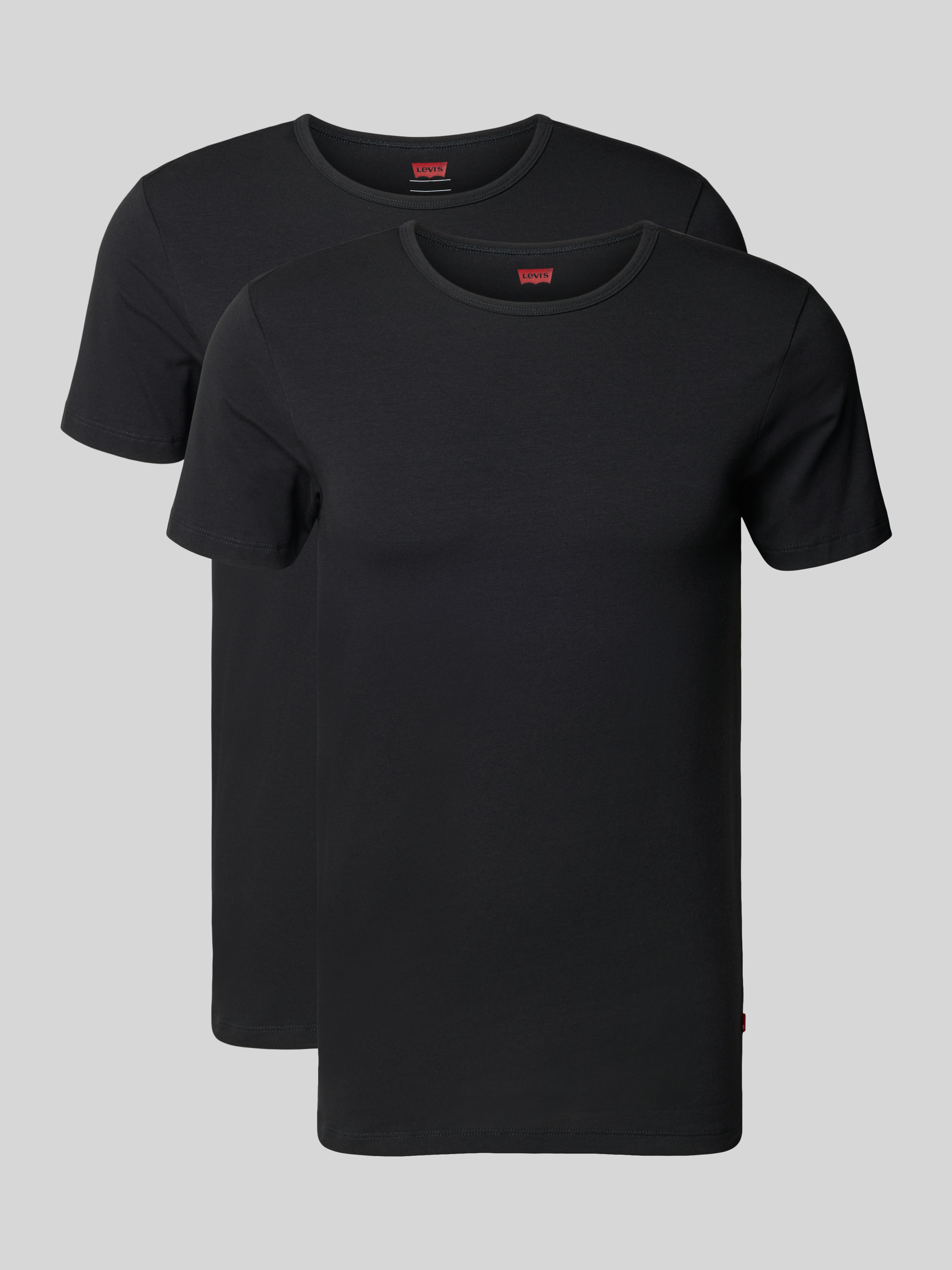 T-shirt met geribde ronde hals in een set van 2 stuks in zwart