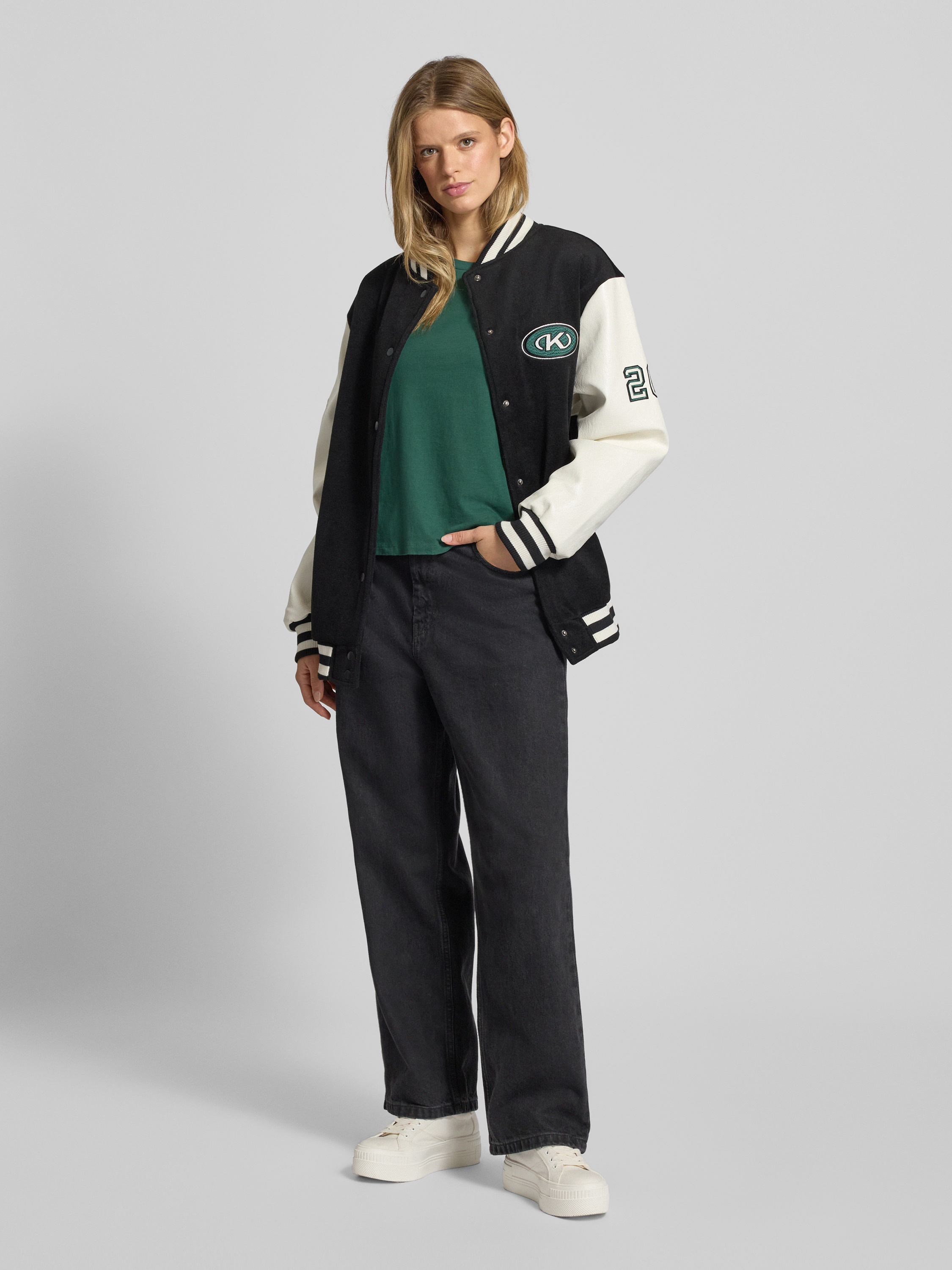 Collegejack met label- en motiefstitchings