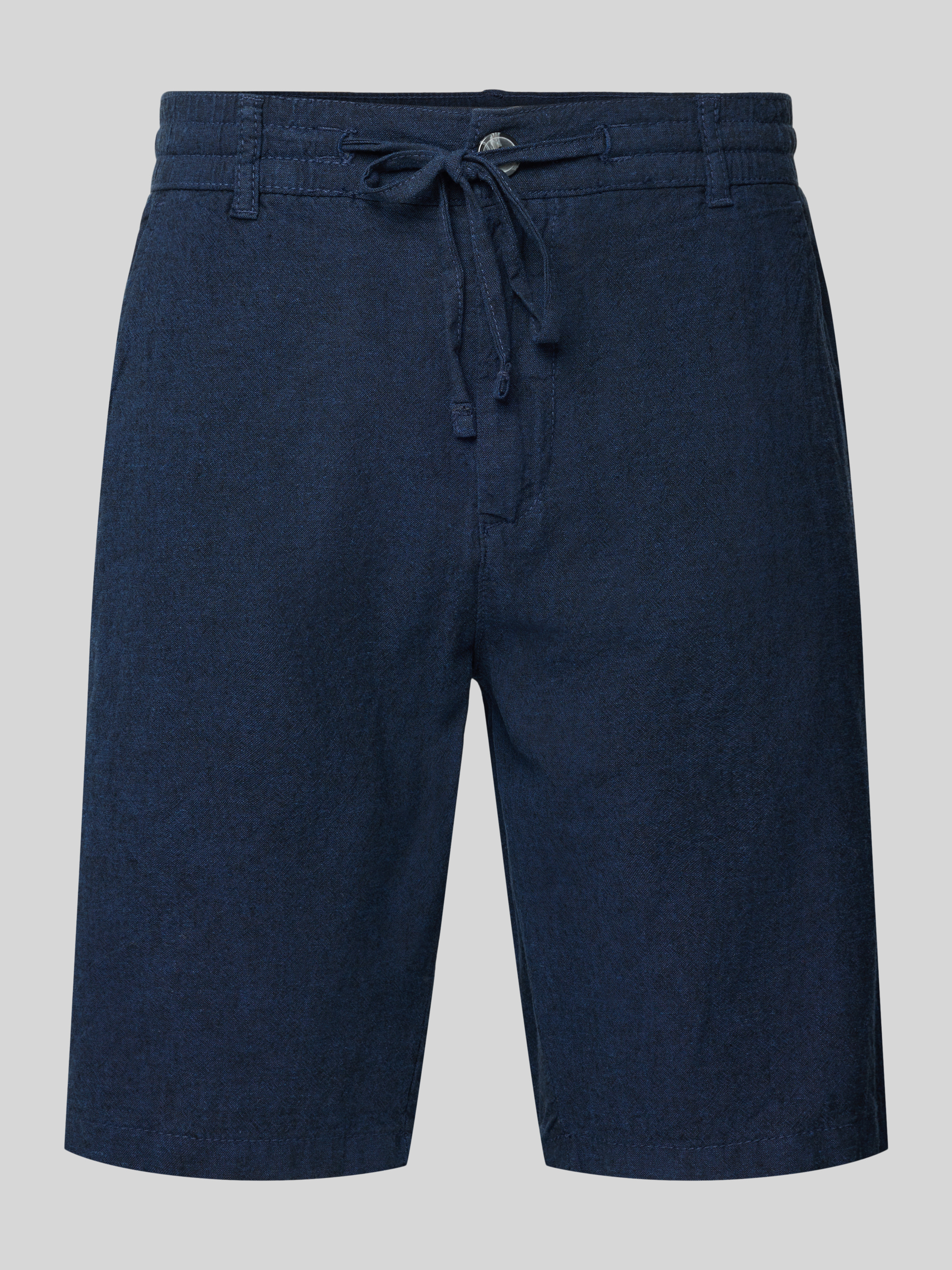 Bermuda met steekzakken opzij en strikceintuur in donkerblauw