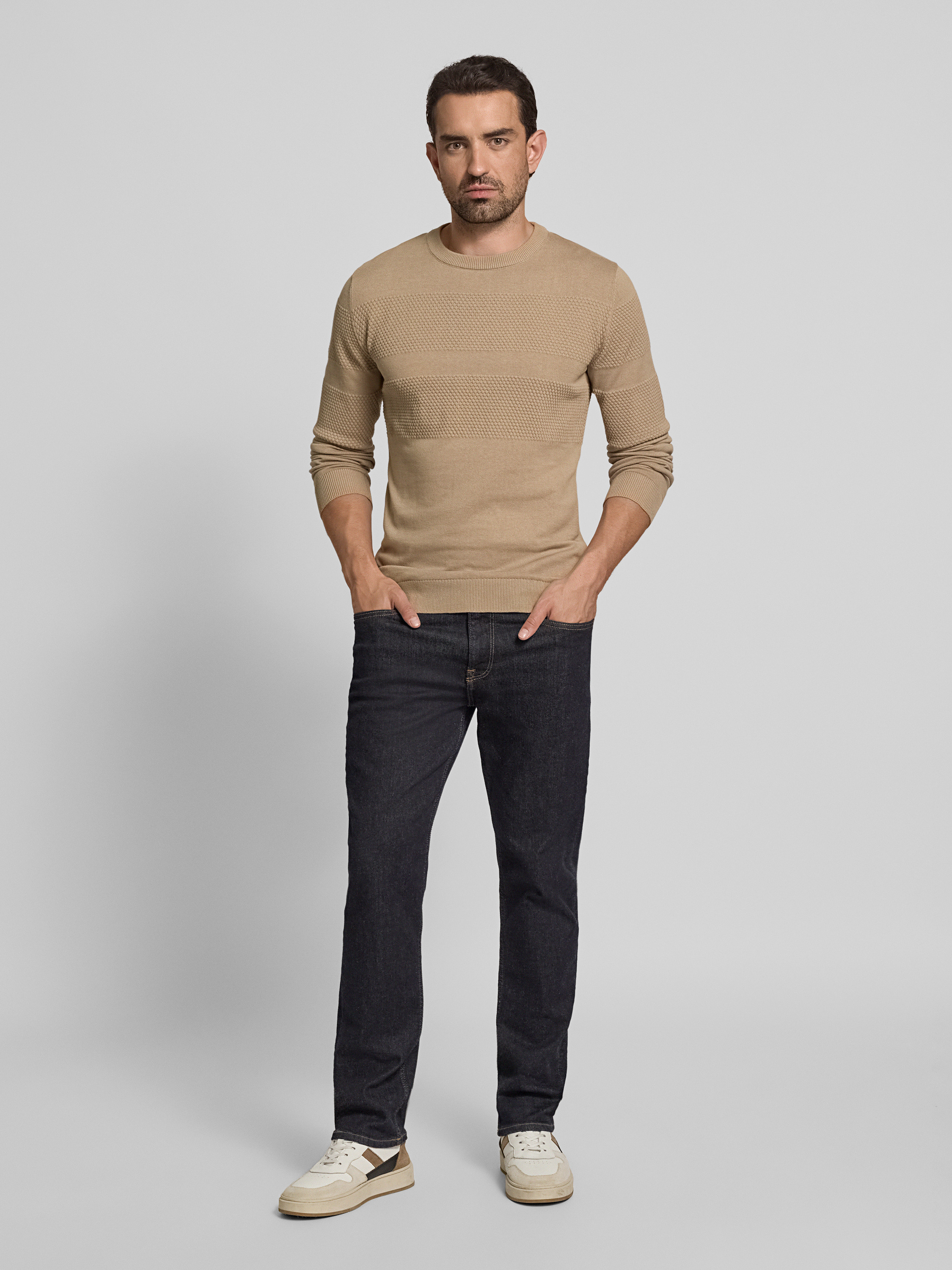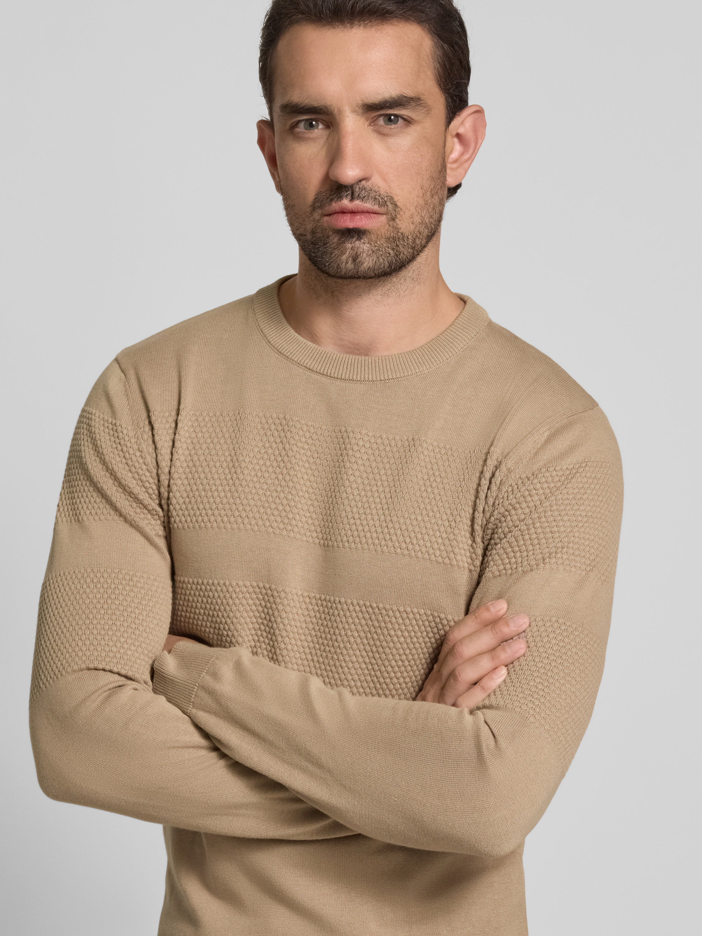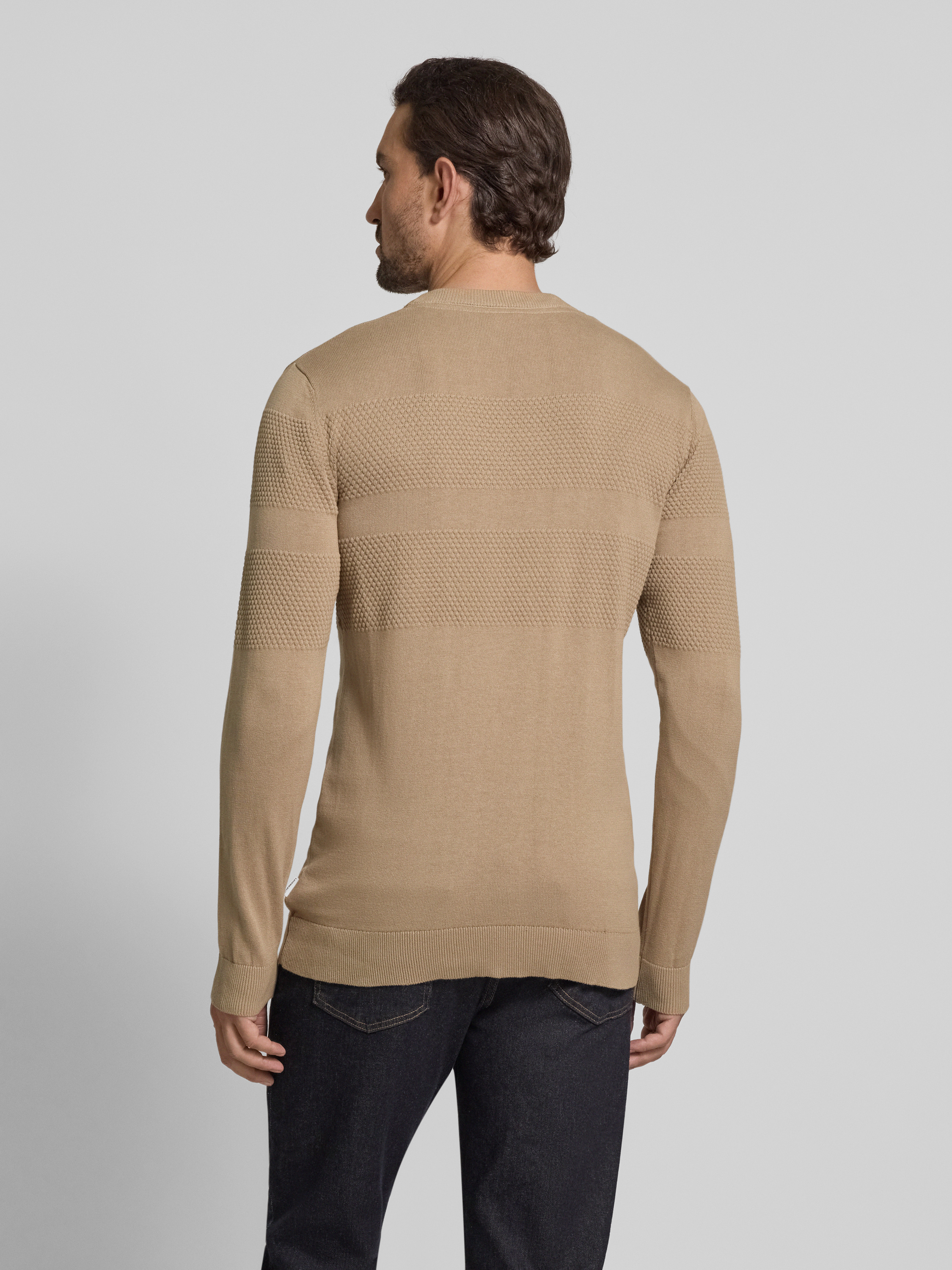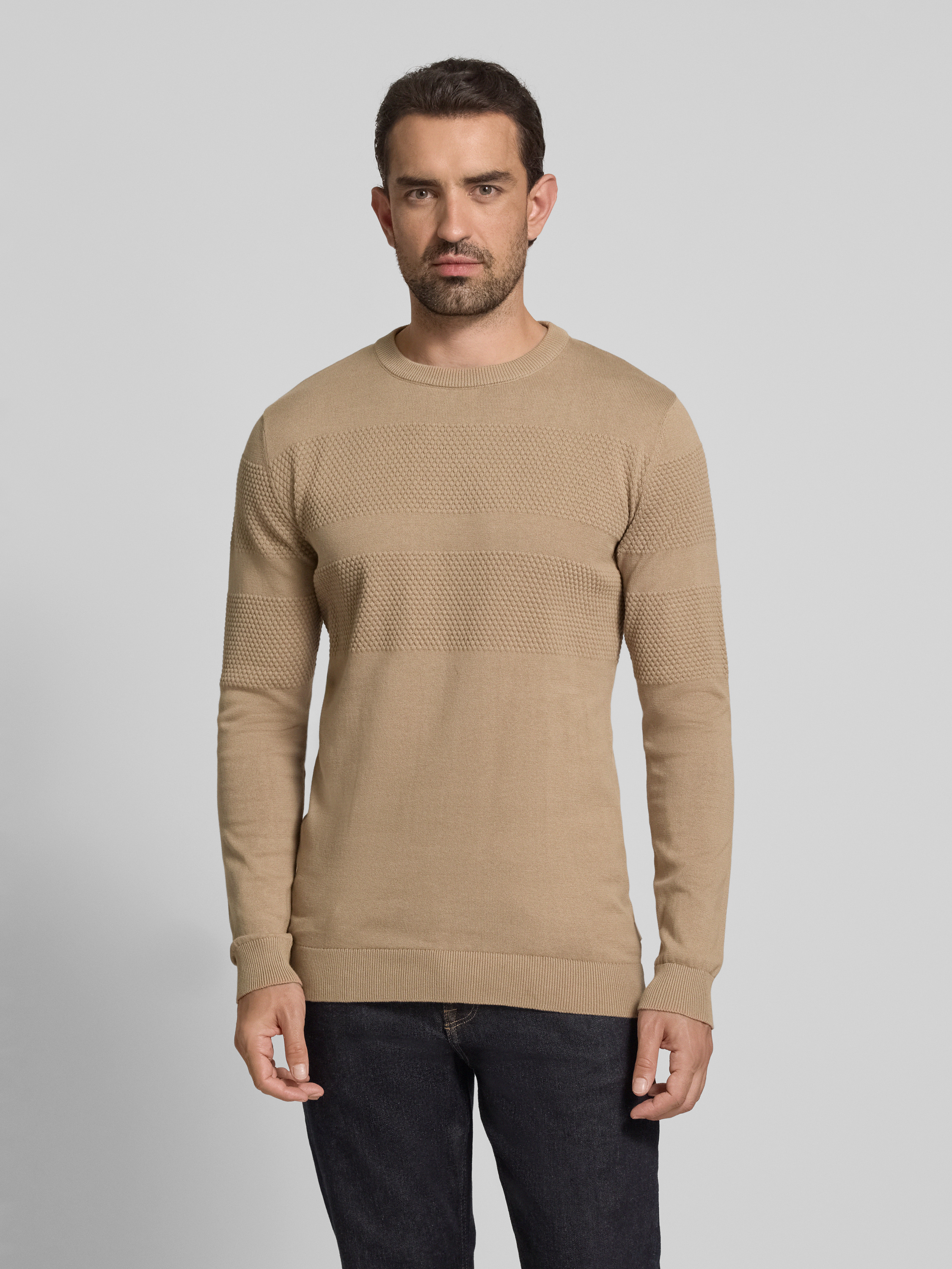 Gebreide pullover met ribboorden in zand