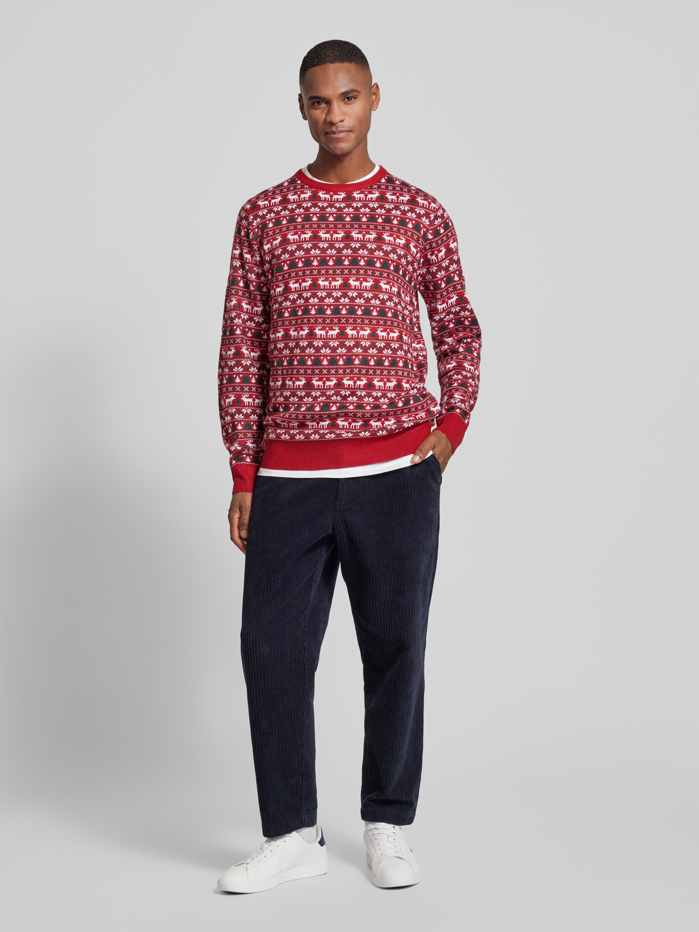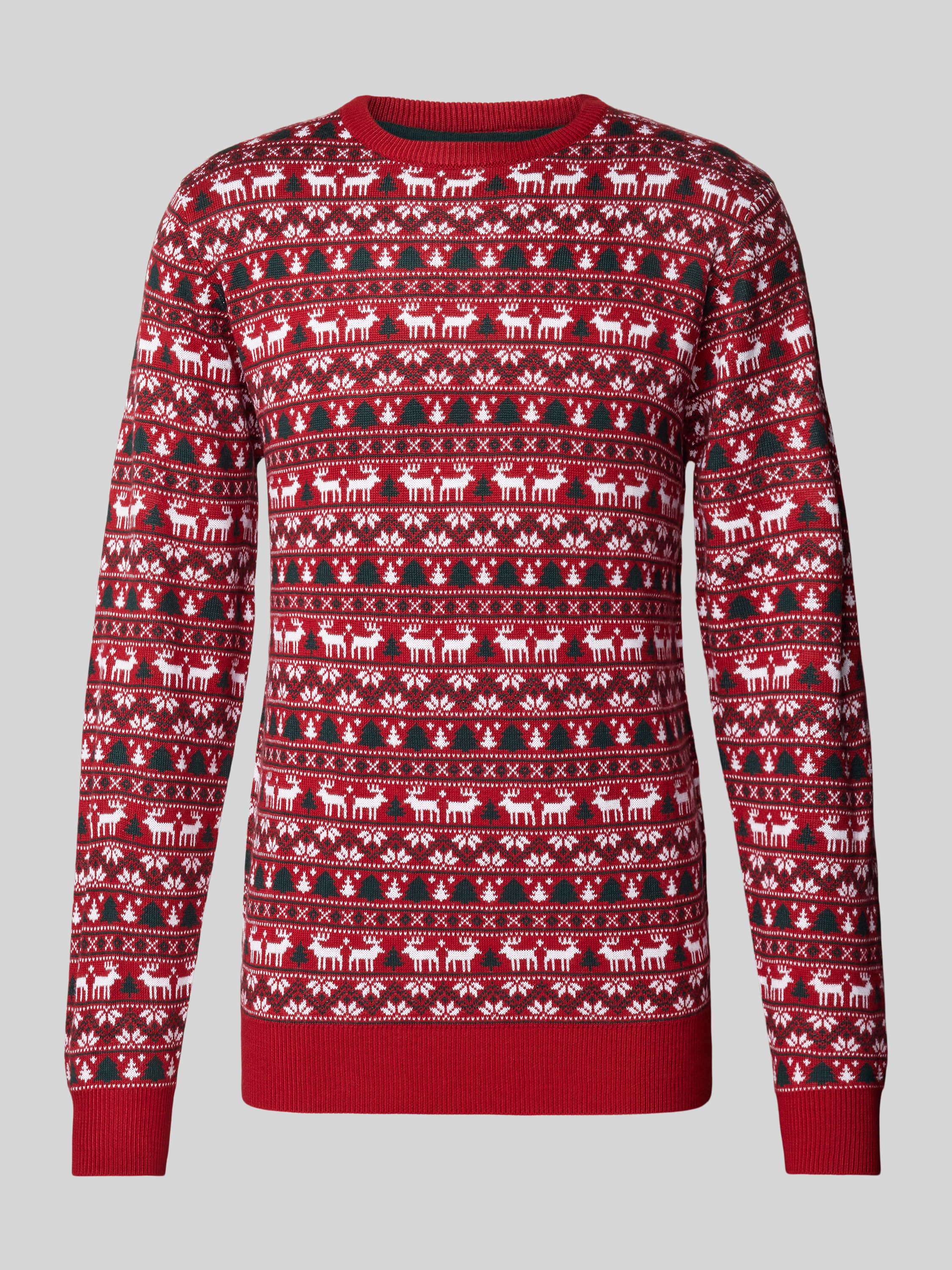 Kersttrui met ribboorden in rood